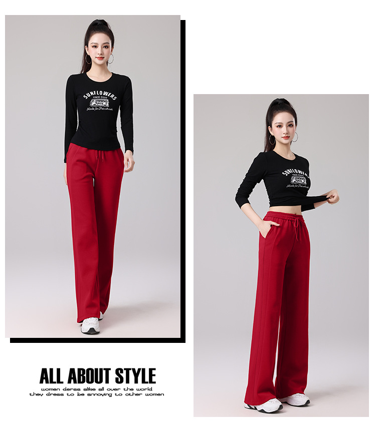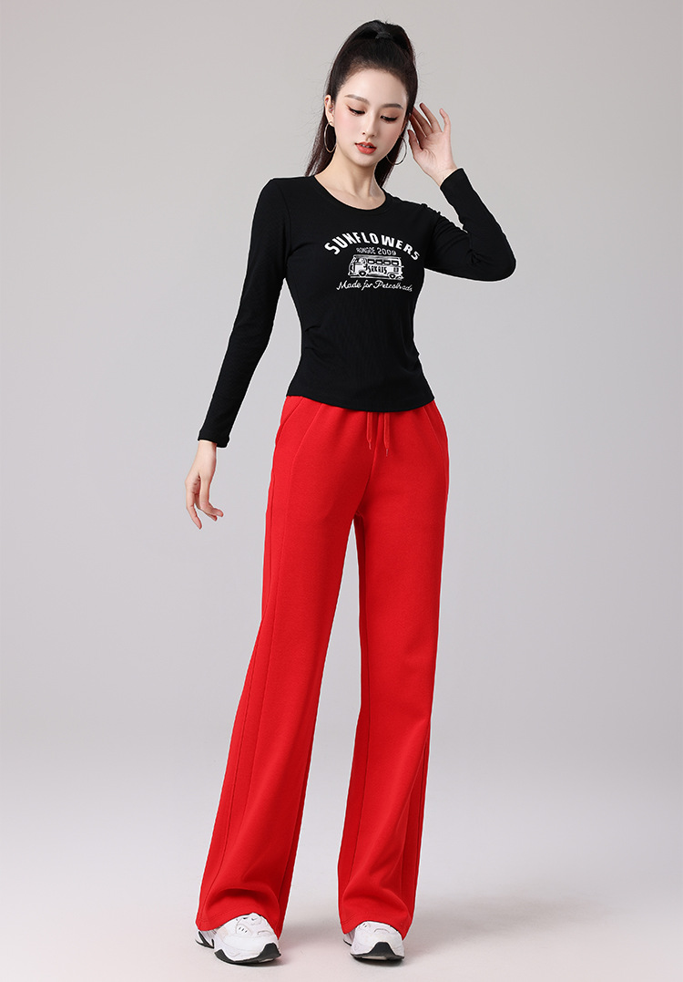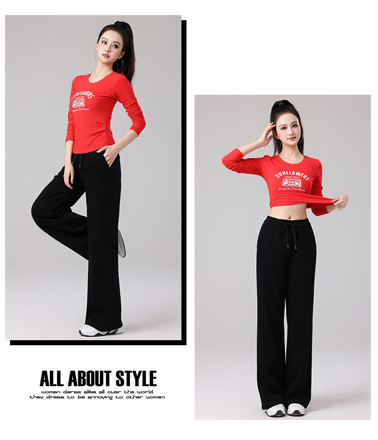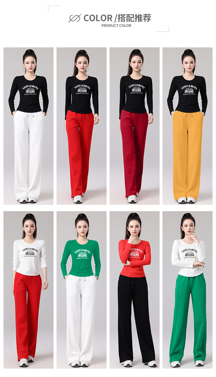 2025春夏广场舞服运动休闲健身跳操跑步服显瘦长袖窄版直筒裤套装