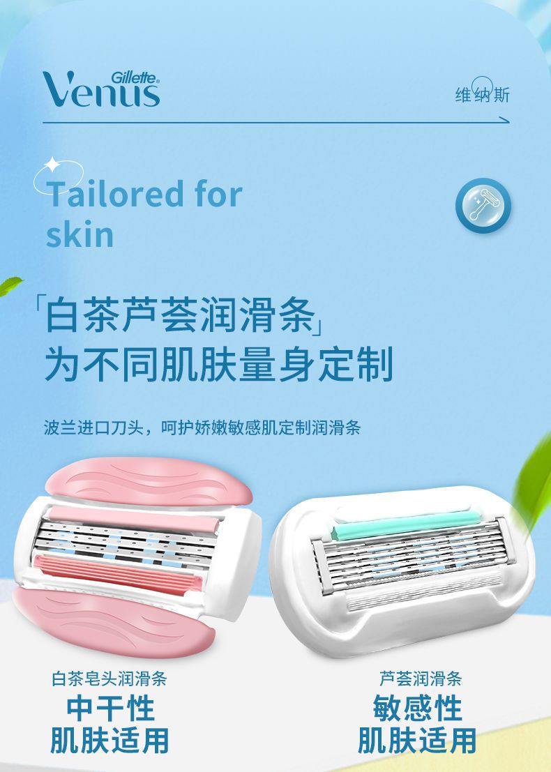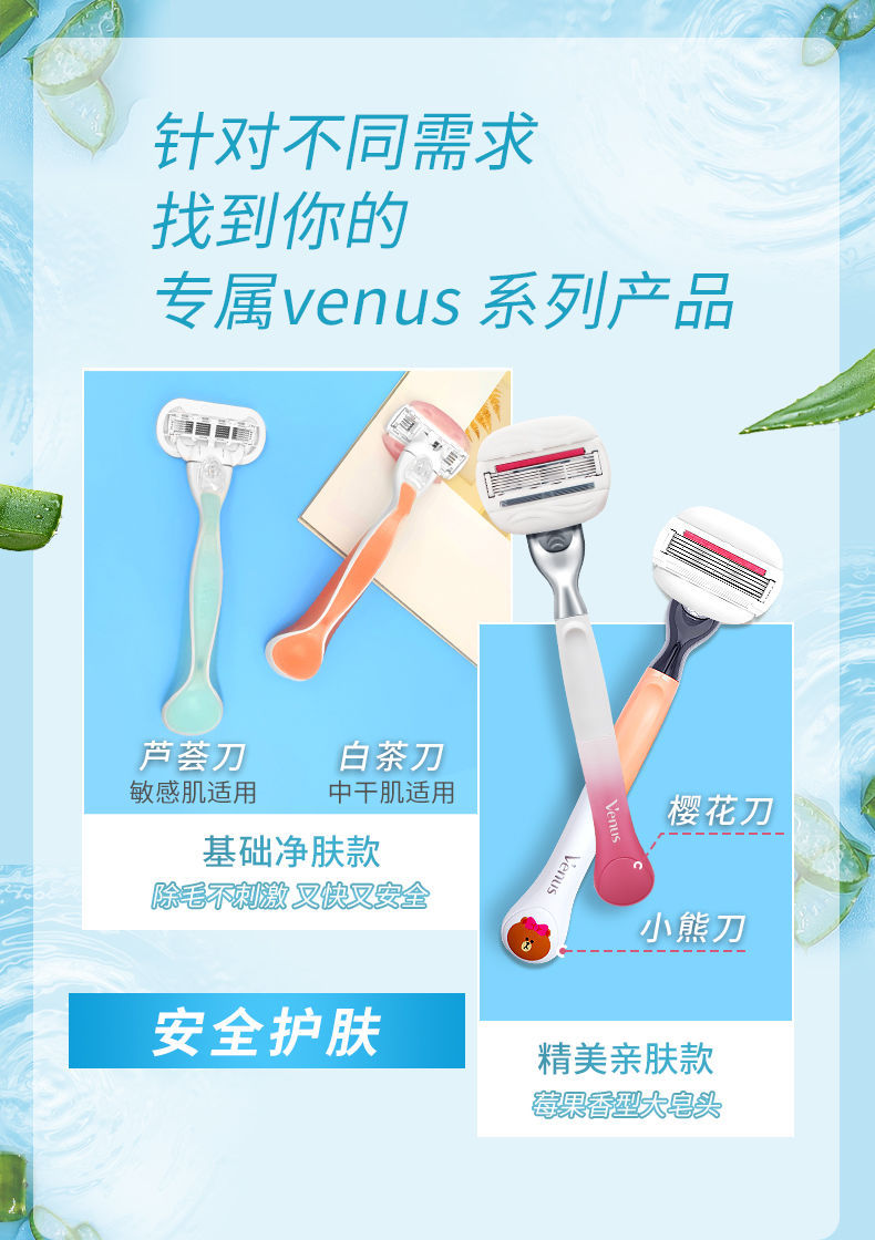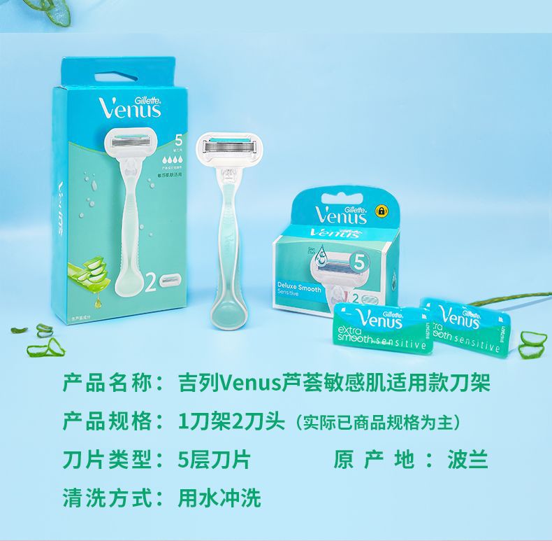 吉列维纳斯白茶刮毛刀女士手动芦荟脱毛神器敏感肌腋下私处剃毛刀