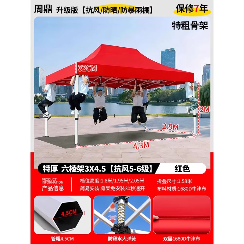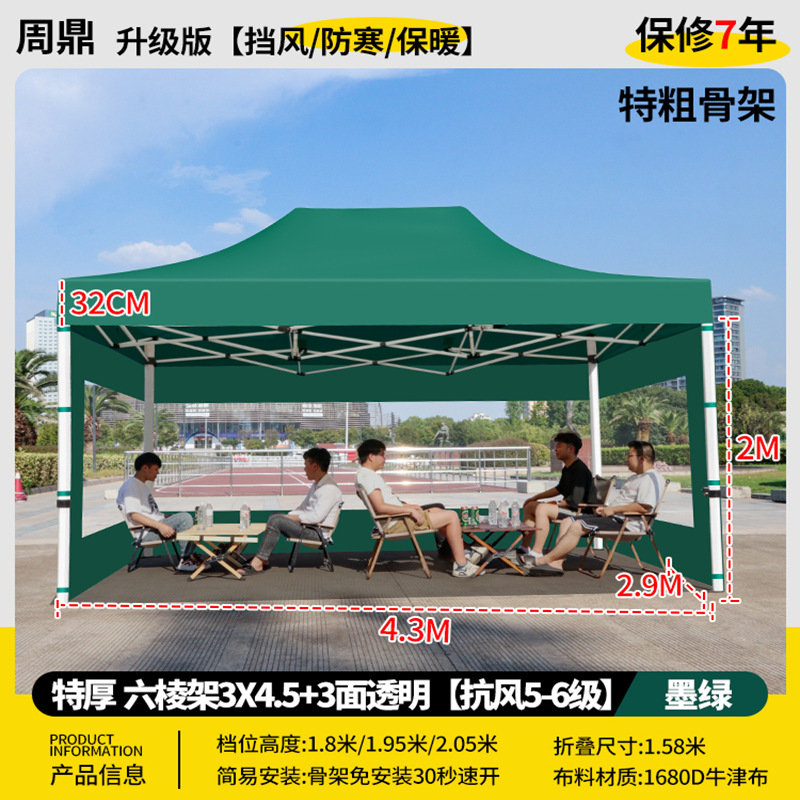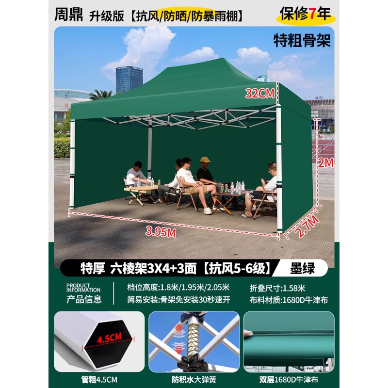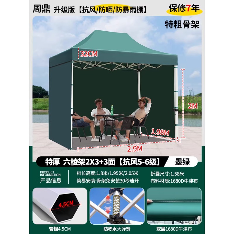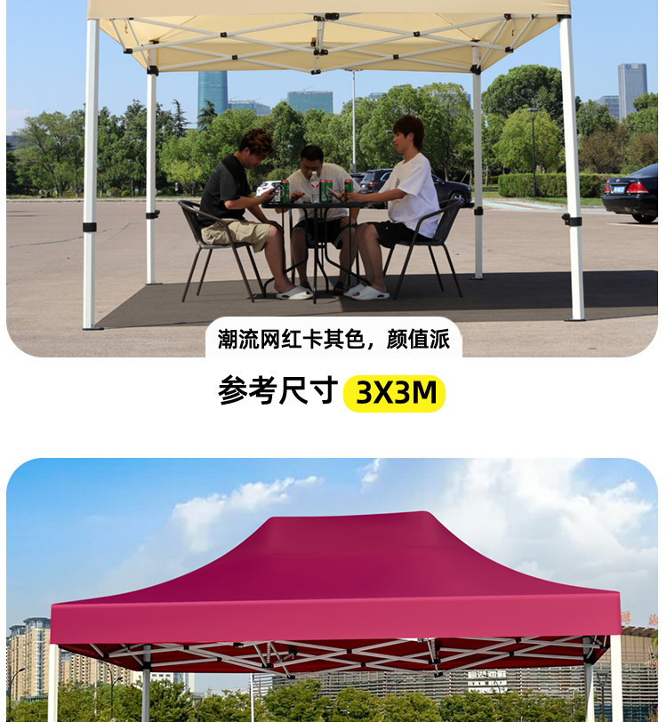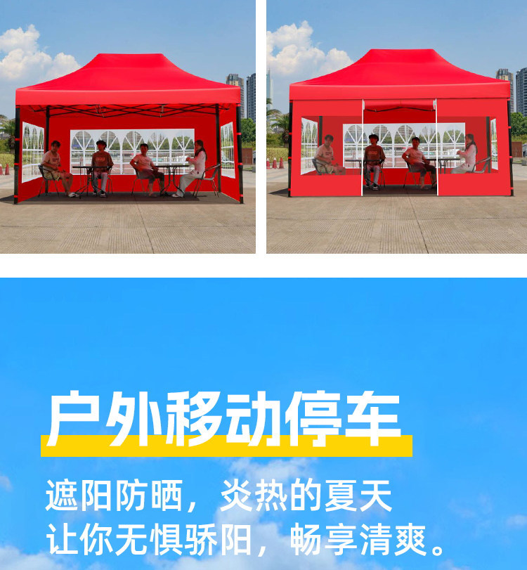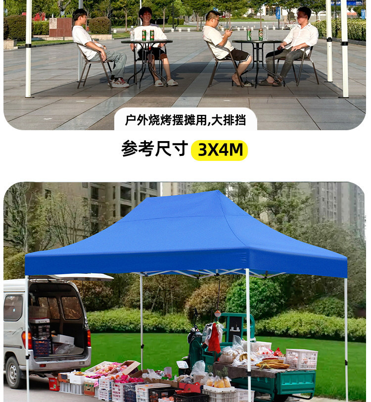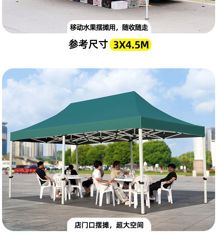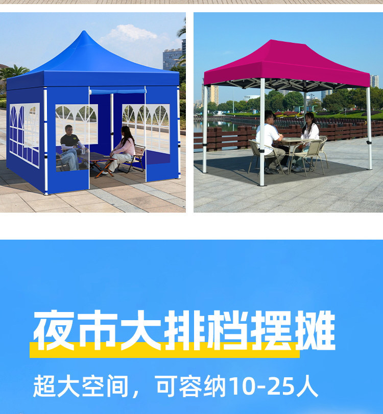 源头工厂3x3米四脚夜市摆摊专用遮阳棚便携式大空间雨棚防雨折叠商用帐篷支持定制批发