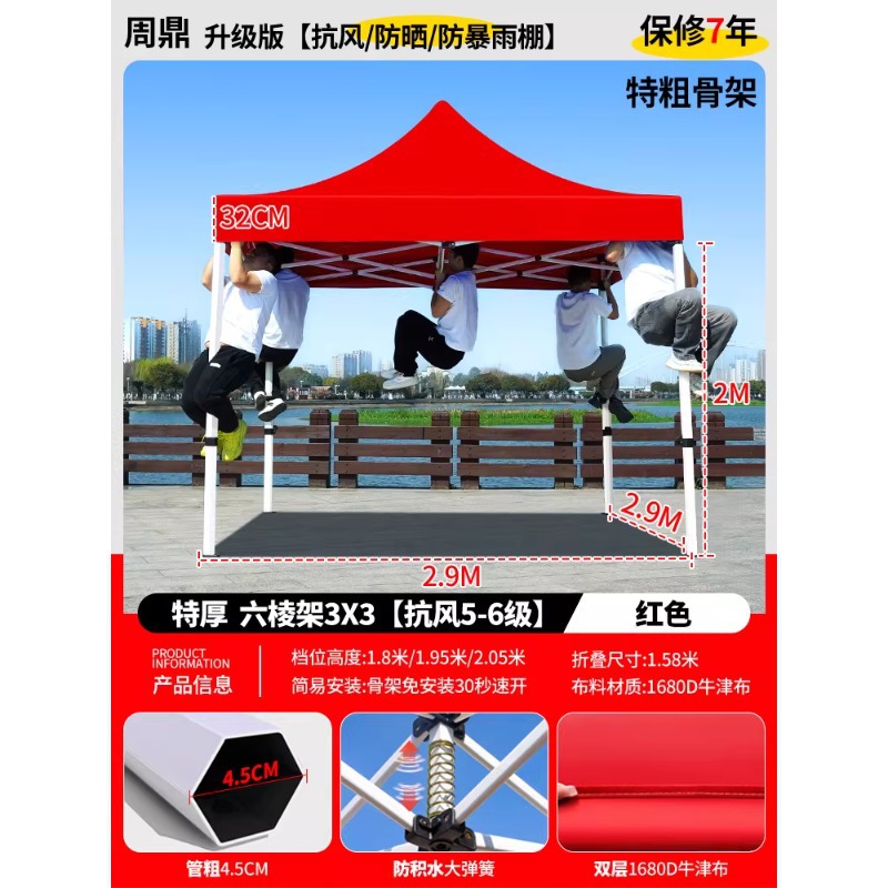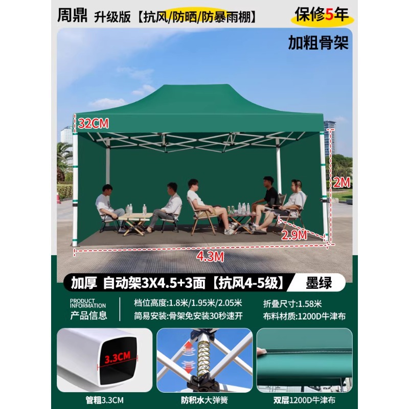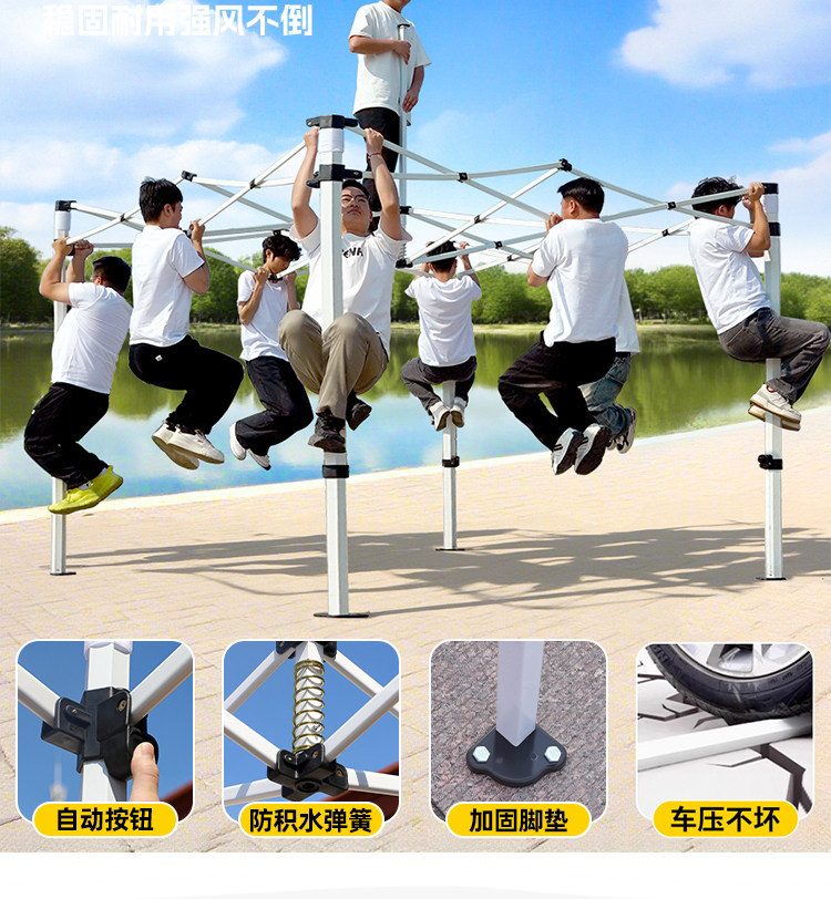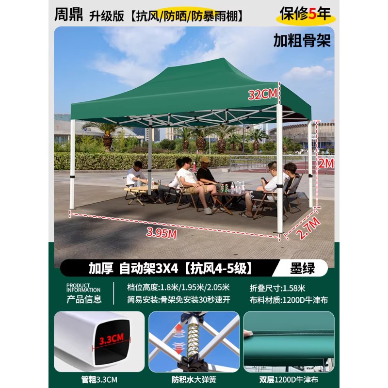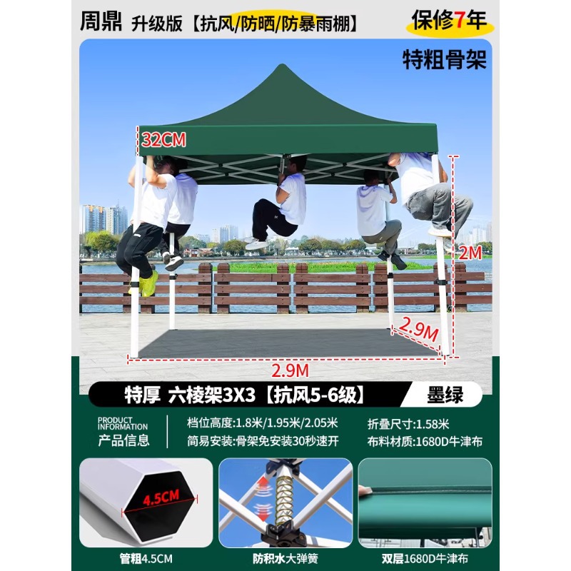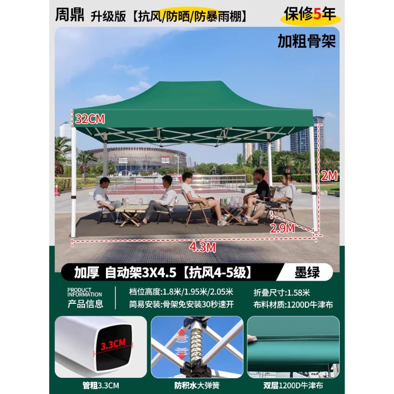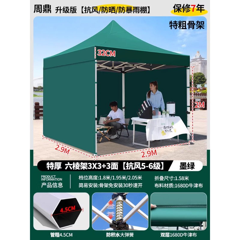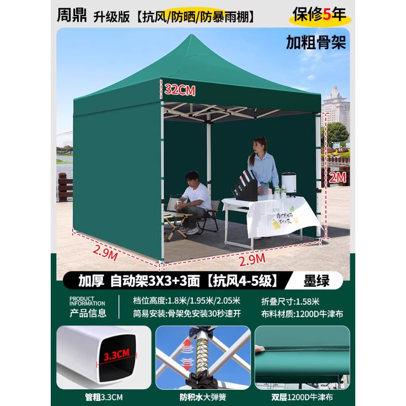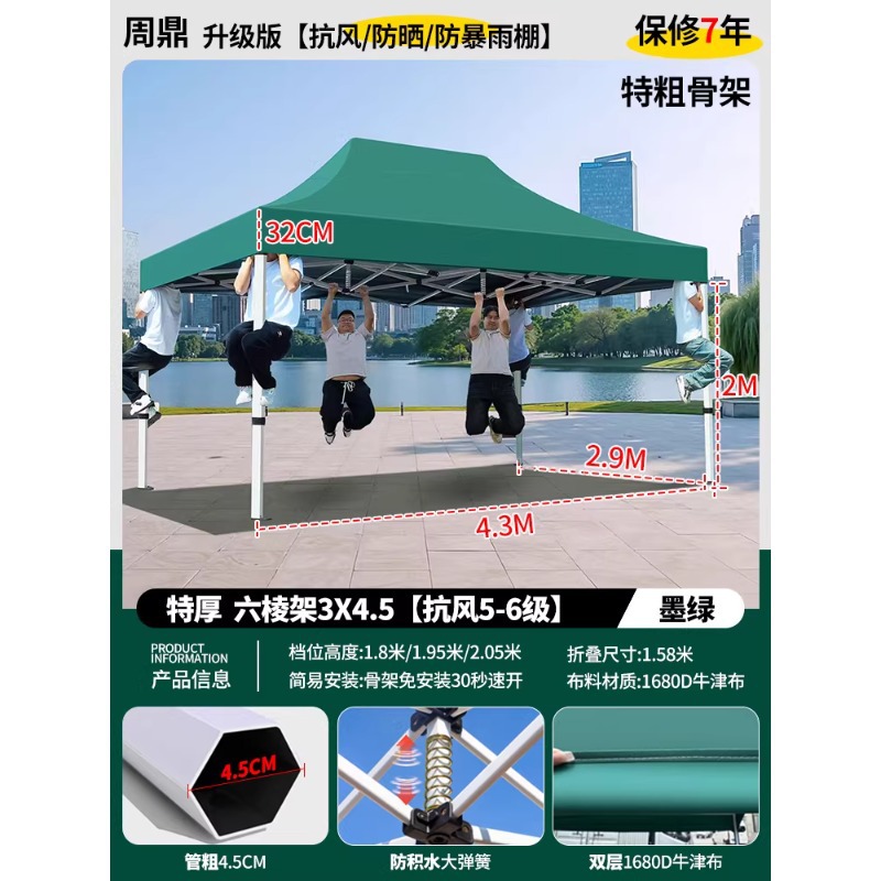 源头工厂3x3米四脚夜市摆摊专用遮阳棚便携式大空间雨棚防雨折叠商用帐篷支持定制批发