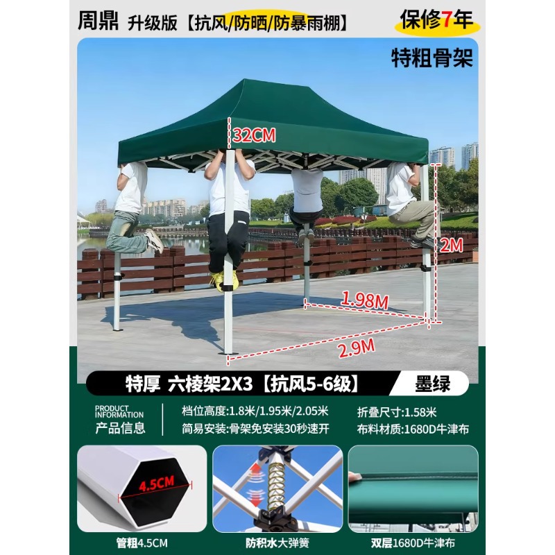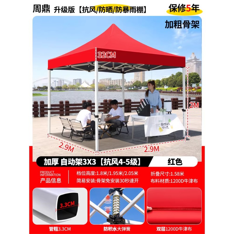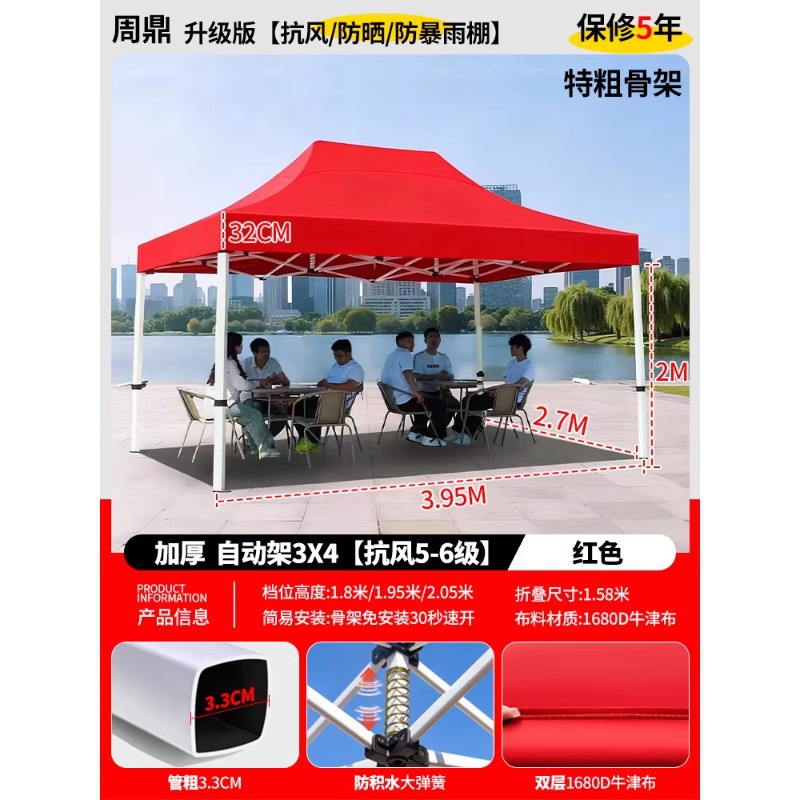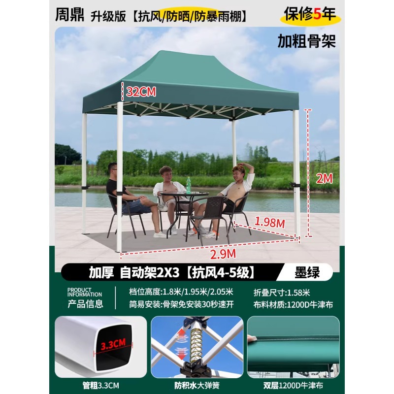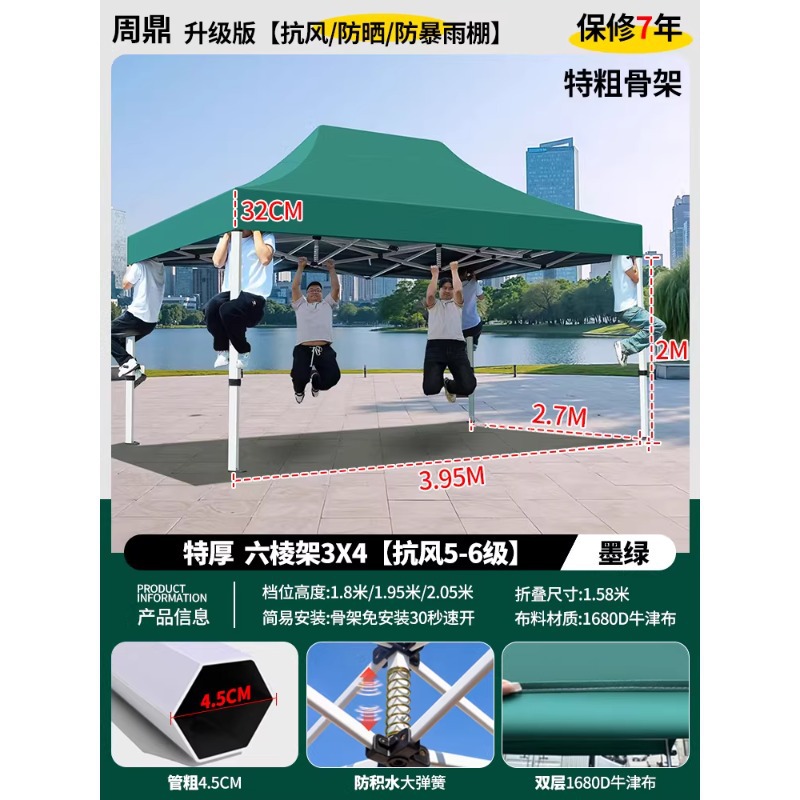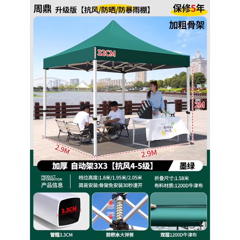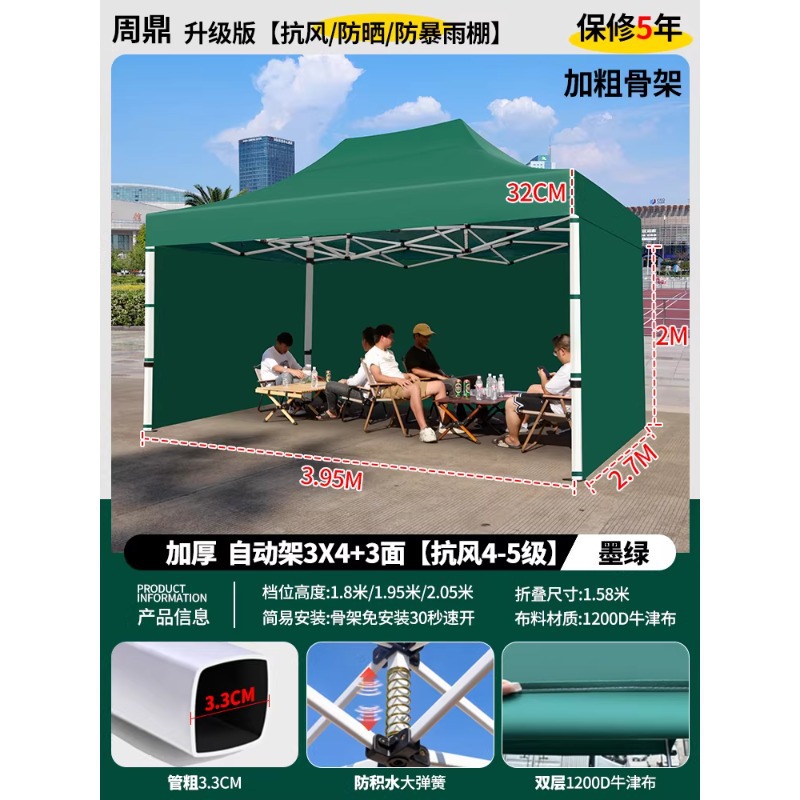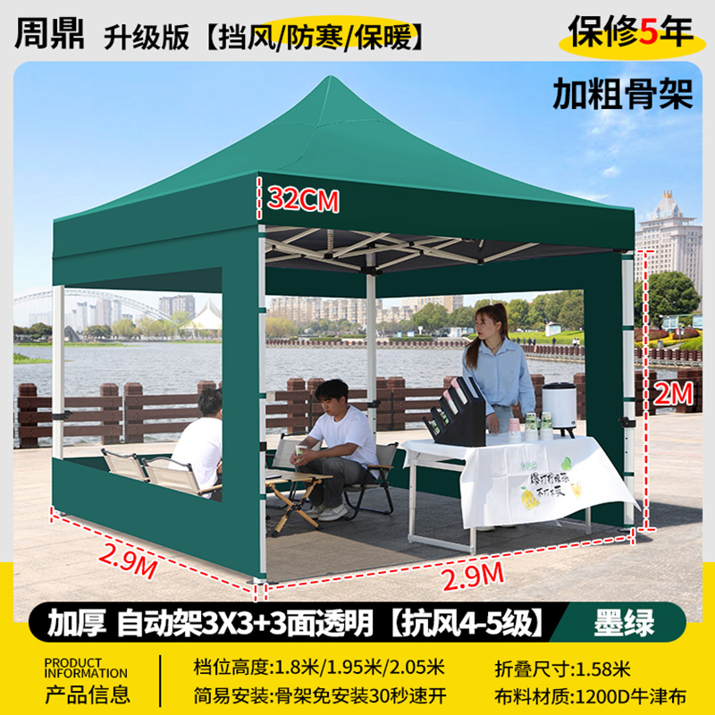 源头工厂3x3米四脚夜市摆摊专用遮阳棚便携式大空间雨棚防雨折叠商用帐篷支持定制批发