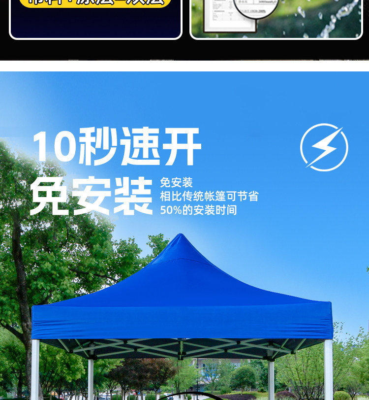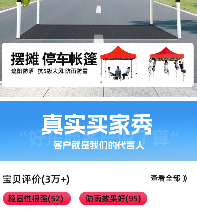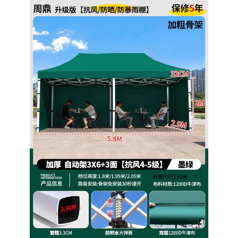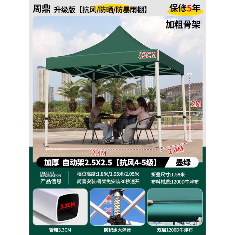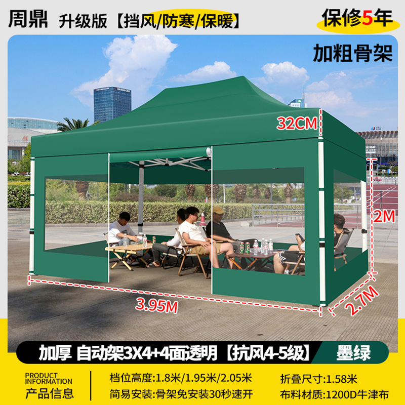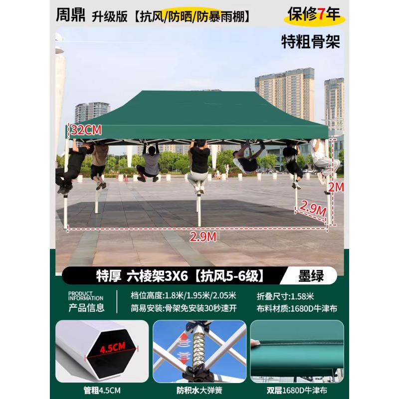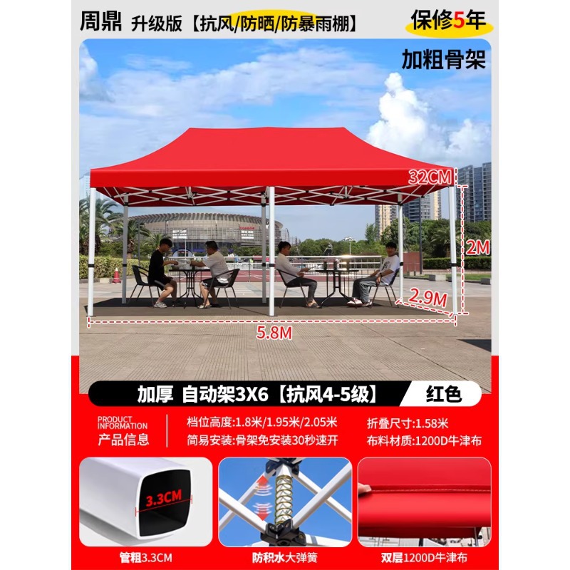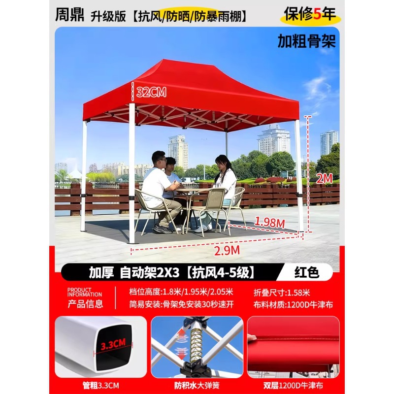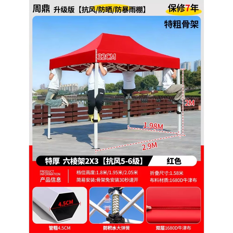 源头工厂3x3米四脚夜市摆摊专用遮阳棚便携式大空间雨棚防雨折叠商用帐篷支持定制批发