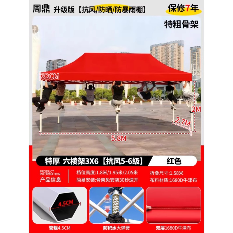 四脚夜市摆摊专用尖顶遮阳棚便携式大空间雨棚防雨可折叠商用帐篷