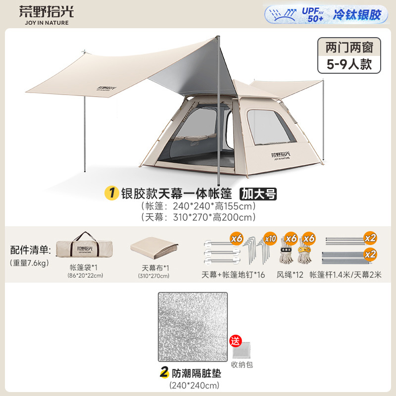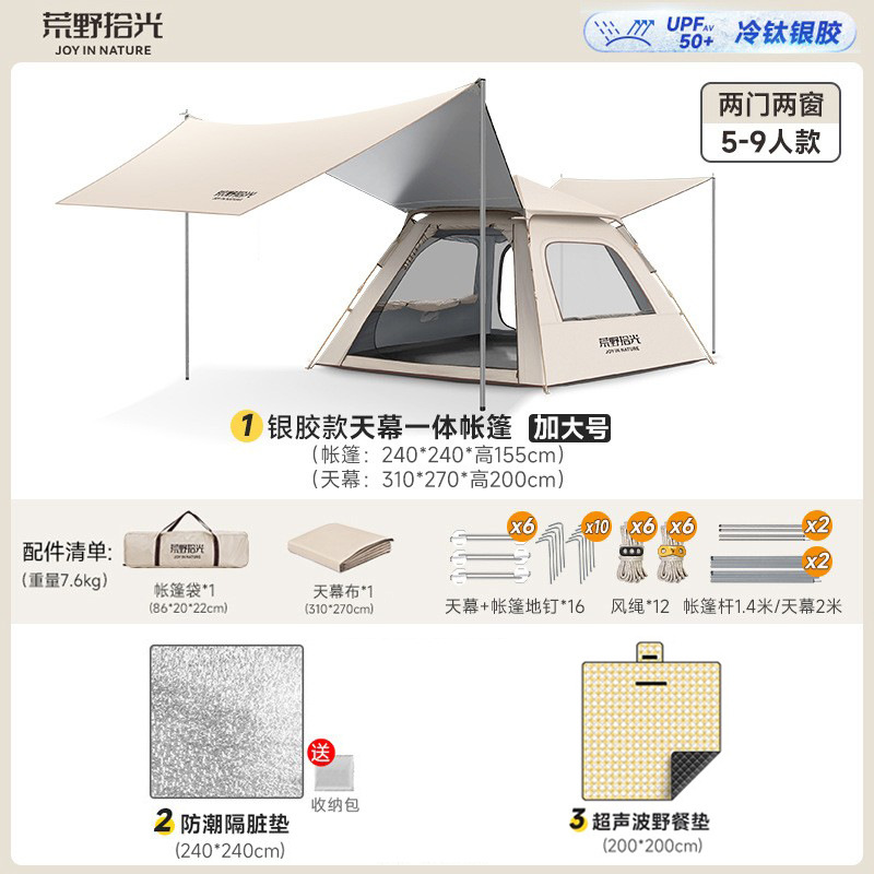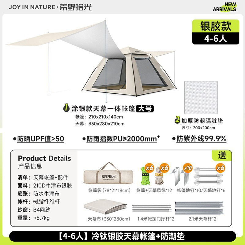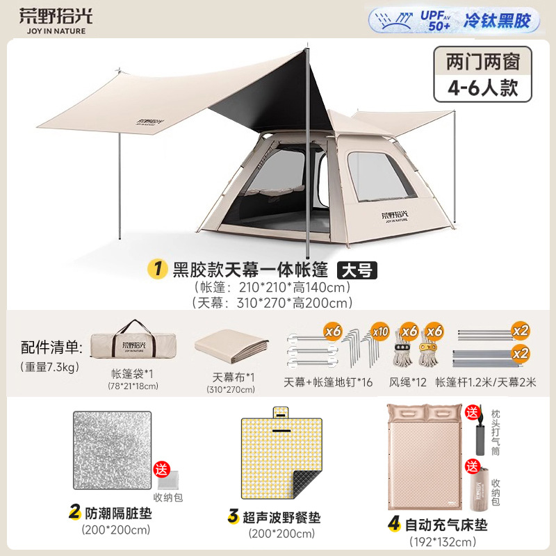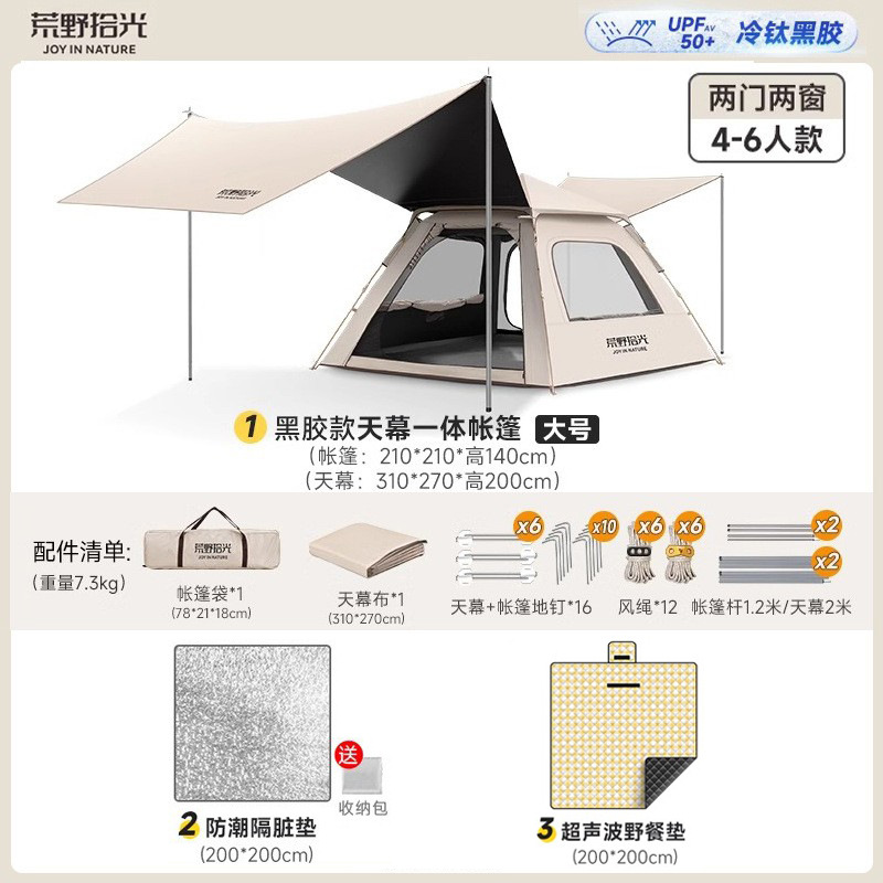 露营帐篷户外全套装备帐篷全自动野营帐篷天幕二合一野营过夜装备