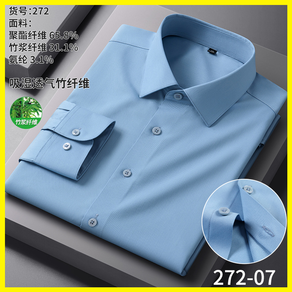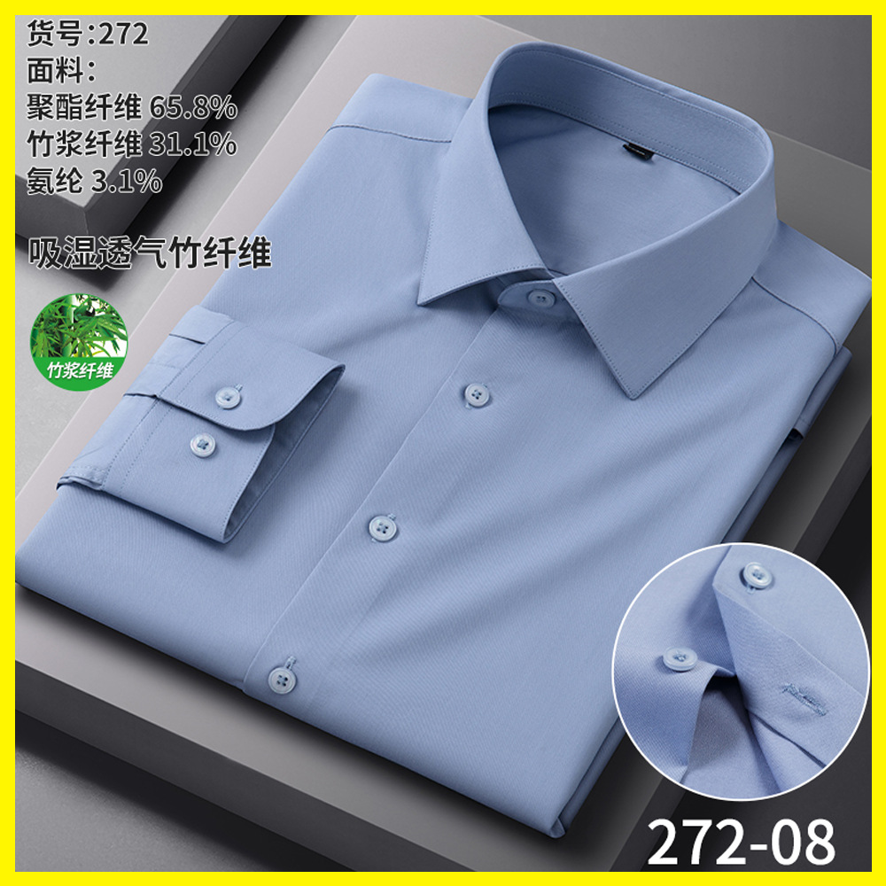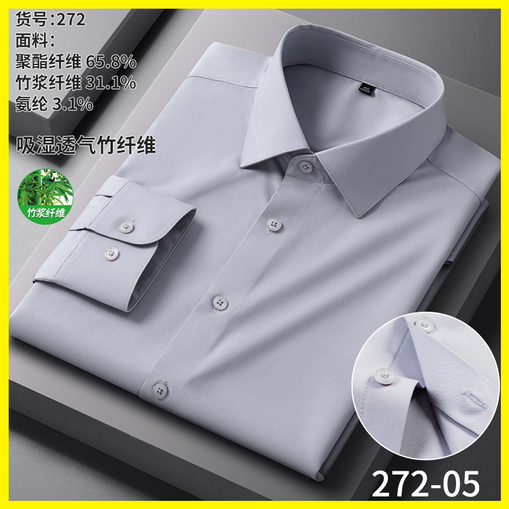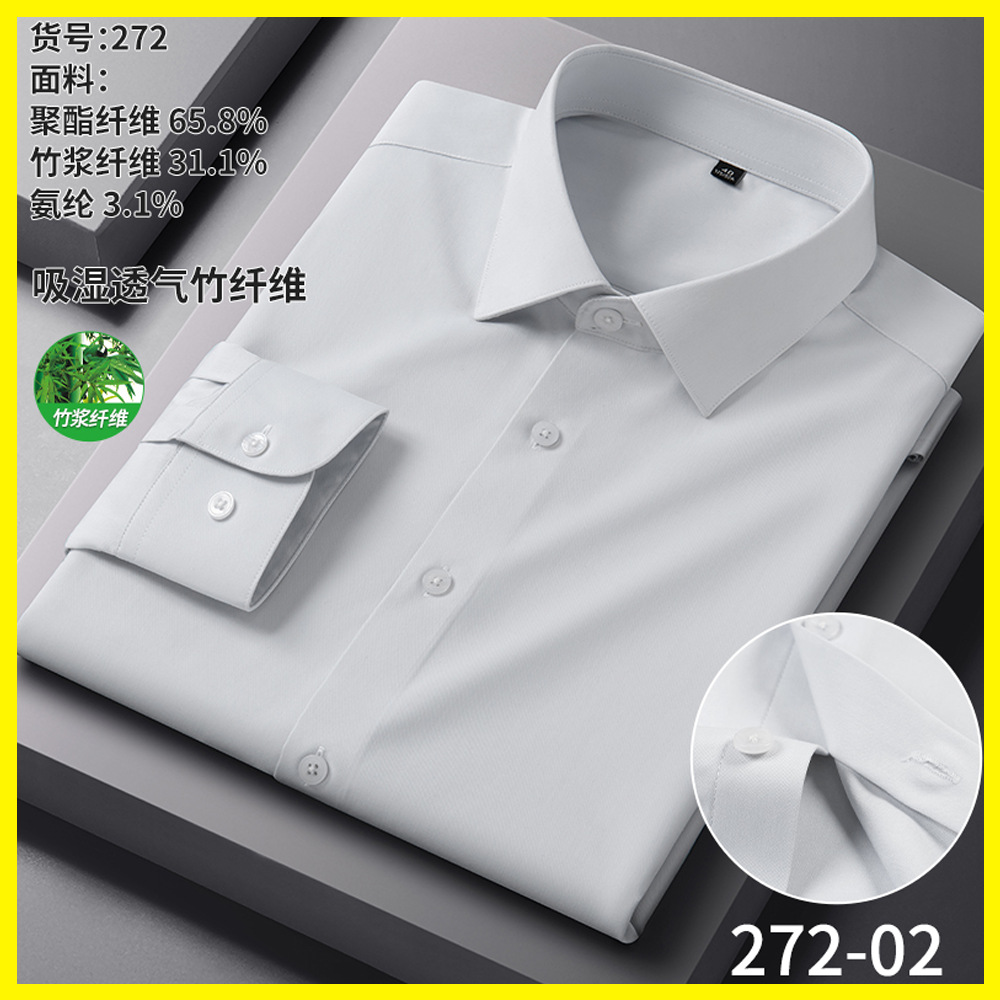 男士衬衫竹纤维抗皱职业正装商务衬衫男长袖弹力工作衬衣男装批发
