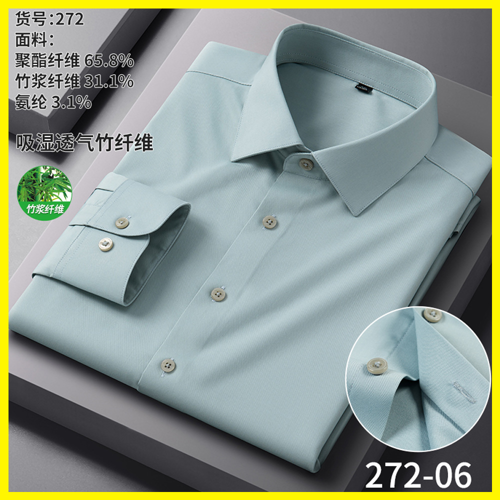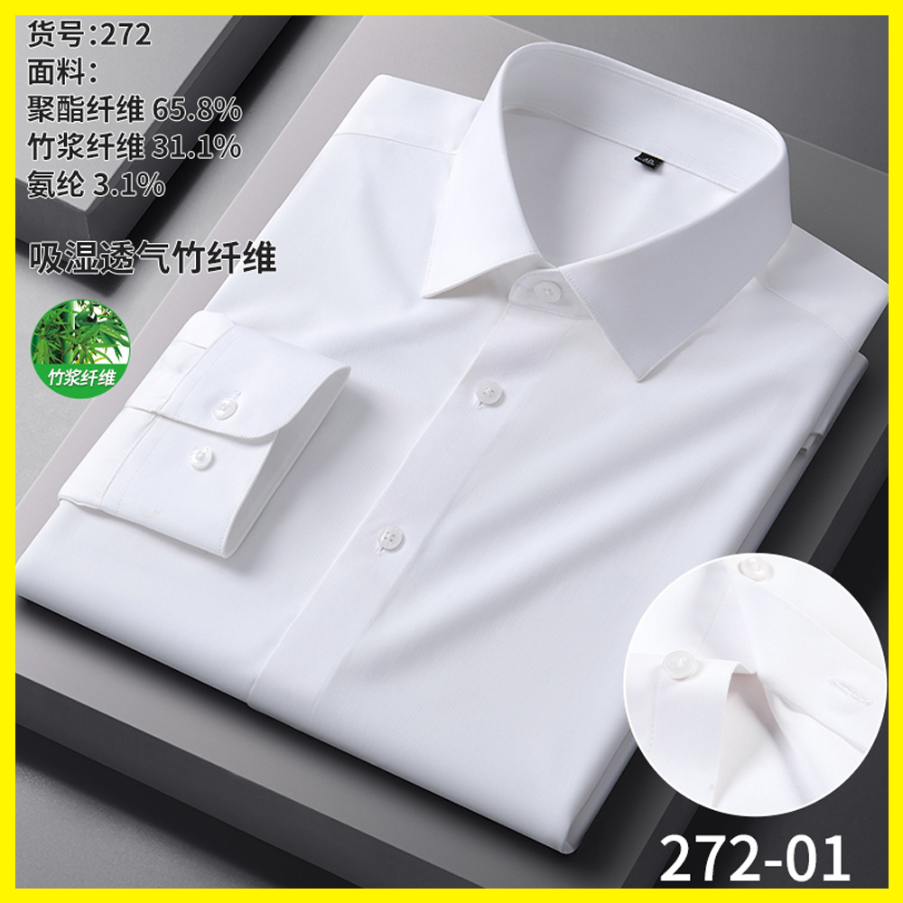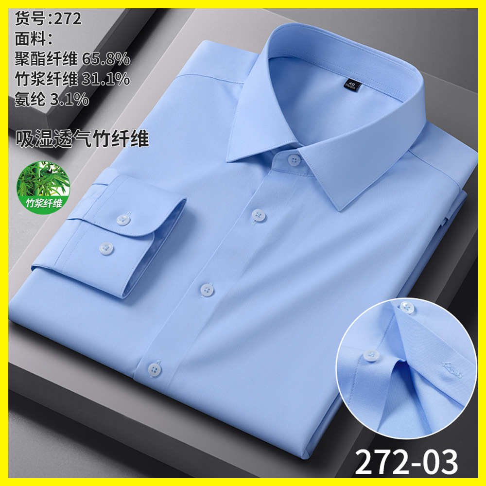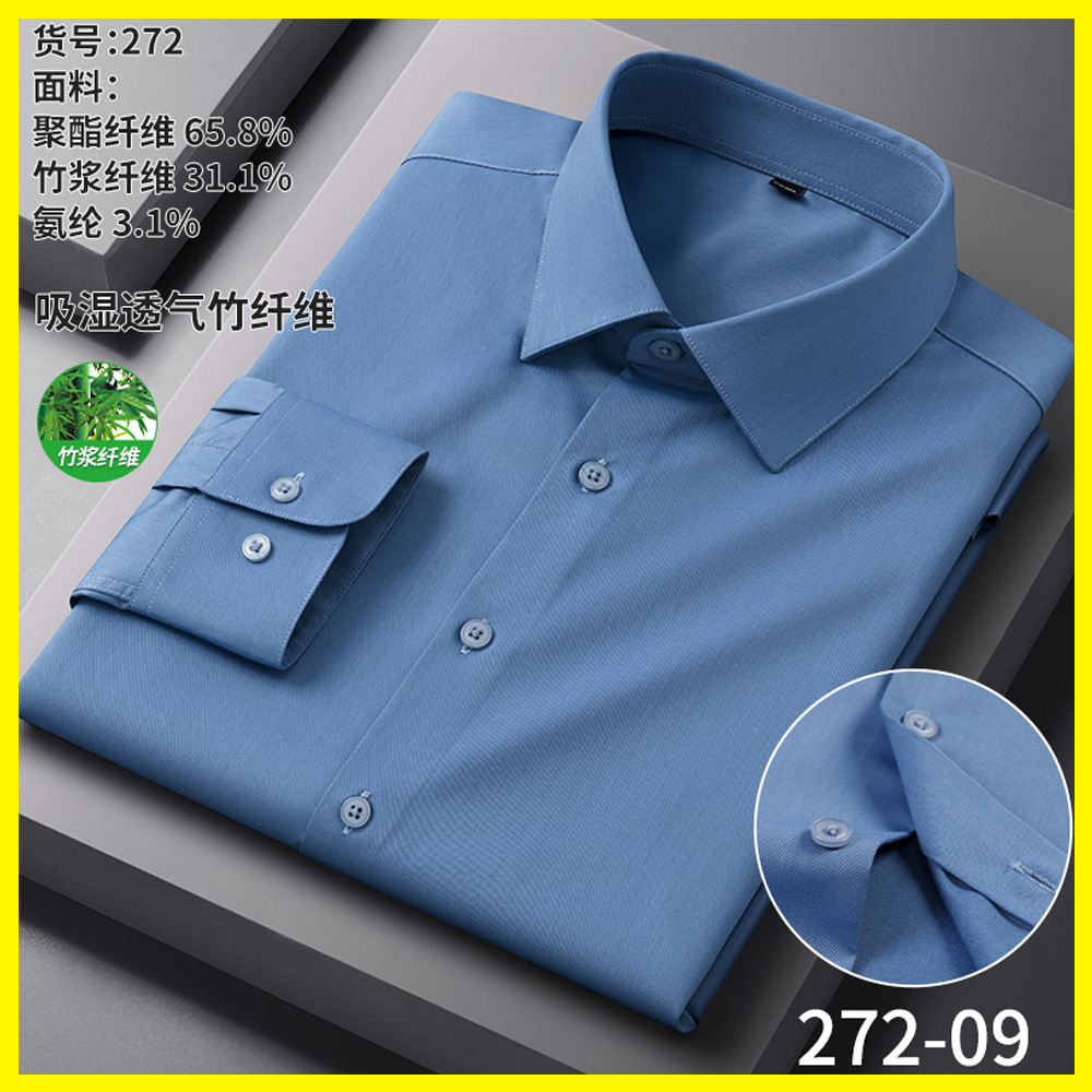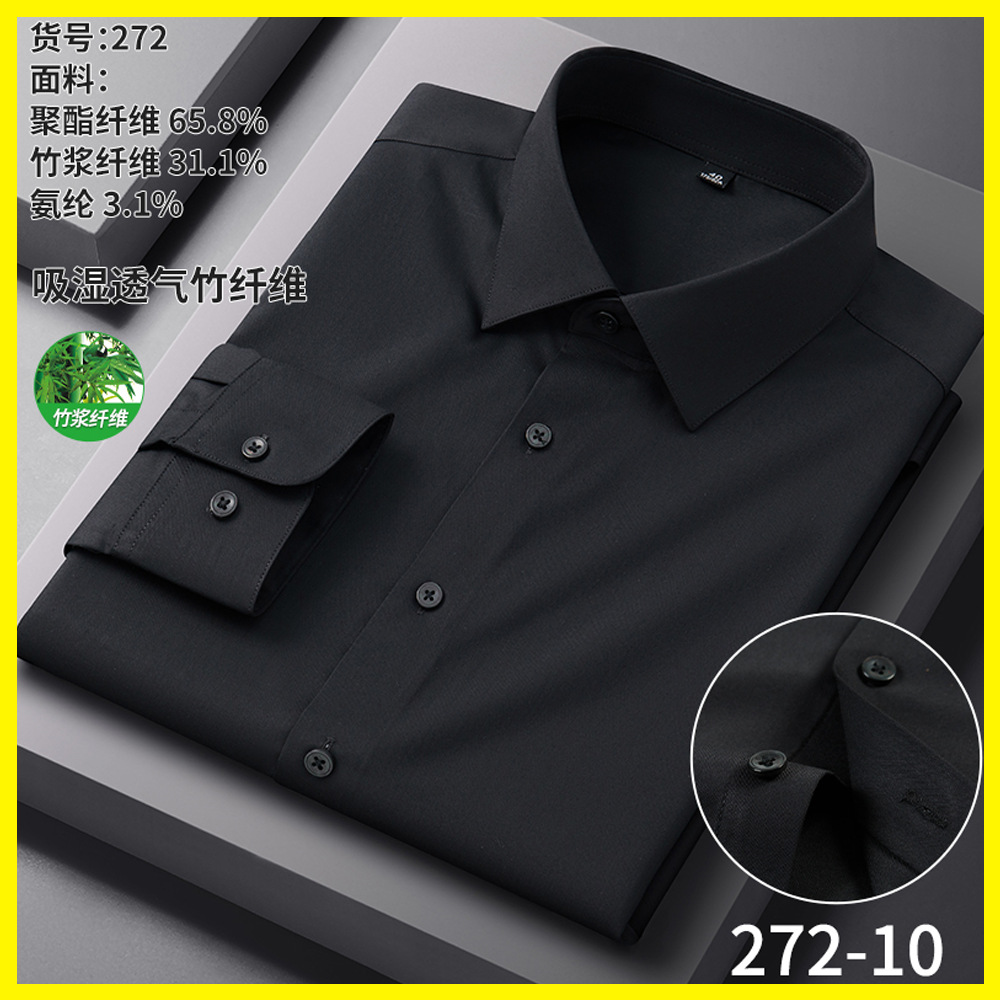 男士衬衫竹纤维抗皱职业正装商务衬衫男长袖弹力工作衬衣男装批发
