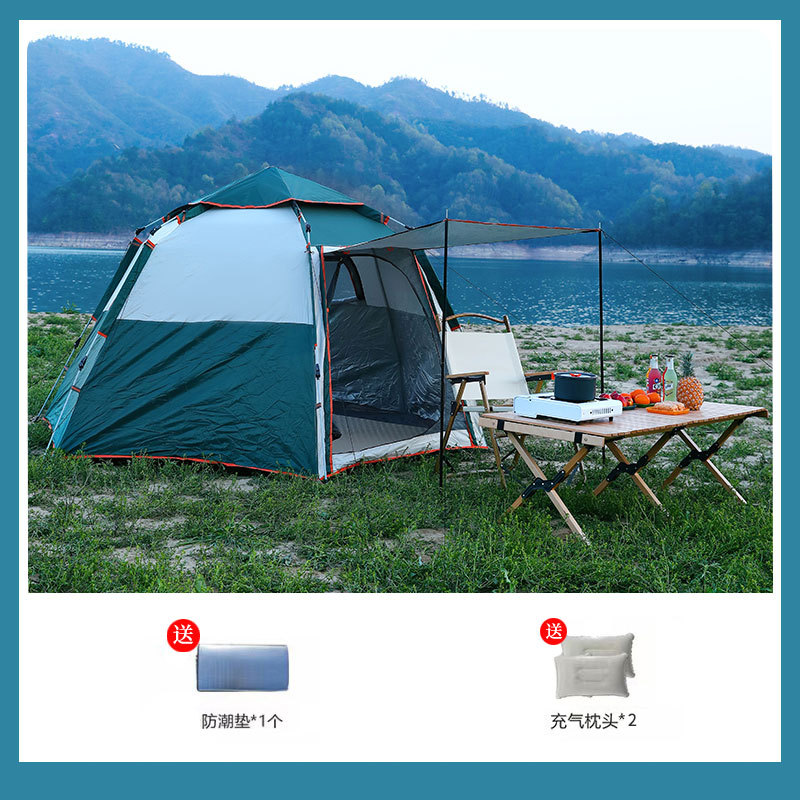 速开野营防水防晒帐篷3-5人家庭户外沙滩公园露营全自动六角帐篷