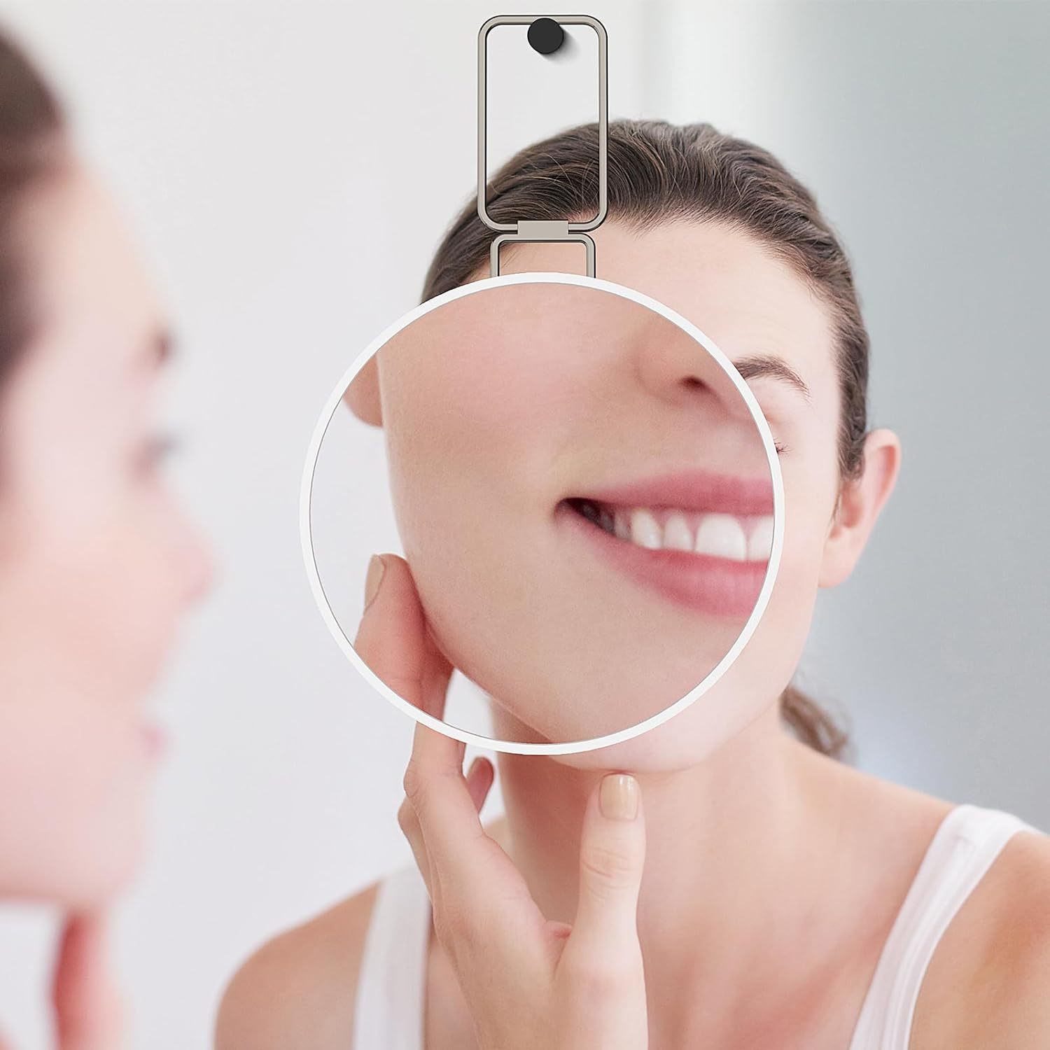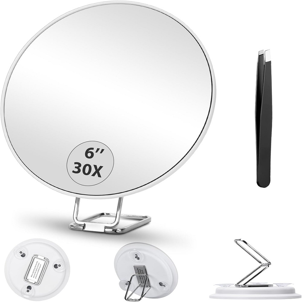 新款手持30X放大圆镜便捷手柄公主镜随身折叠放大支架化妆镜子