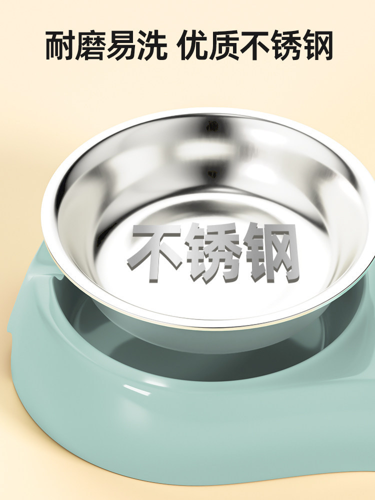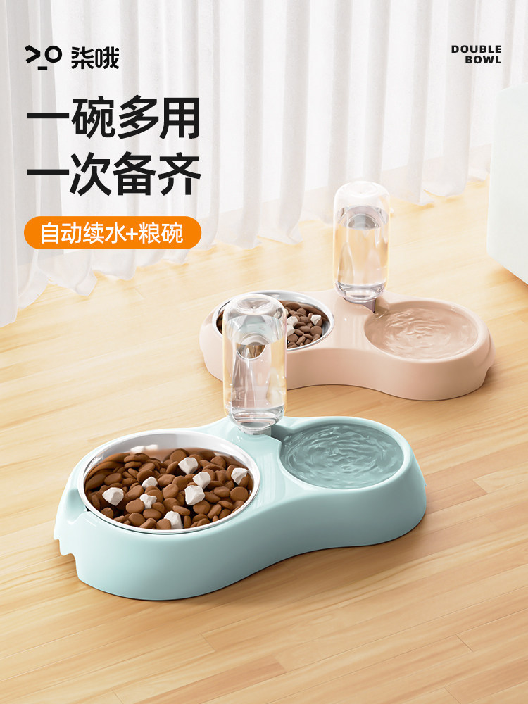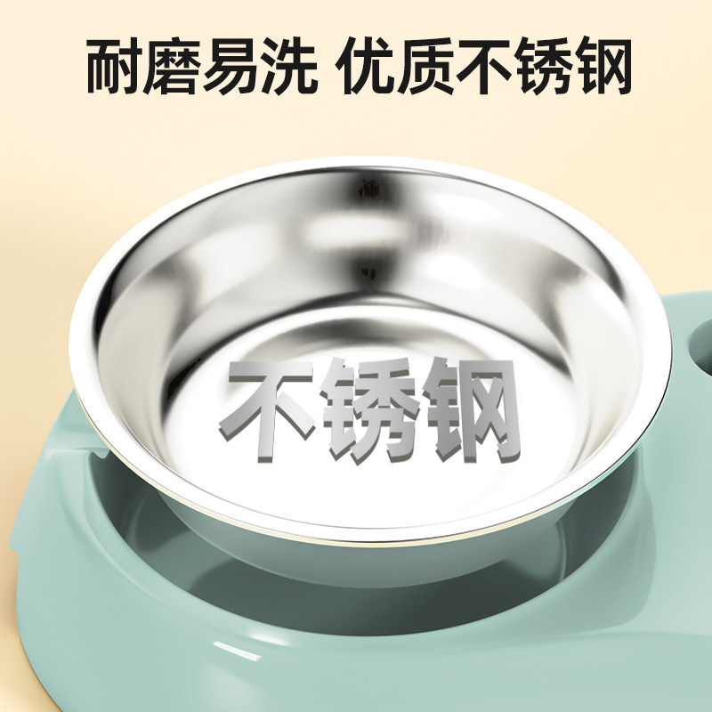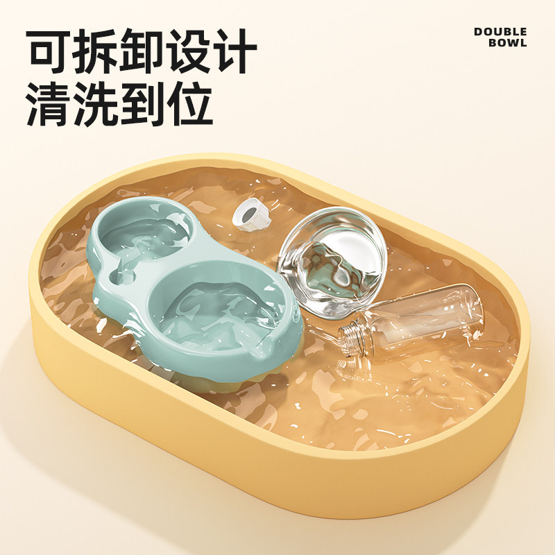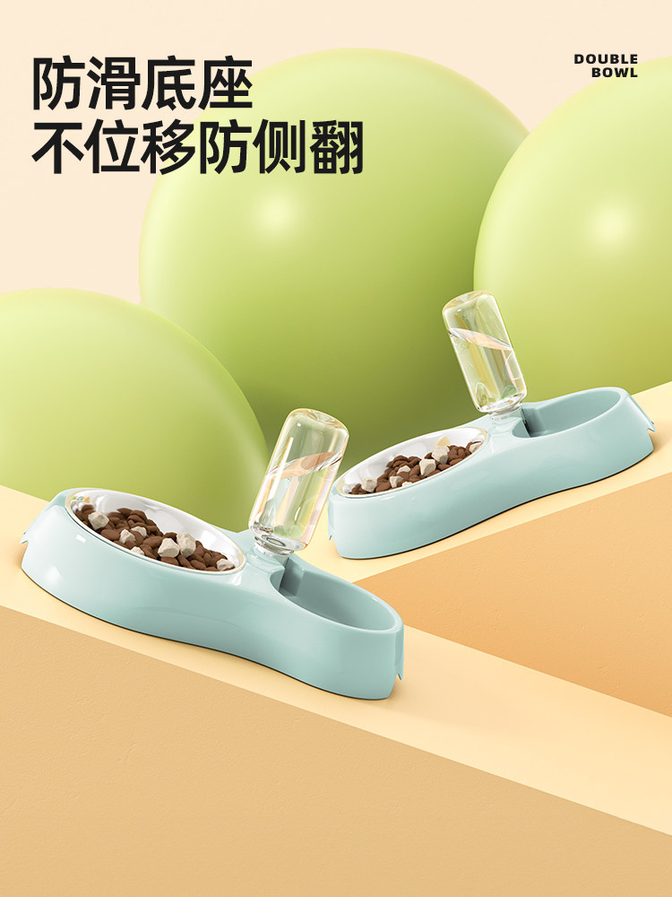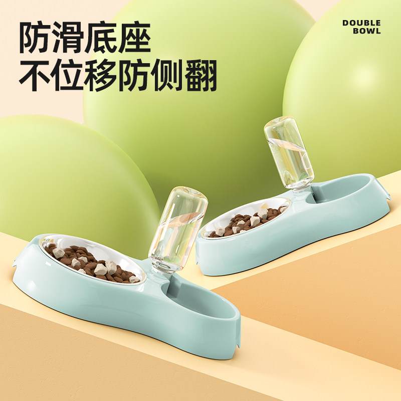 猫食盆猫碗狗盆狗碗喝水一体狗狗自动饮水防打翻宠物双碗猫咪用品