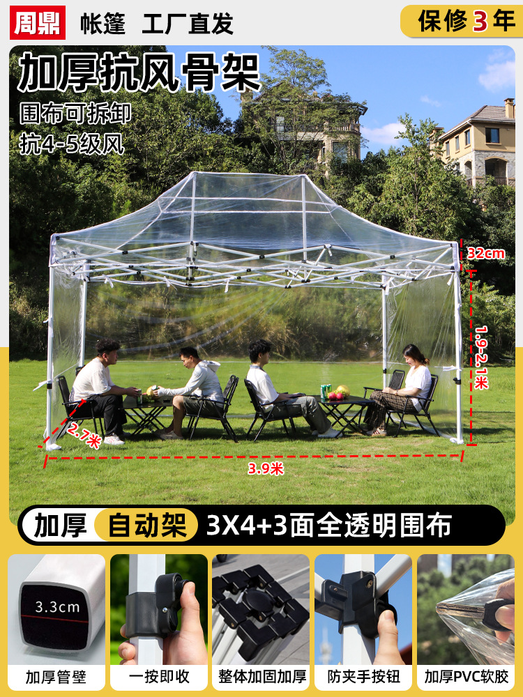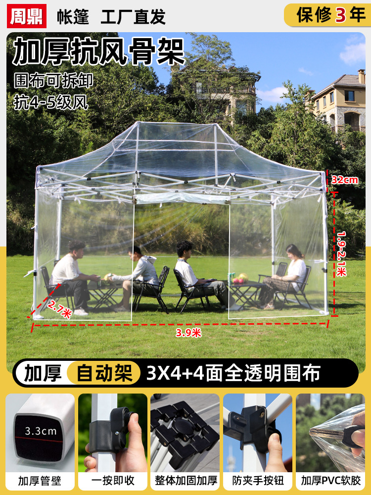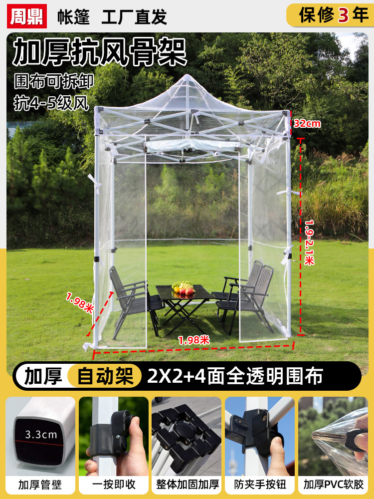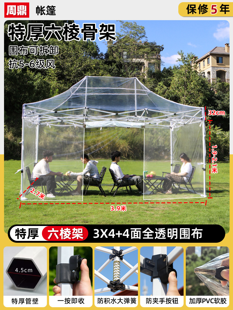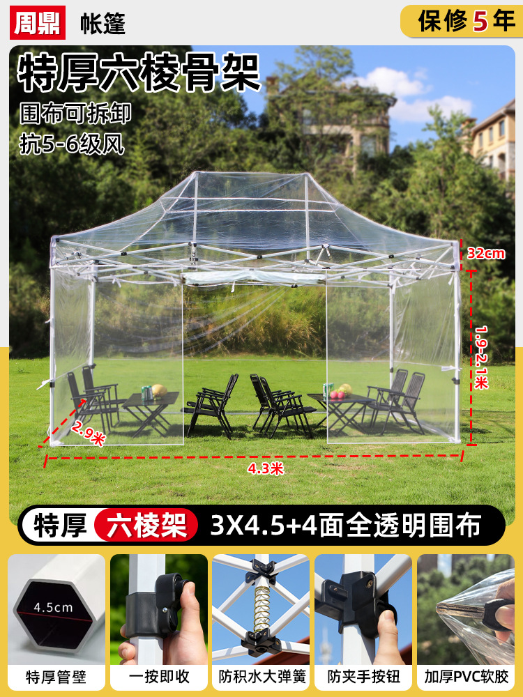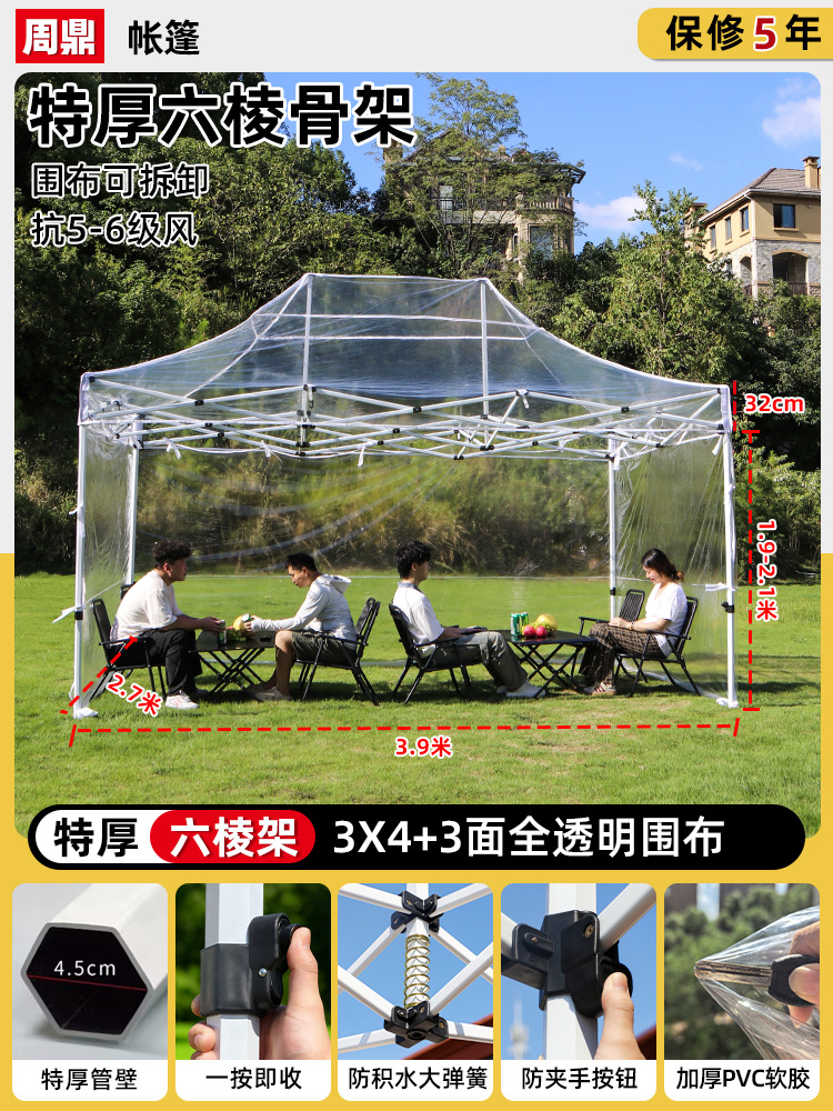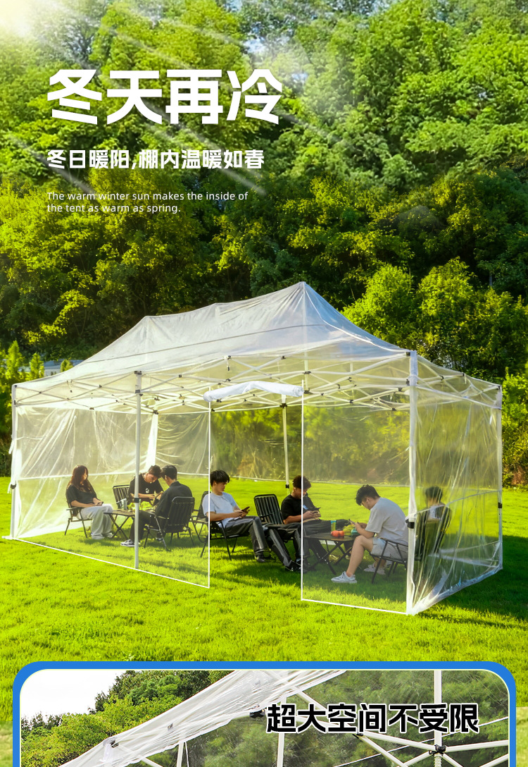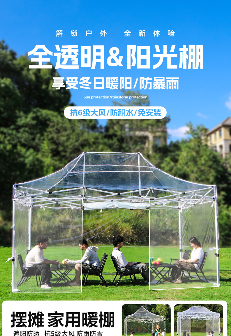 冬季户外全透明防雨四脚帐篷可伸缩保暖雨棚加厚摆摊抗风遮阳棚