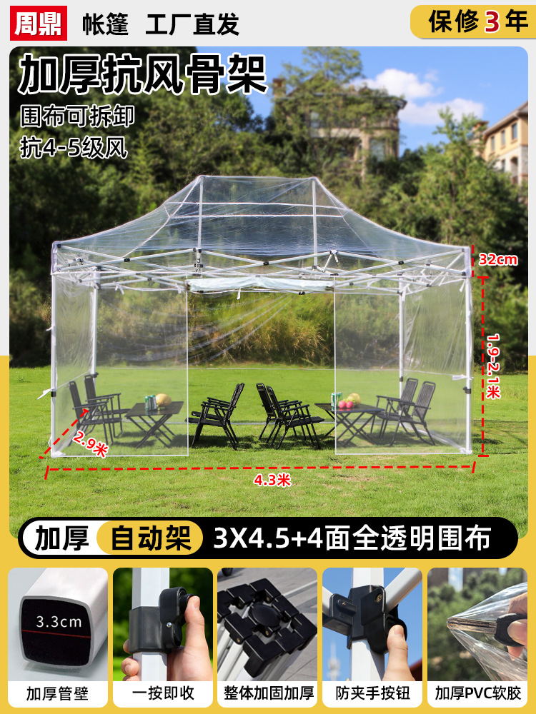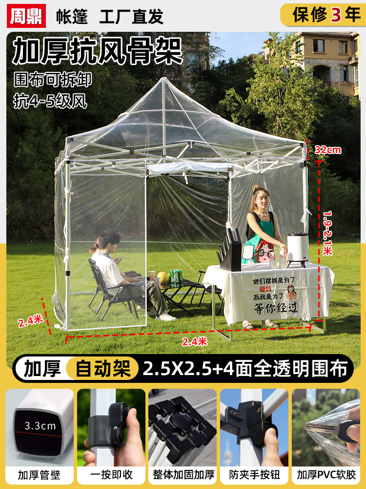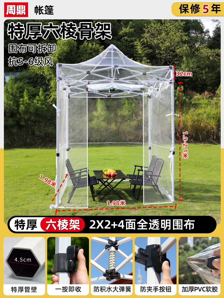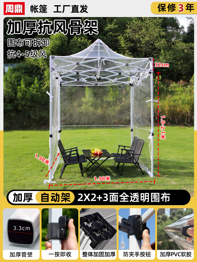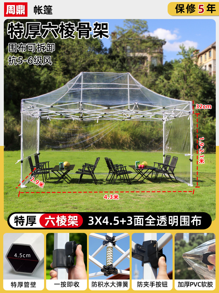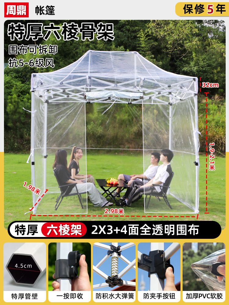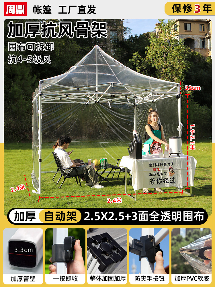 冬季户外全透明防雨四脚帐篷可伸缩保暖雨棚加厚摆摊抗风遮阳棚