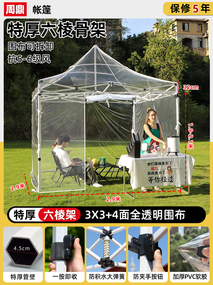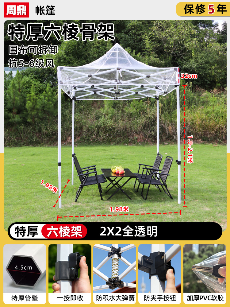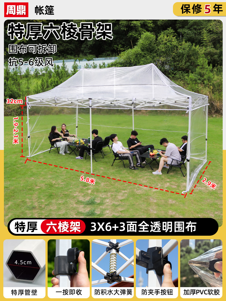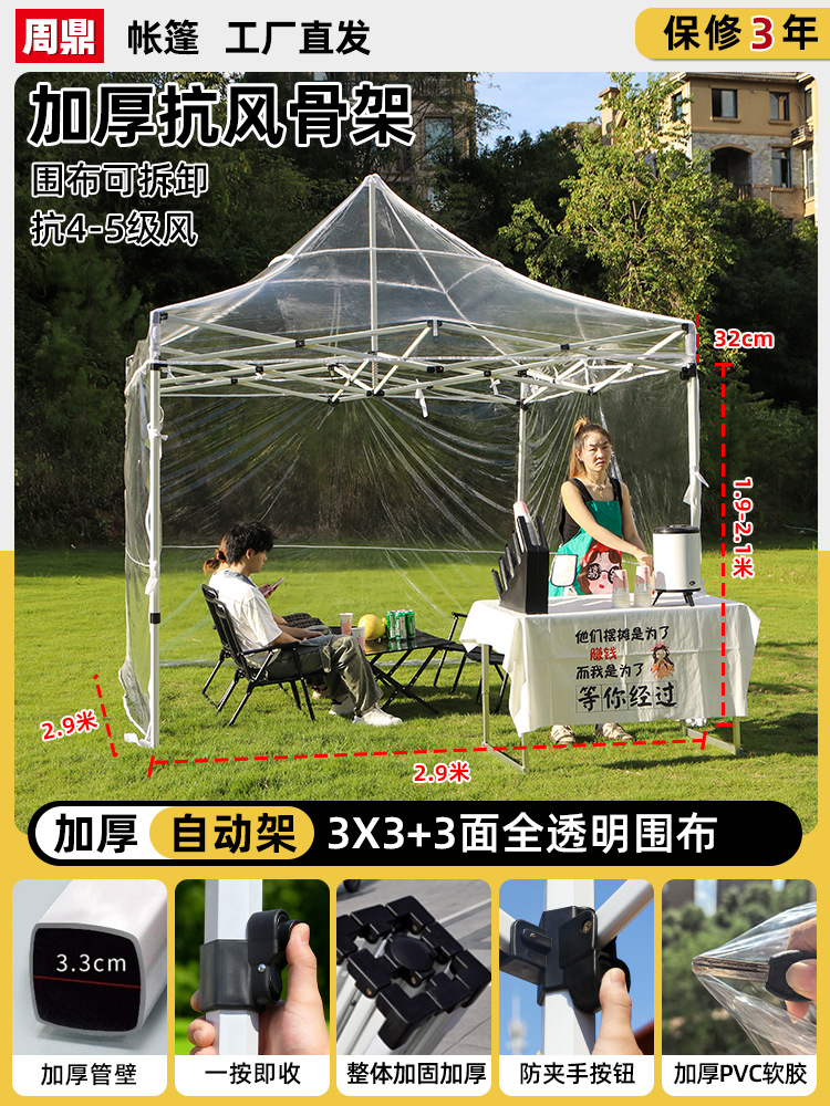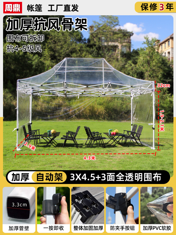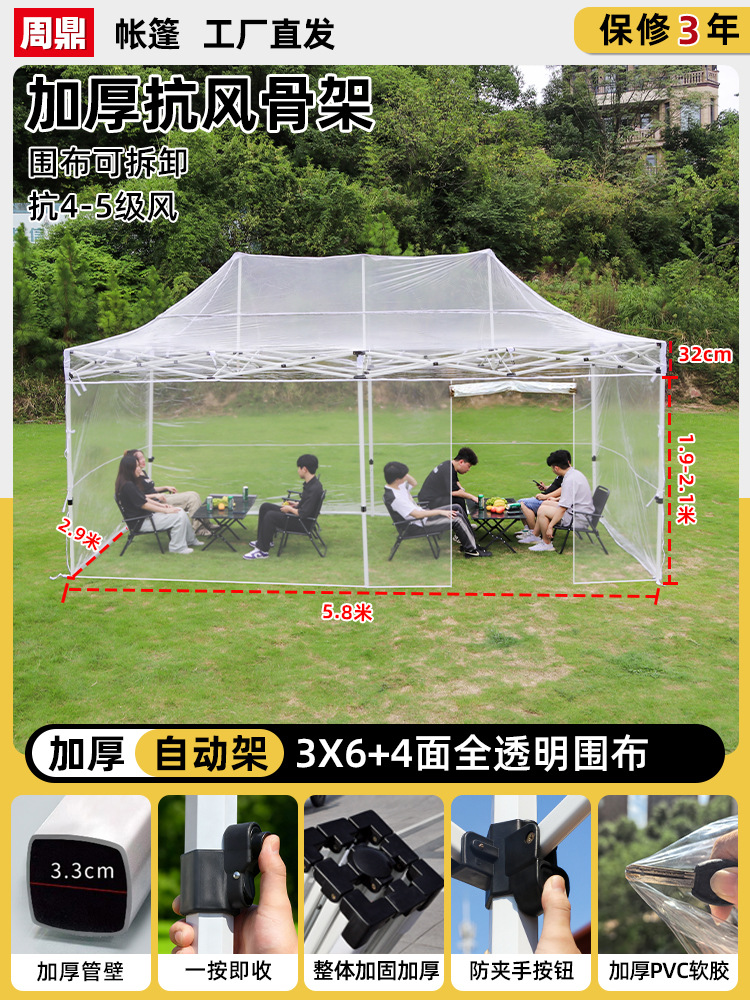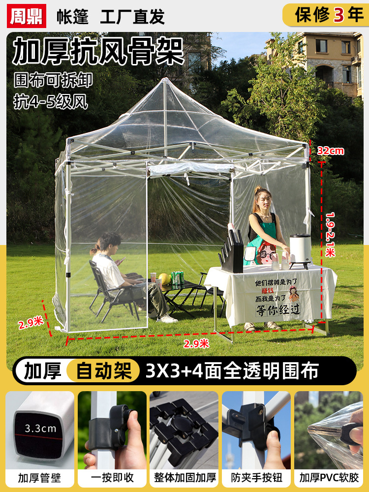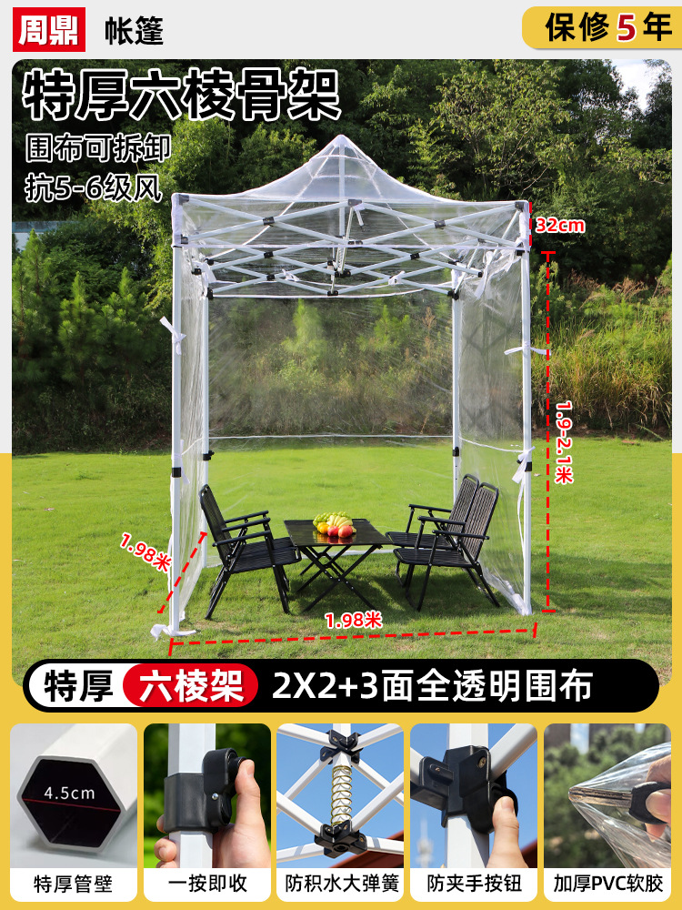 冬季户外全透明防雨四脚帐篷可伸缩保暖雨棚加厚摆摊抗风遮阳棚