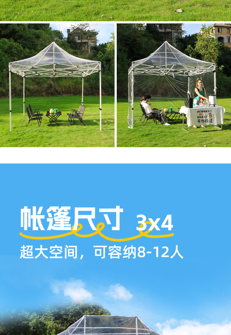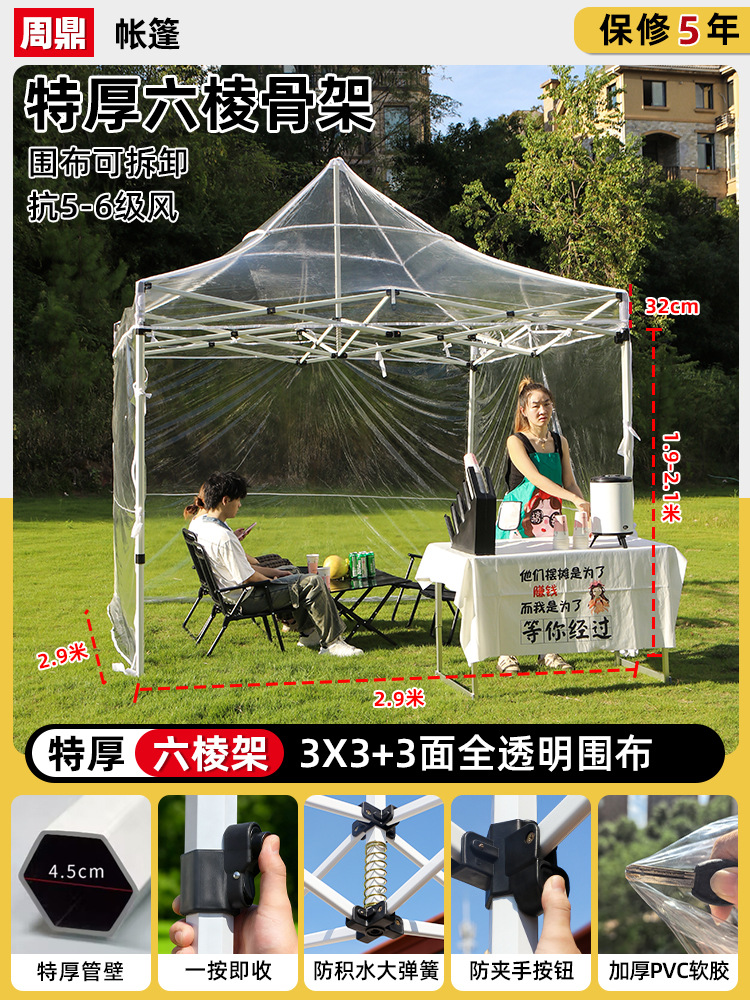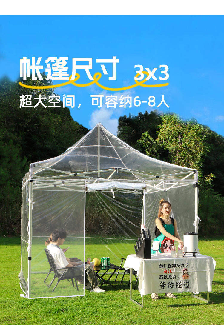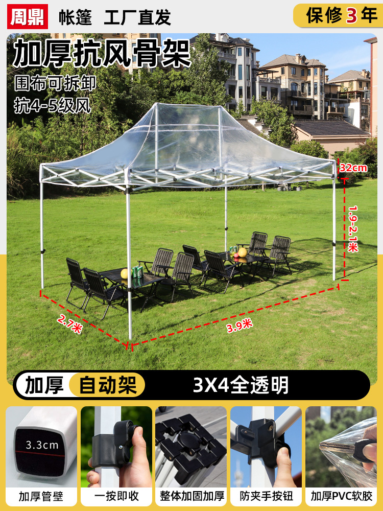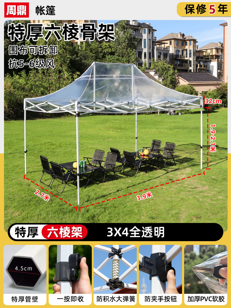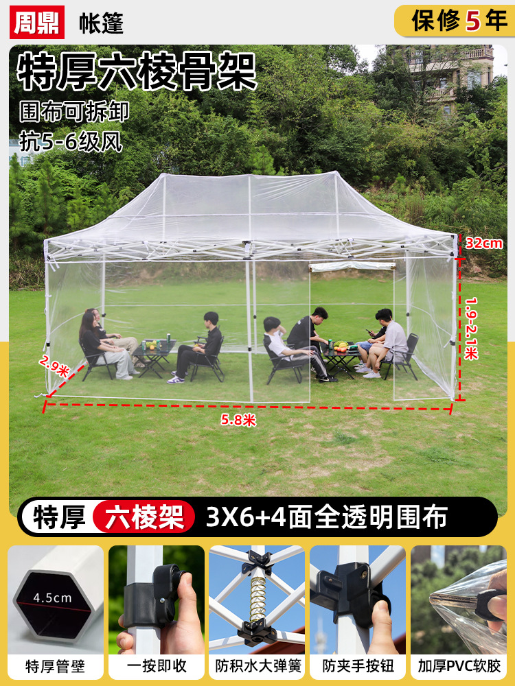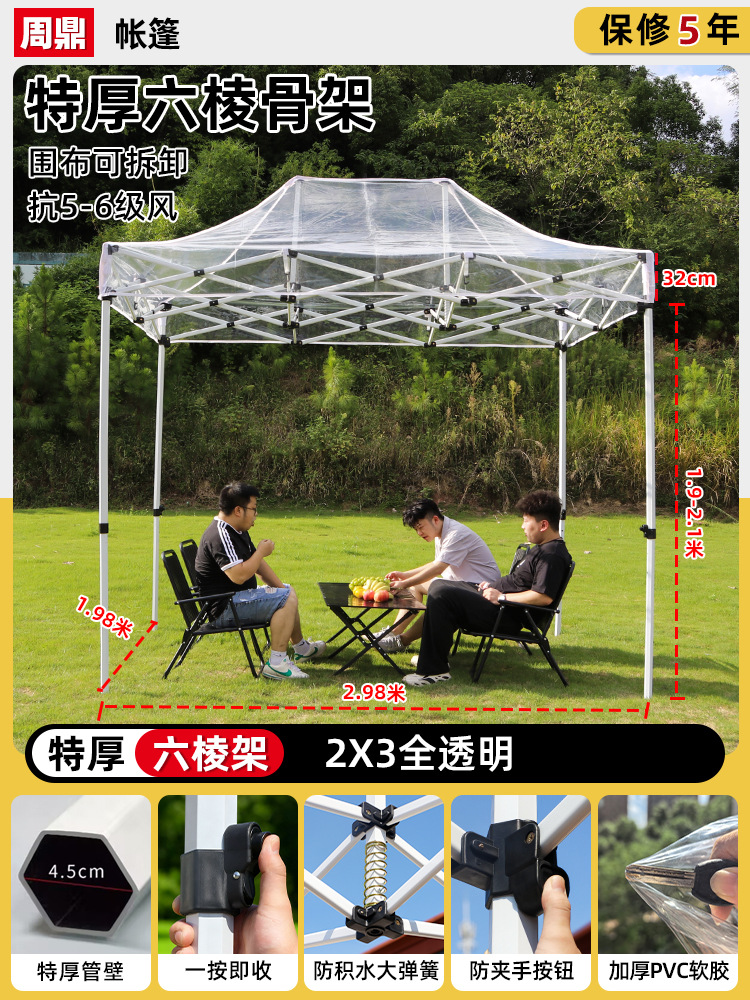 冬季户外全透明防雨四脚帐篷可伸缩保暖雨棚加厚摆摊抗风遮阳棚