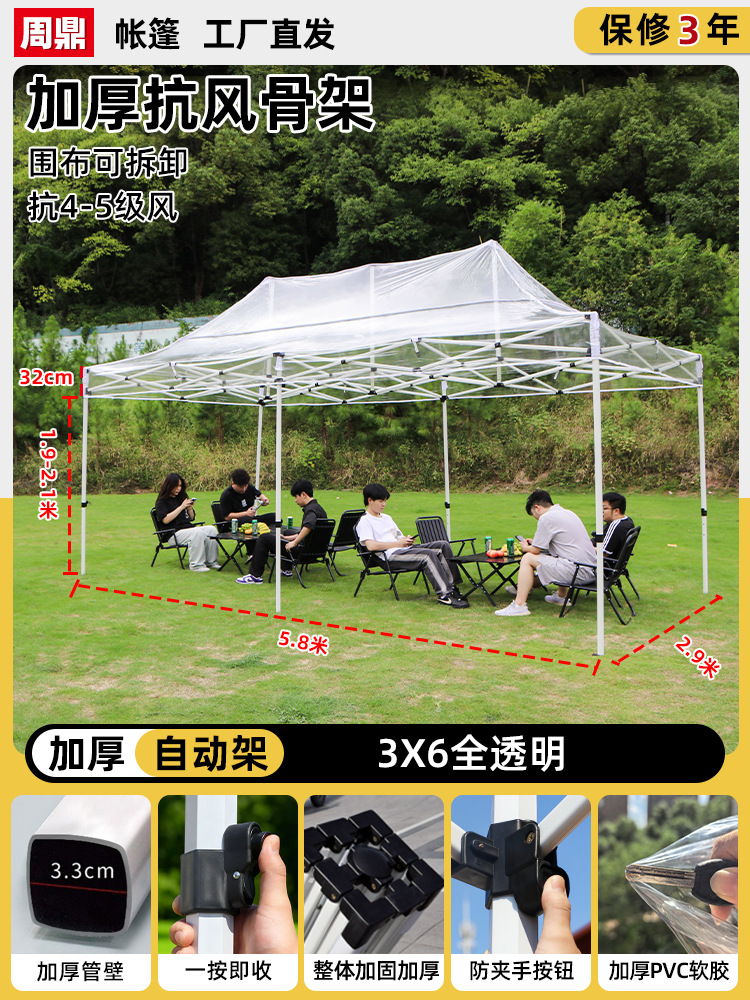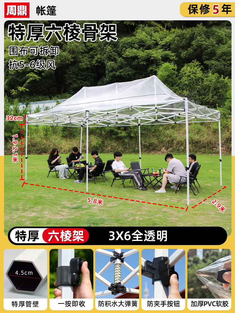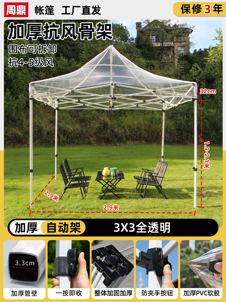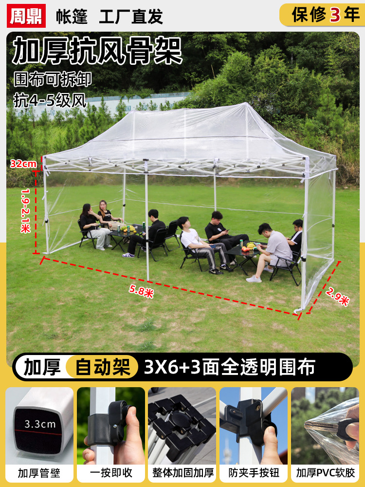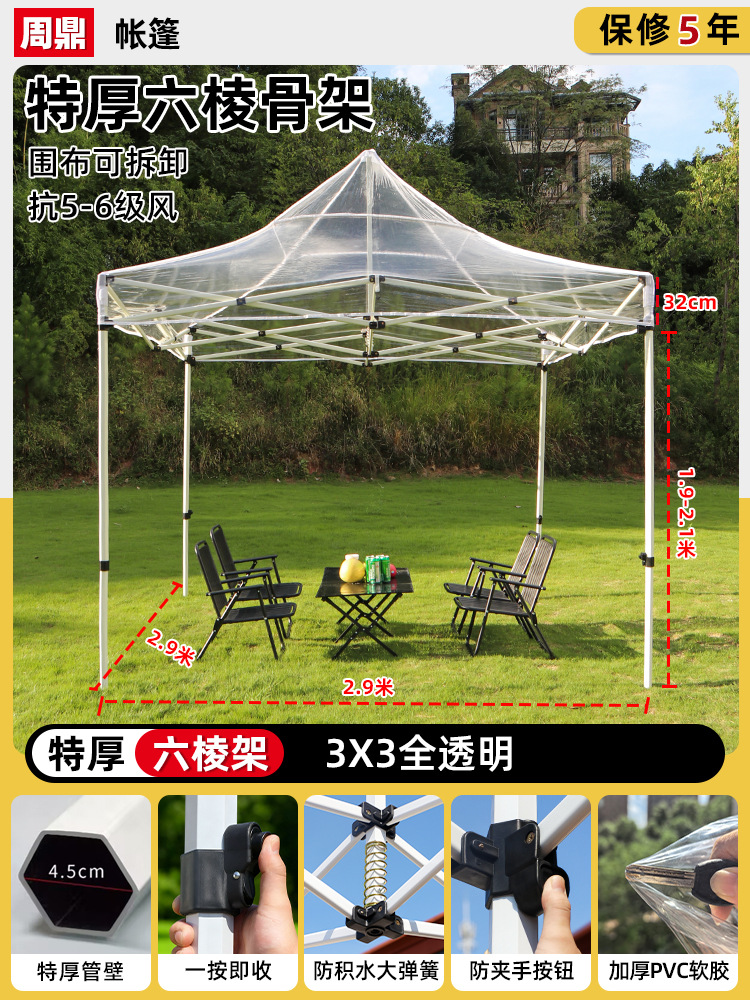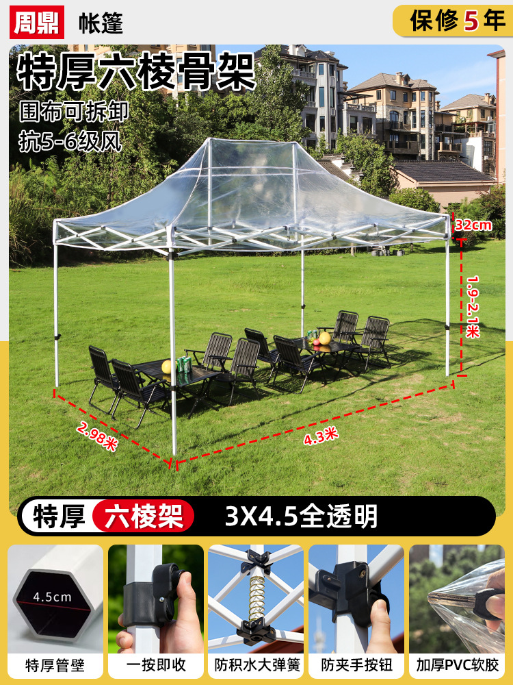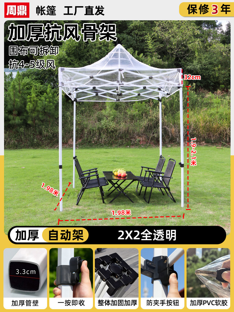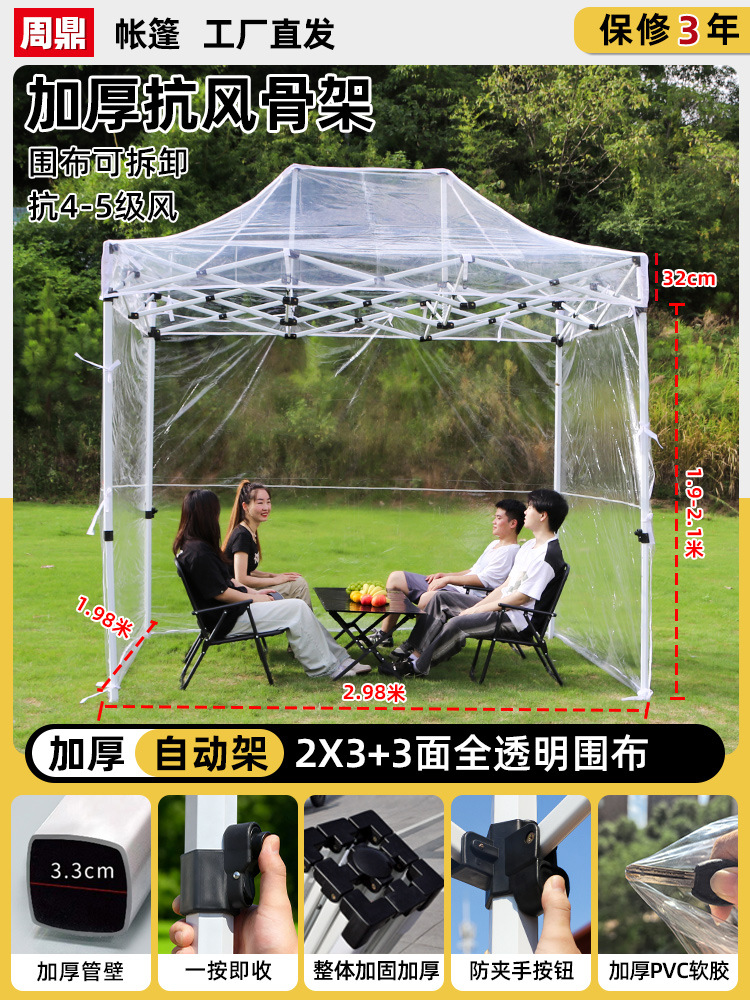 冬季户外全透明防雨四脚帐篷可伸缩保暖雨棚加厚摆摊抗风遮阳棚