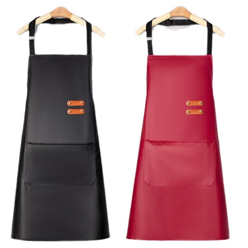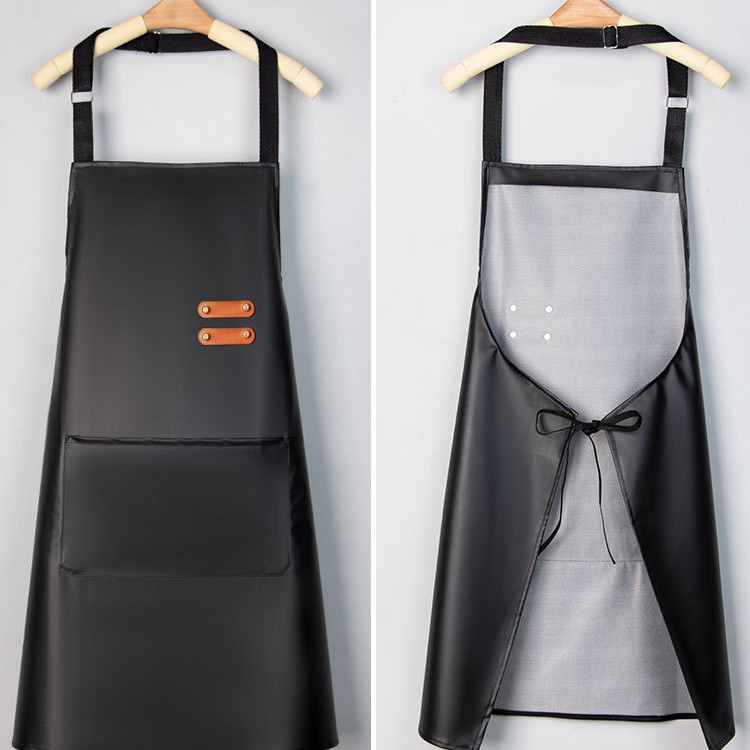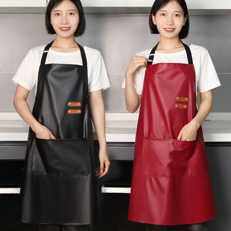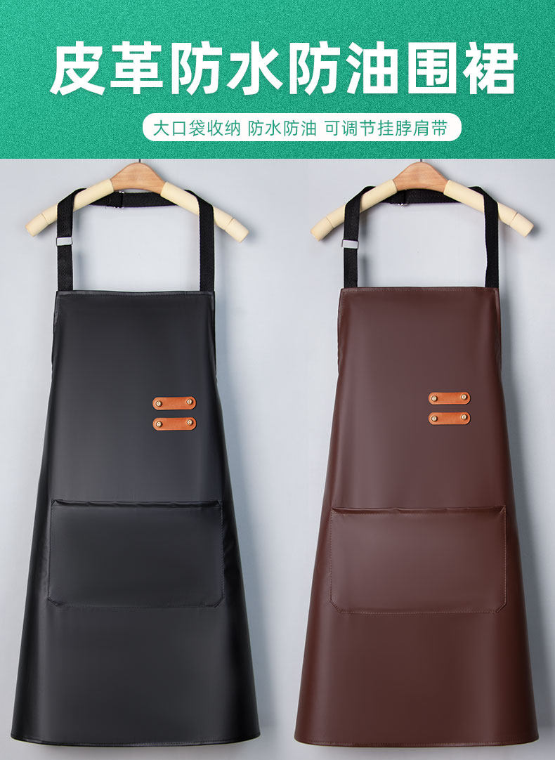 新款皮革围裙女家用防水防油耐脏工作服厨房餐饮饭店围腰劳保围裙
