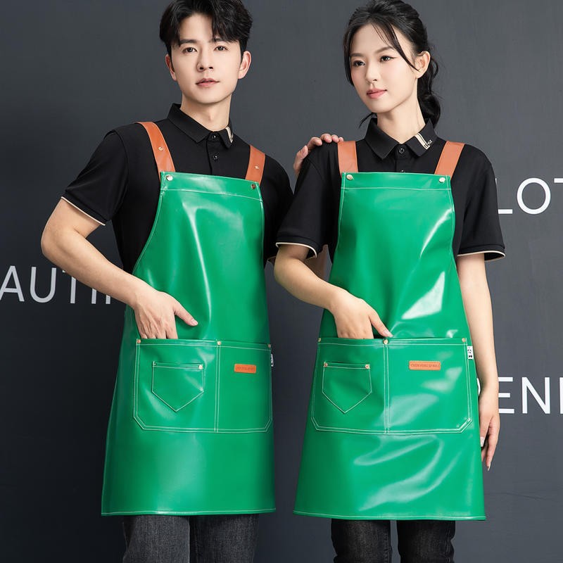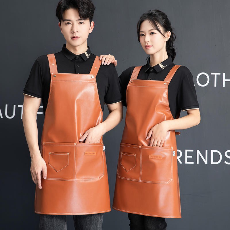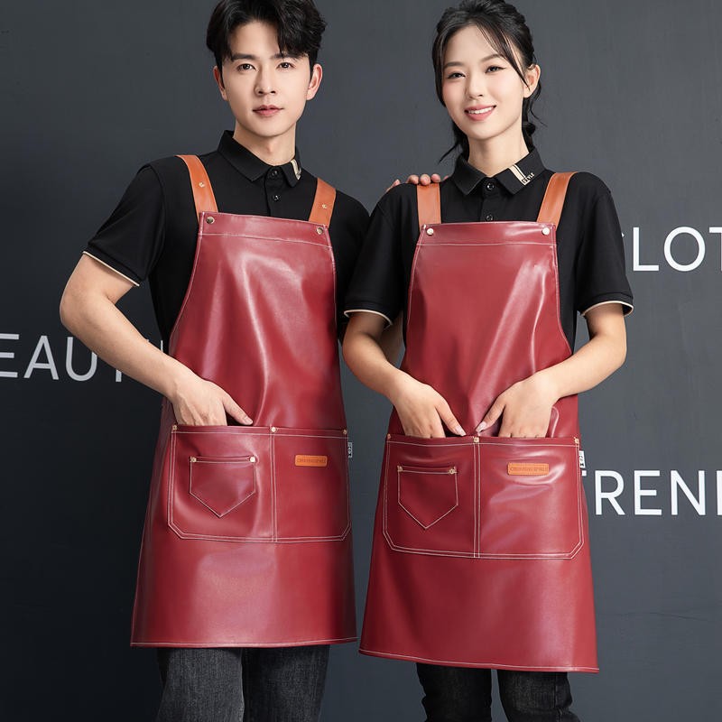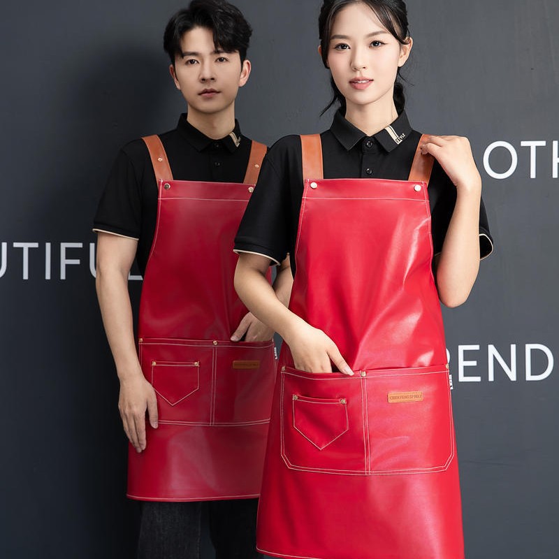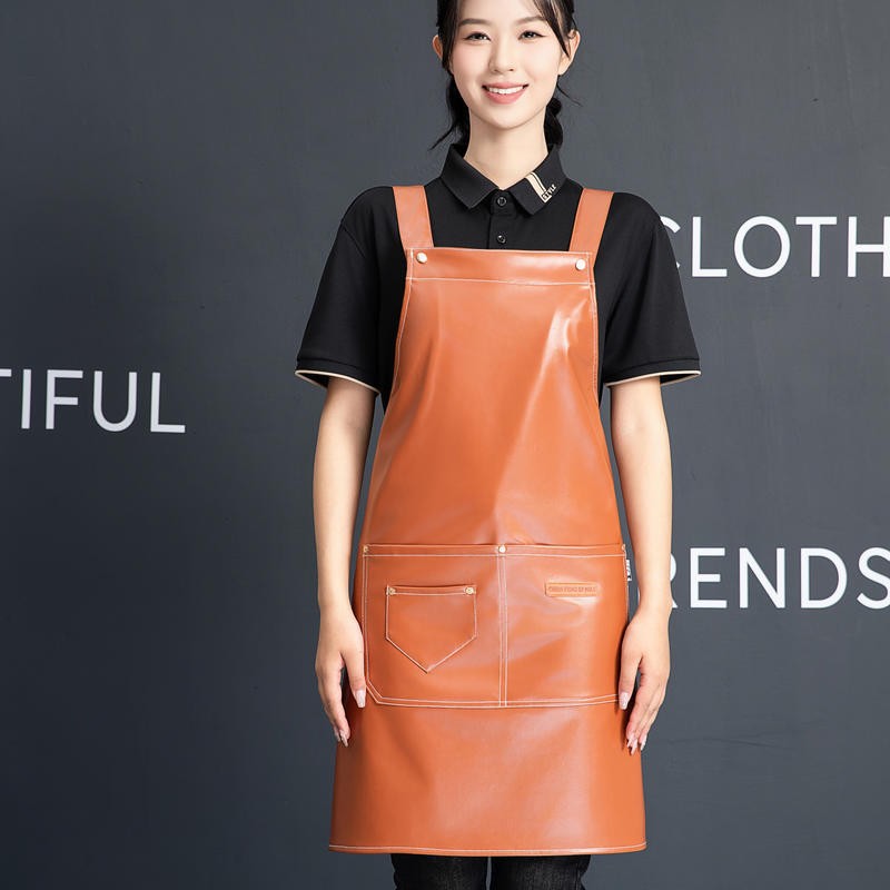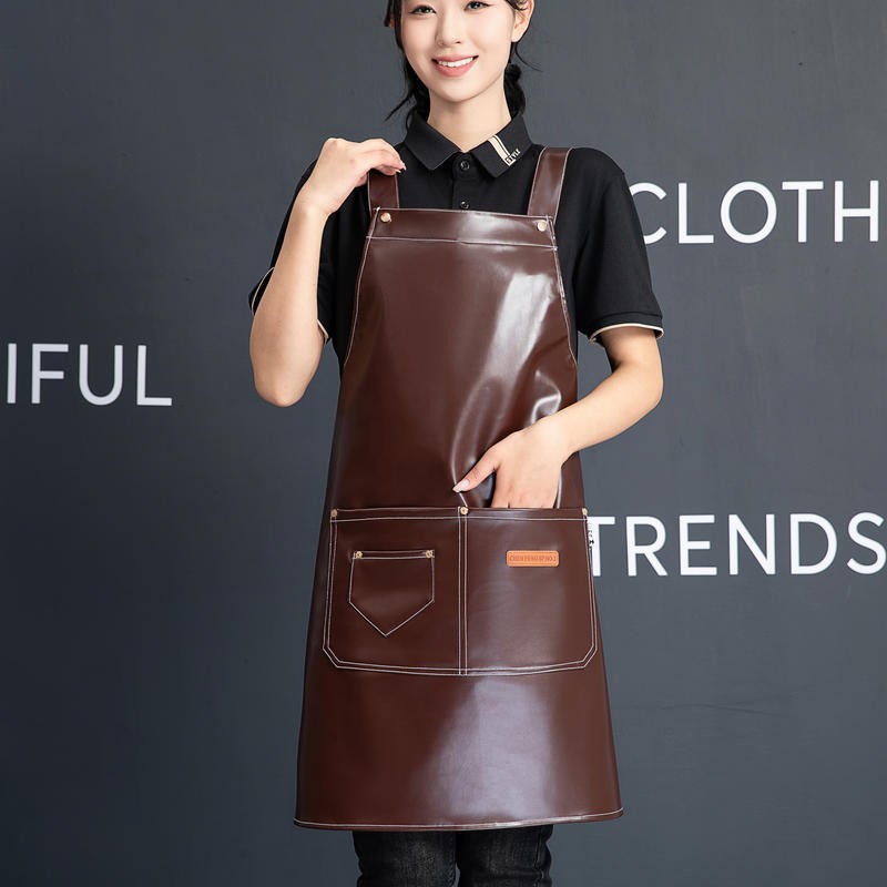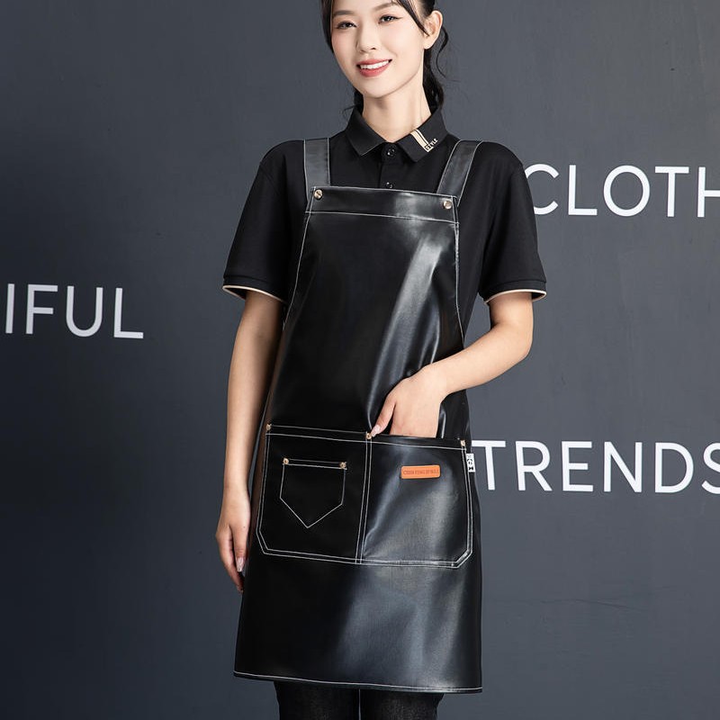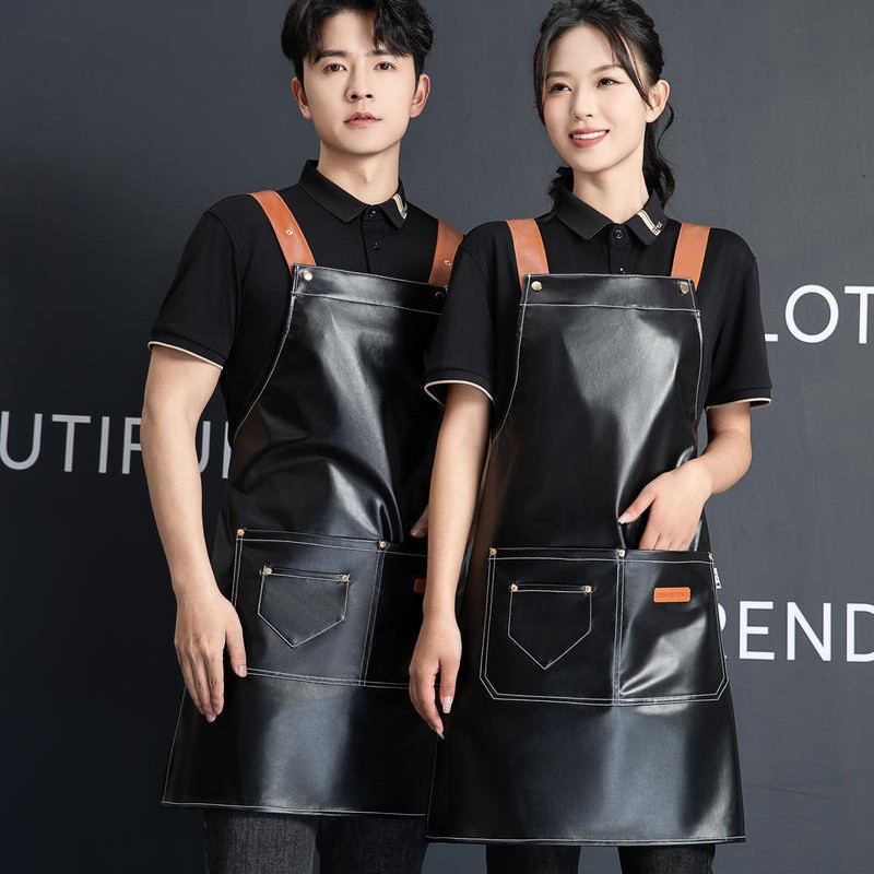 PU软皮防水防油背带围裙可定制logo餐饮厨房水产皮革围腰免费印字
