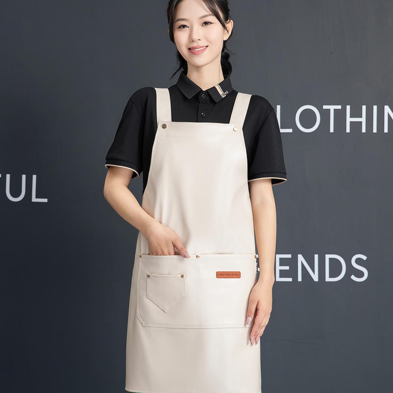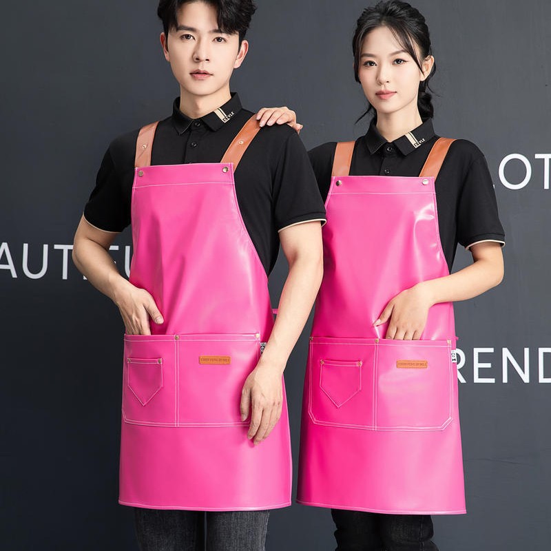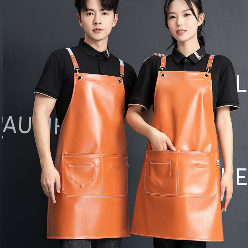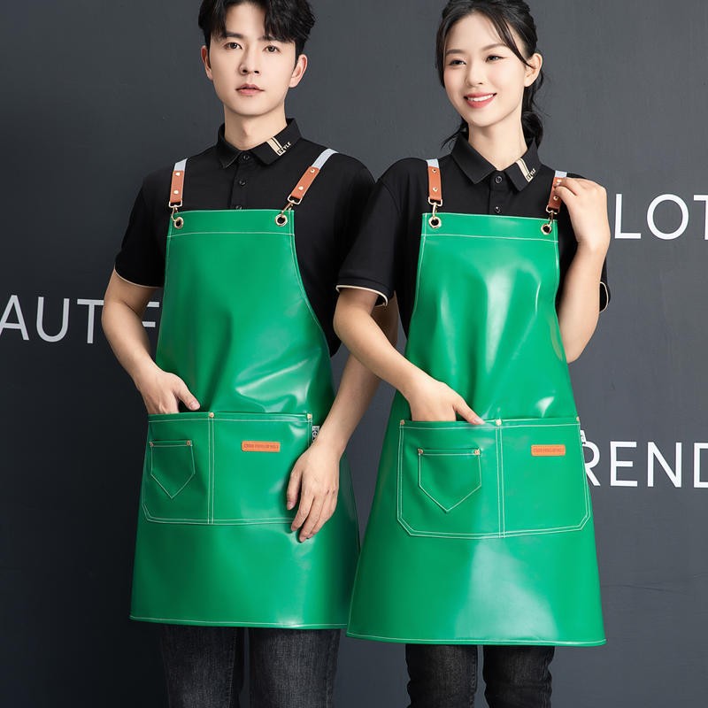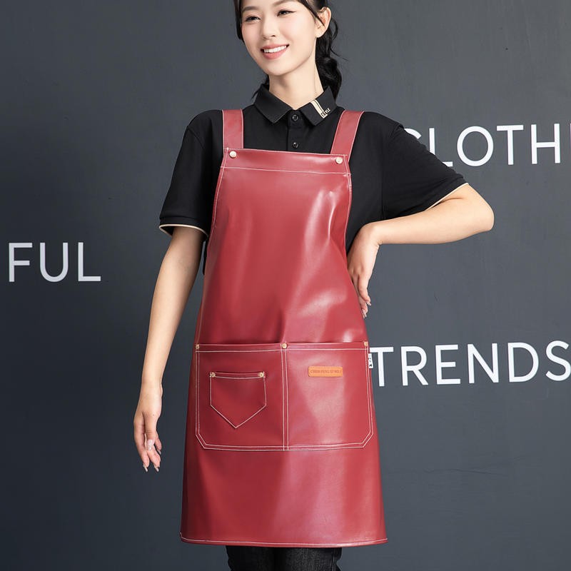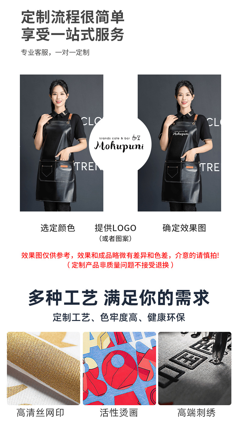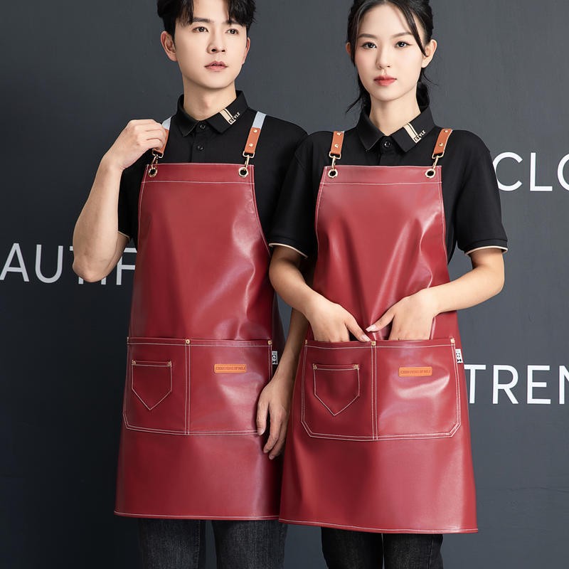 PU软皮防水防油背带围裙可定制logo餐饮厨房水产皮革围腰免费印字