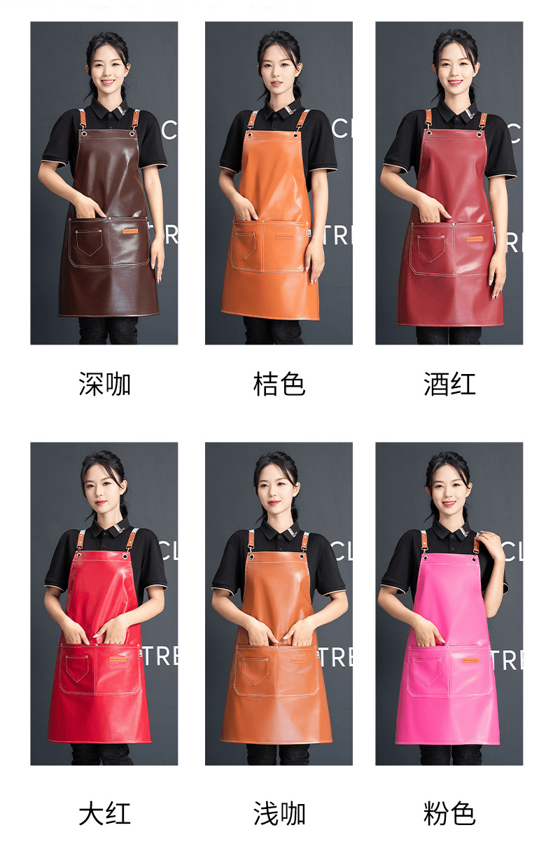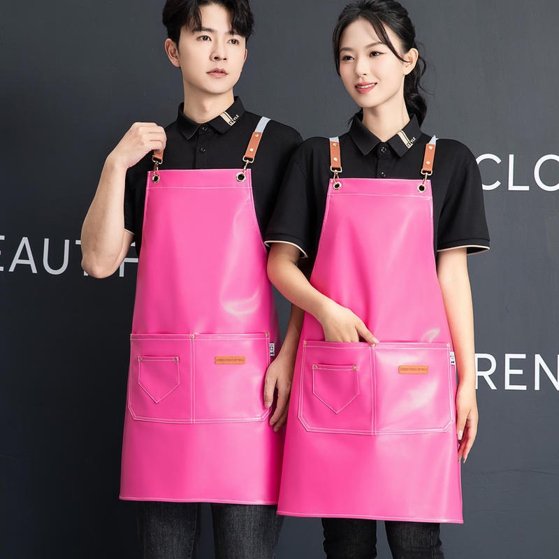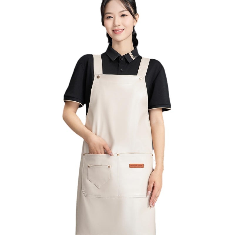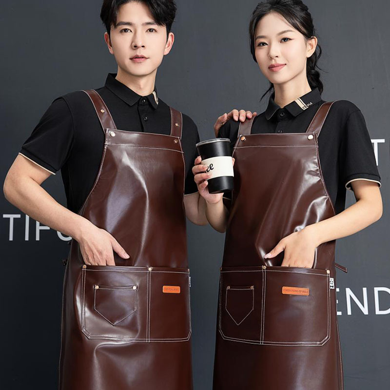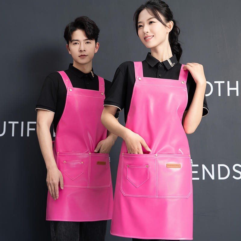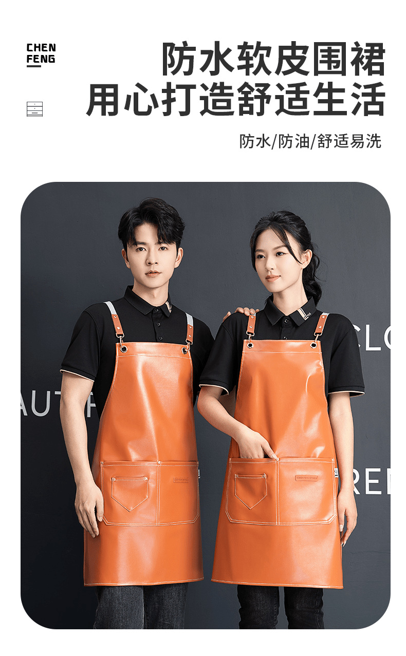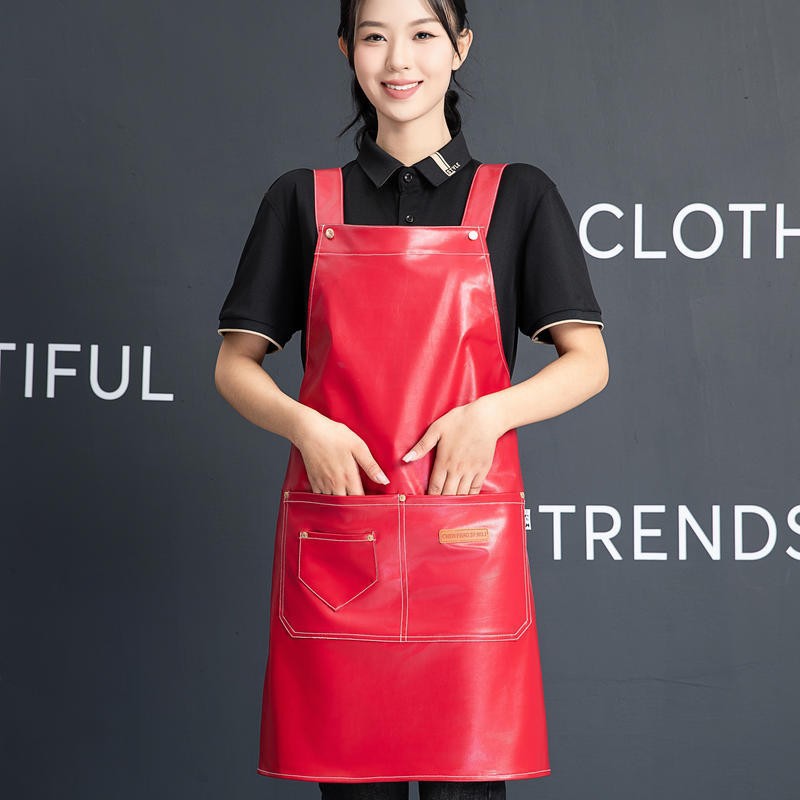 PU软皮防水防油背带围裙可定制logo餐饮厨房水产皮革围腰免费印字