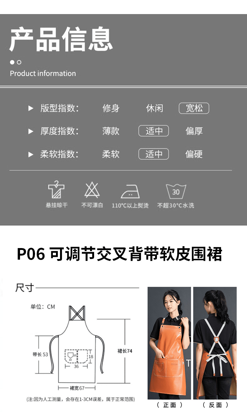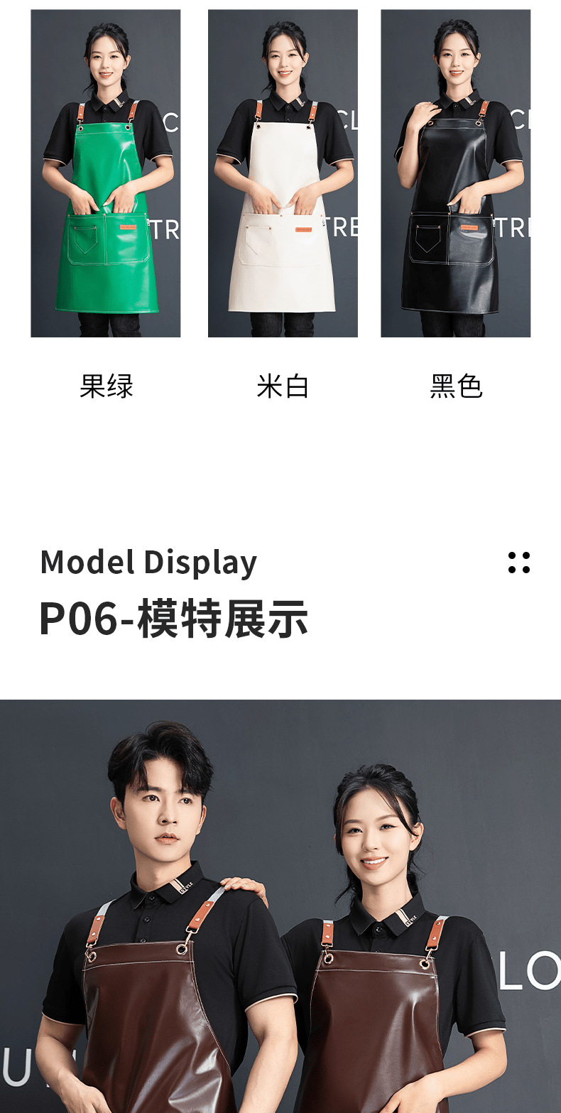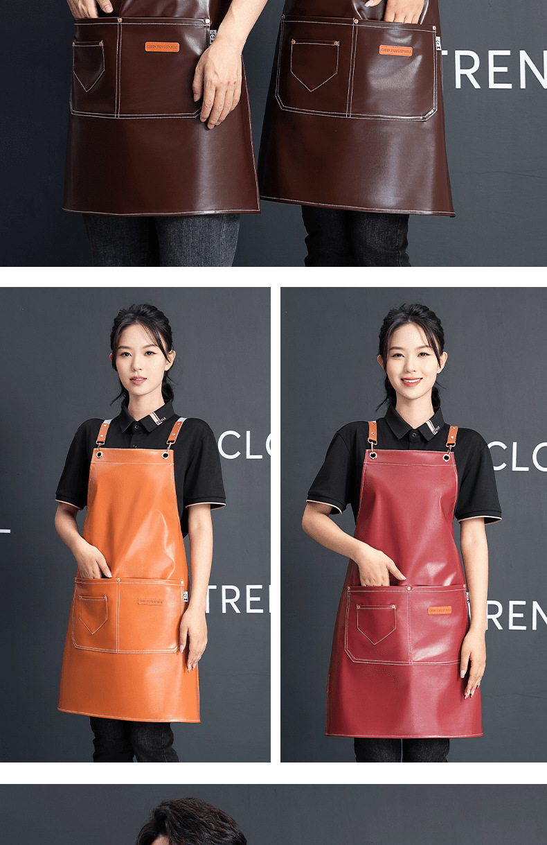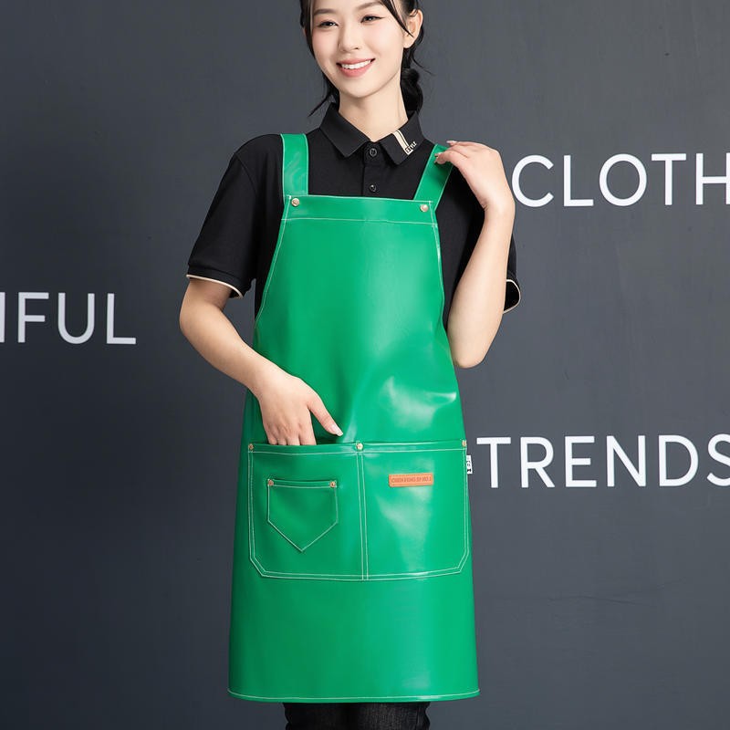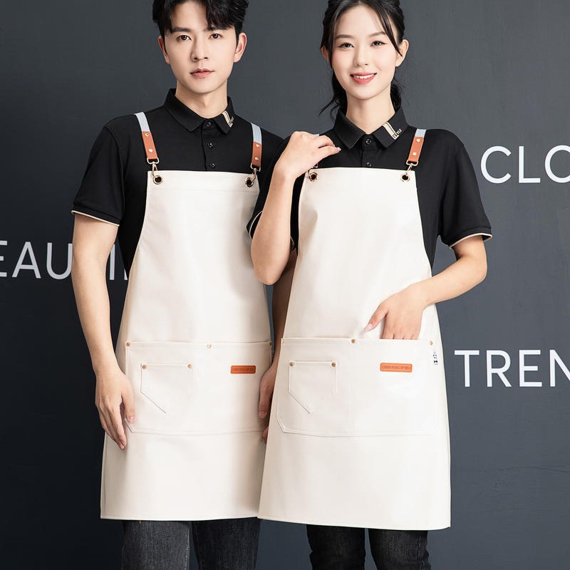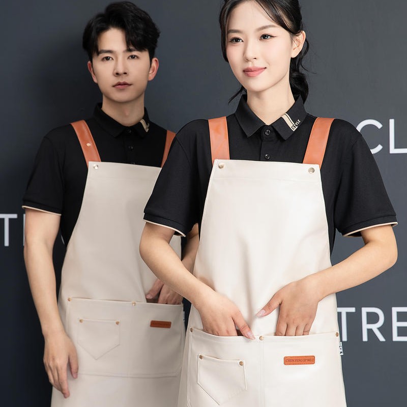 PU软皮防水防油背带围裙可定制logo餐饮厨房水产皮革围腰免费印字
