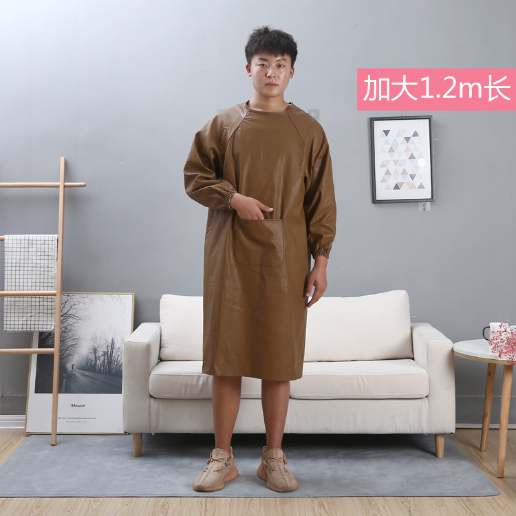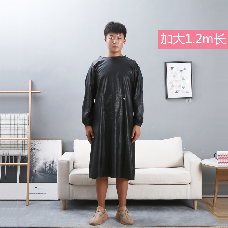 防水防油皮革围裙成人反穿衣倒背PU皮罩衣男长袖加厚工作服女围腰