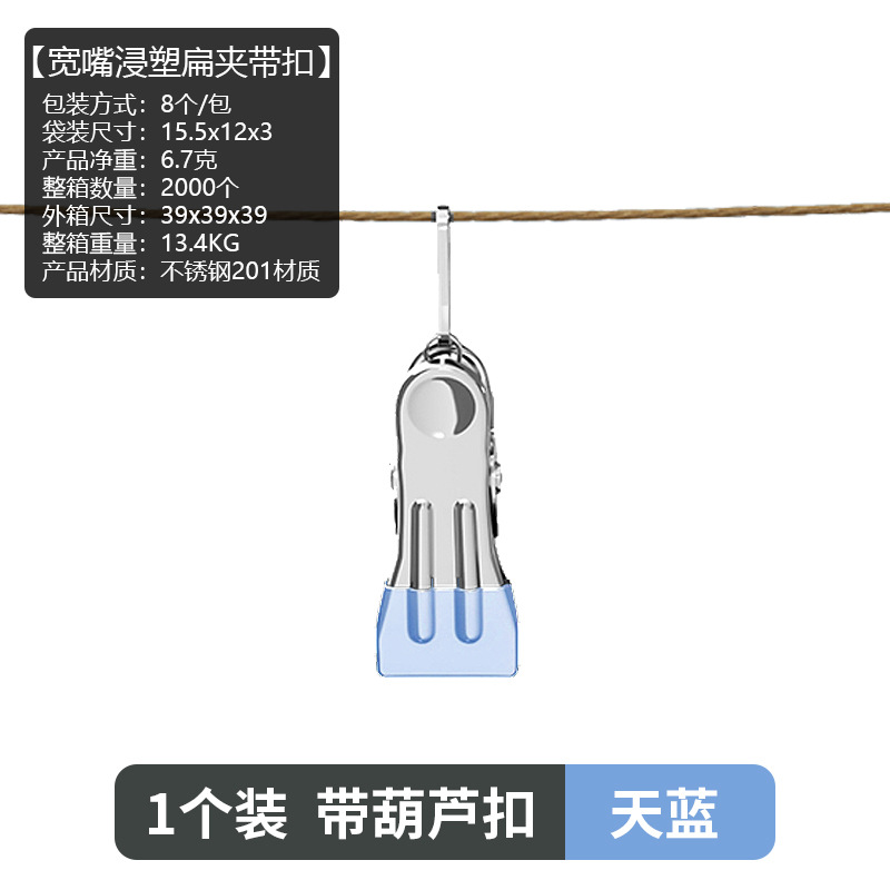 无痕宽嘴浸塑扁夹防风晾晒夹子被夹晾衣夹家用晒衣服金属铁夹子