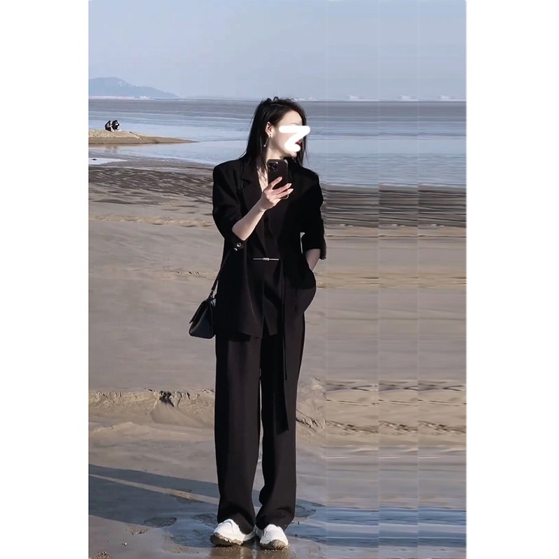 【现货】2026大码女装春秋微胖mm套装设计感西装阔腿裤两件套235