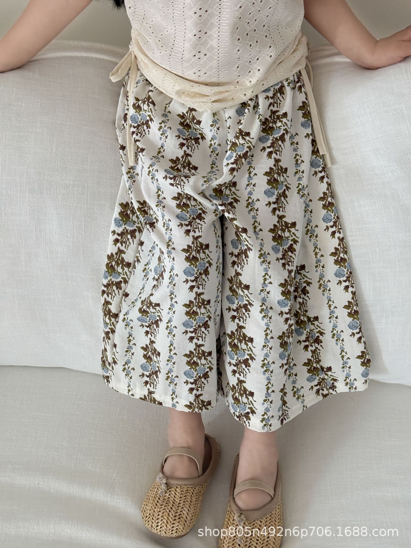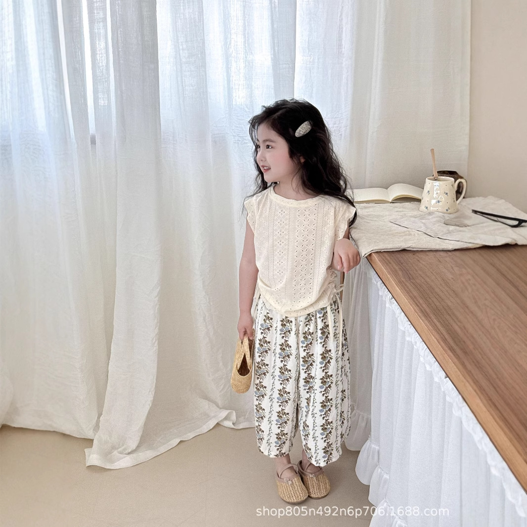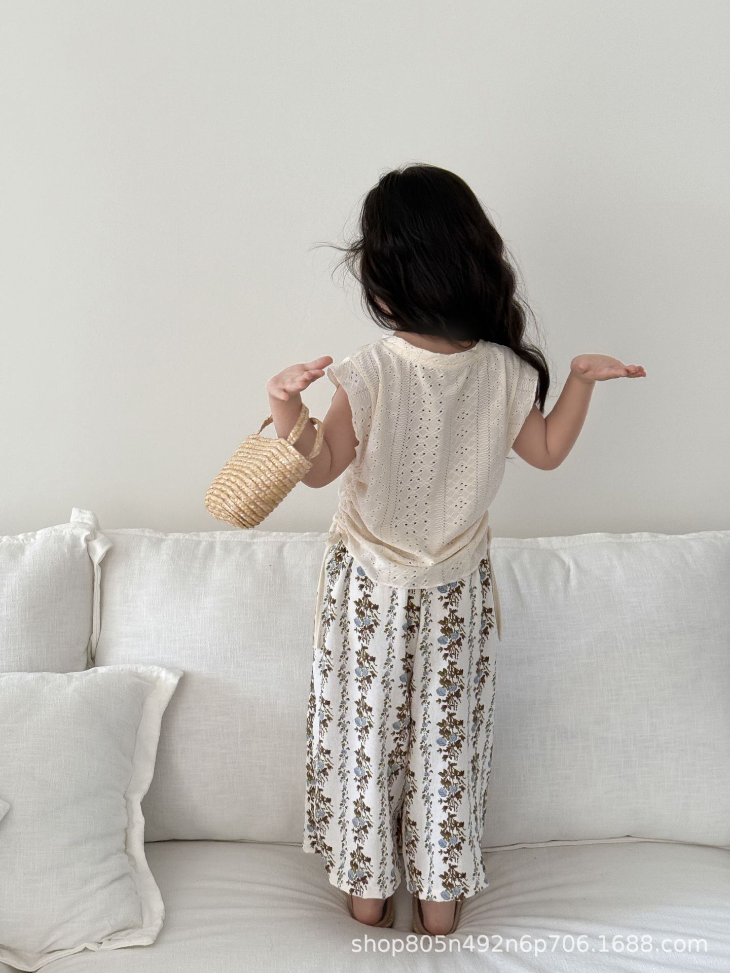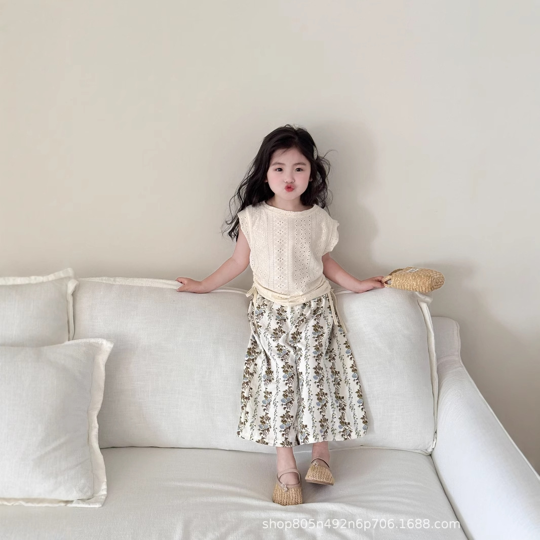 女童夏季套装儿童洋气透气网眼时尚上衣女宝碎花阔腿裤休闲中小童