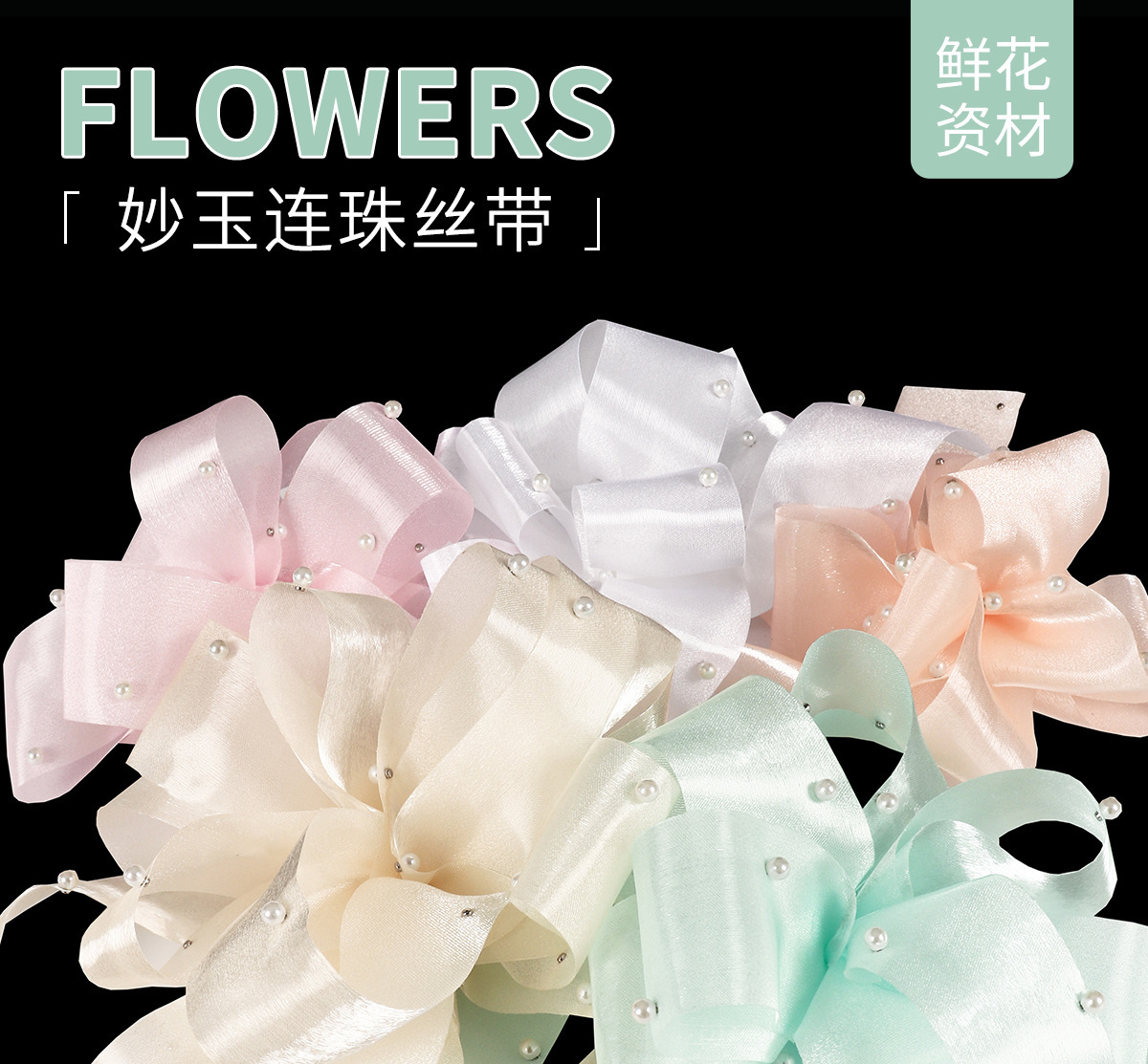 妙玉连珠丝带珍珠丝带鲜花包装织带礼品打包装饰彩带手工花艺资材