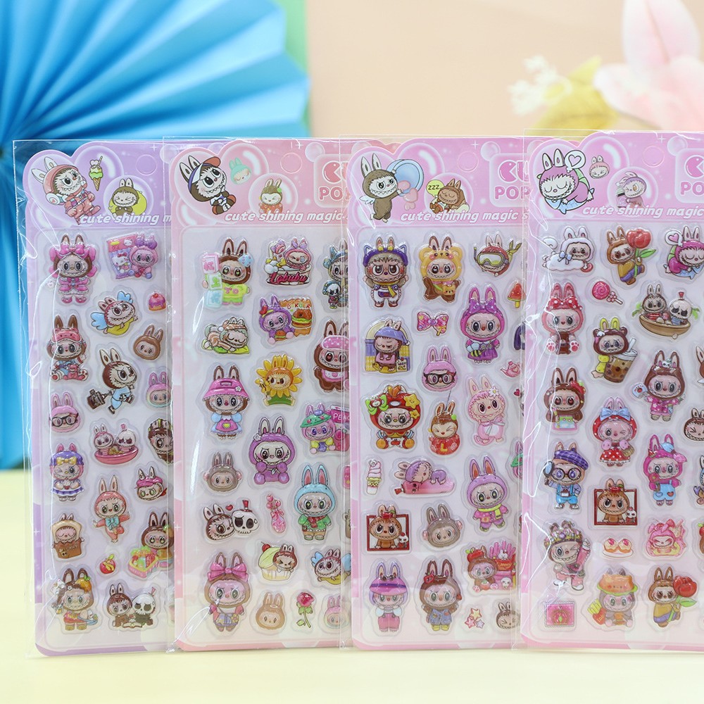 外贸爆款哭娃3D浮雕趣味贴纸创意高颜值泡泡玛特系列手帐素材贴纸