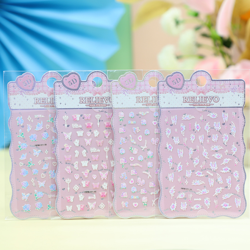 5D浮雕美甲贴纸甜美爱心蝴蝶结款立体浮雕工艺美甲DIY装饰批发