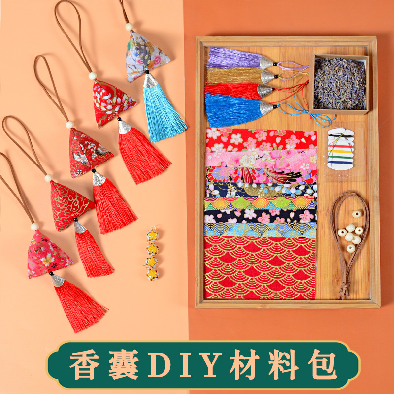 香囊DIY空袋研学材料包福袋艾草手工三角粽子挂件端午节香包礼品