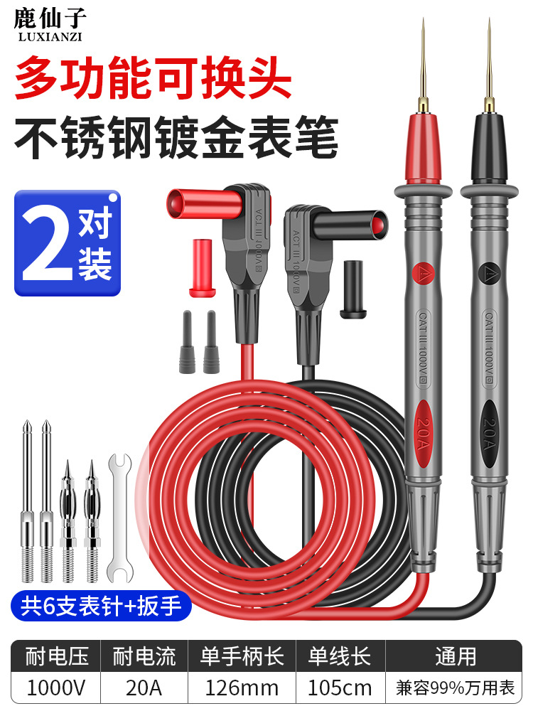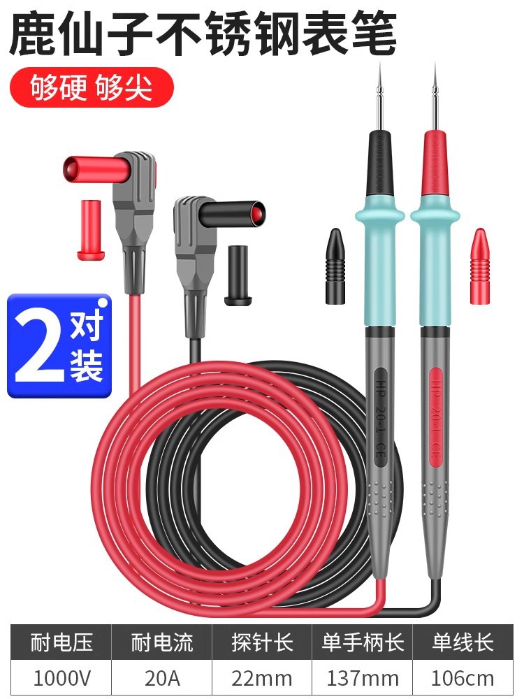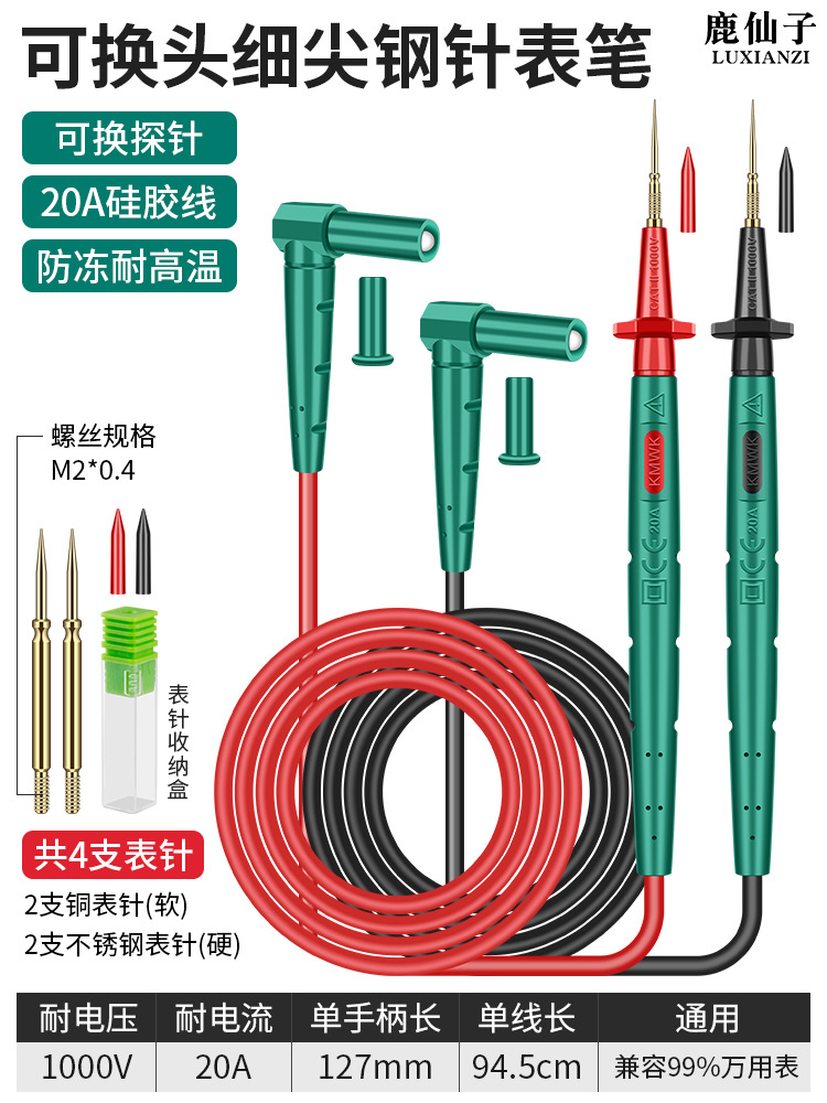 鹿仙子不锈钢万用表表笔线万能表笔特尖钢针通用硅胶线细探针表针