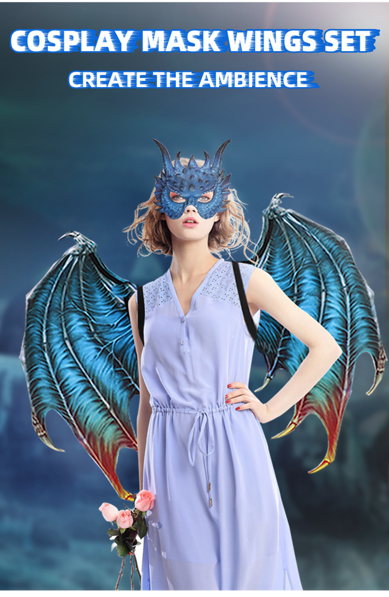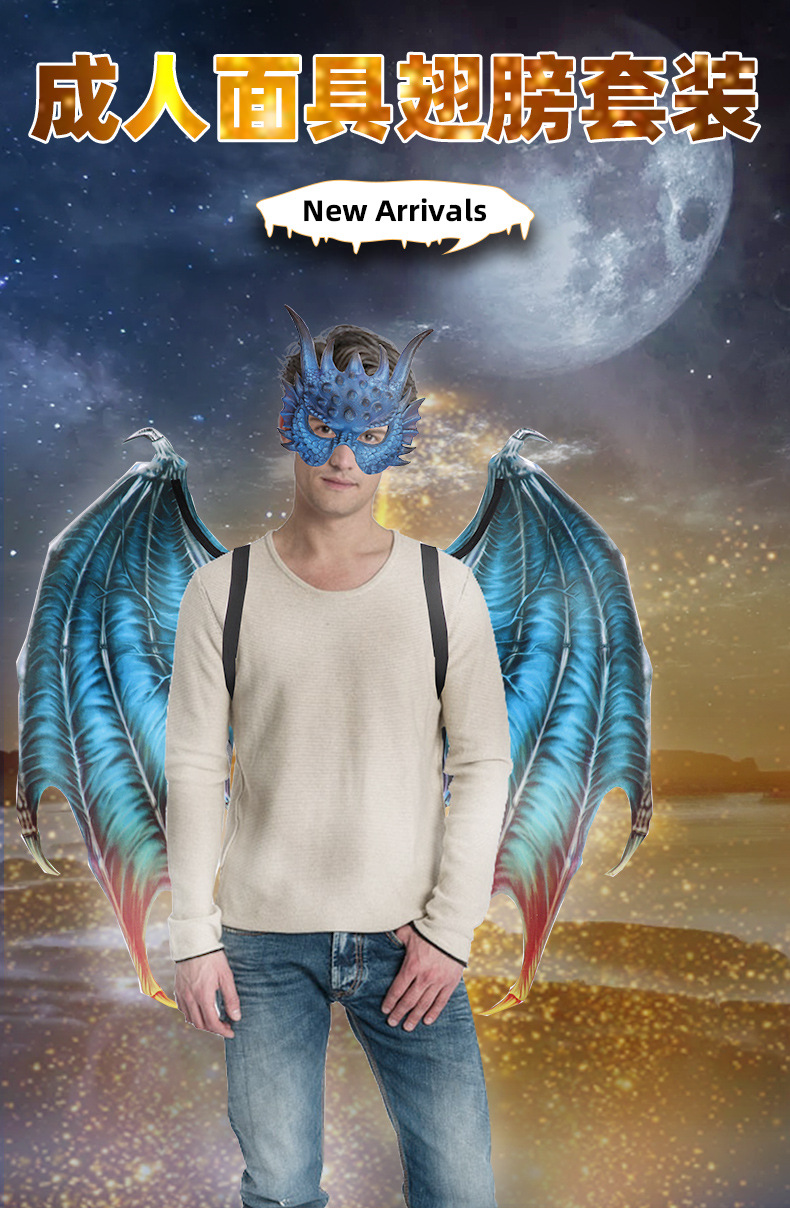 嘉年华新款服饰道具跨境氛围舞会派对装扮猫头鹰面具龙翅膀套装
