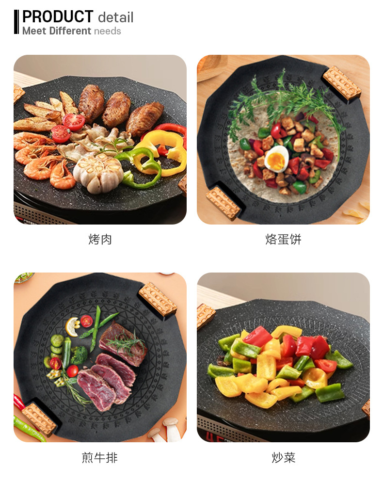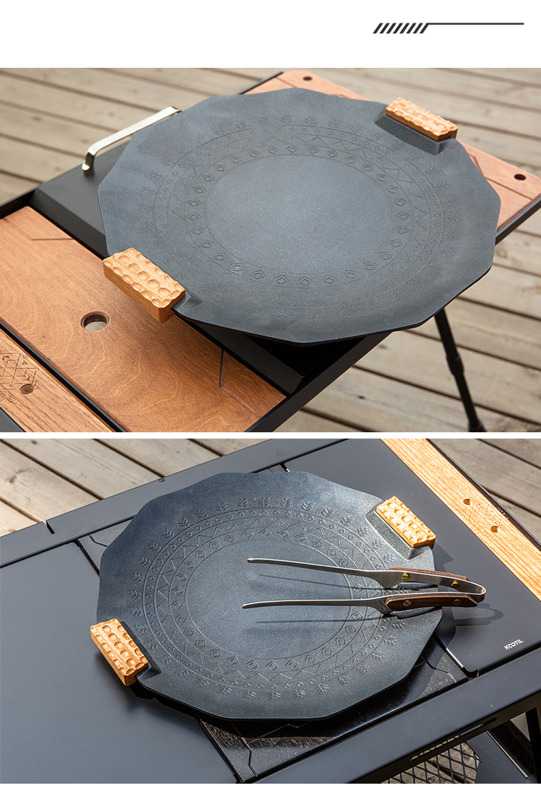 户外野营卡式炉烤盘电磁炉明火通用不粘韩式烤肉锅野餐烧烤家用