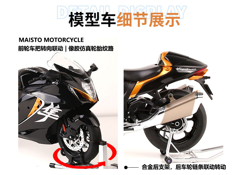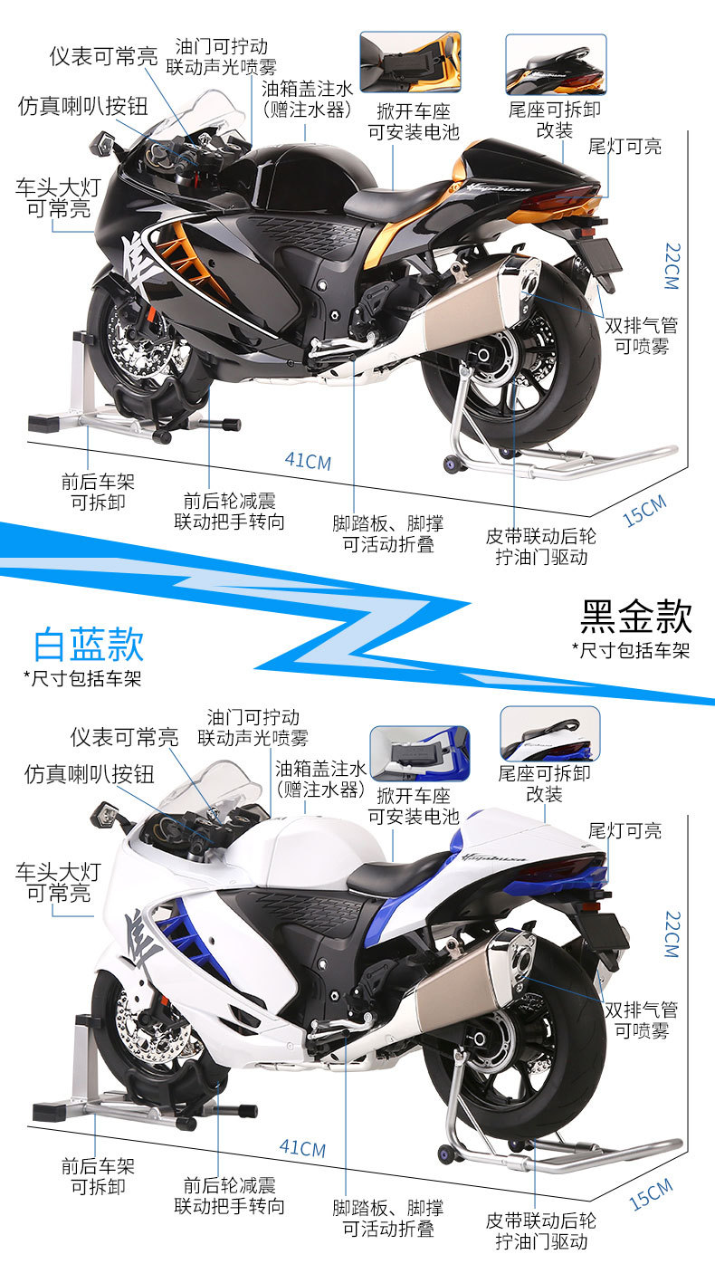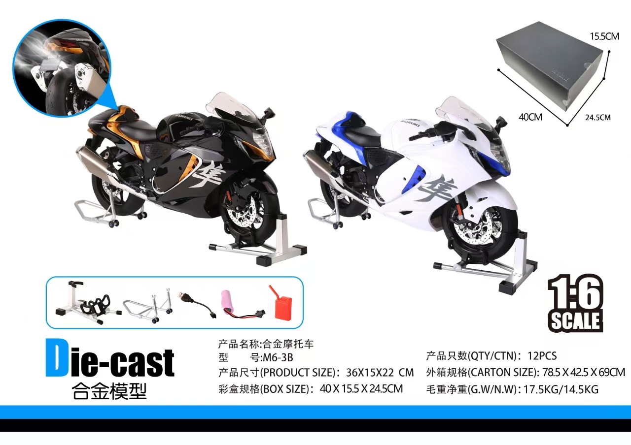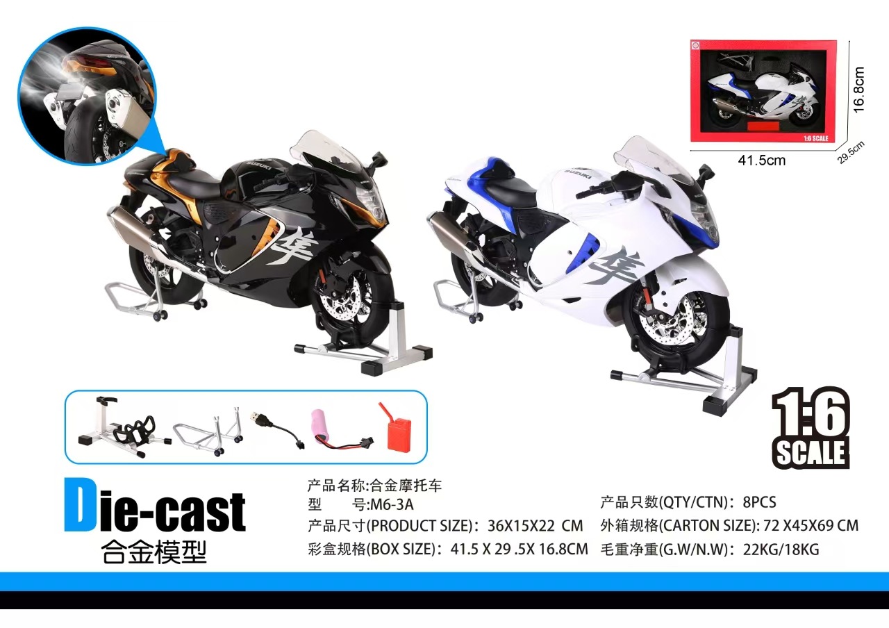 超大号跨境1:6邻木隼喷雾合金摩托车动态模型玩具批发一件代发