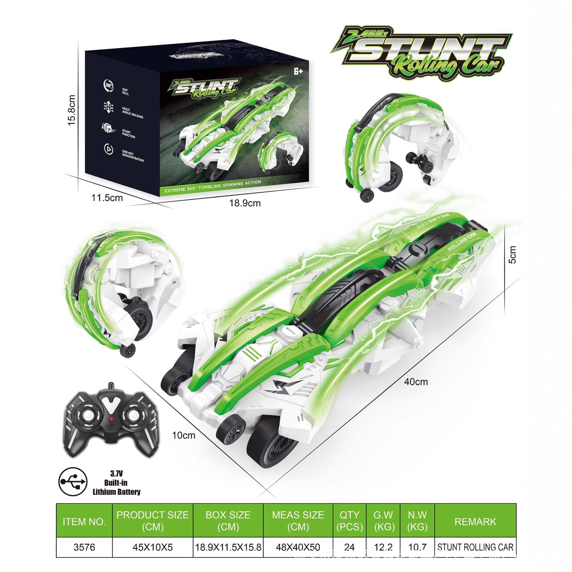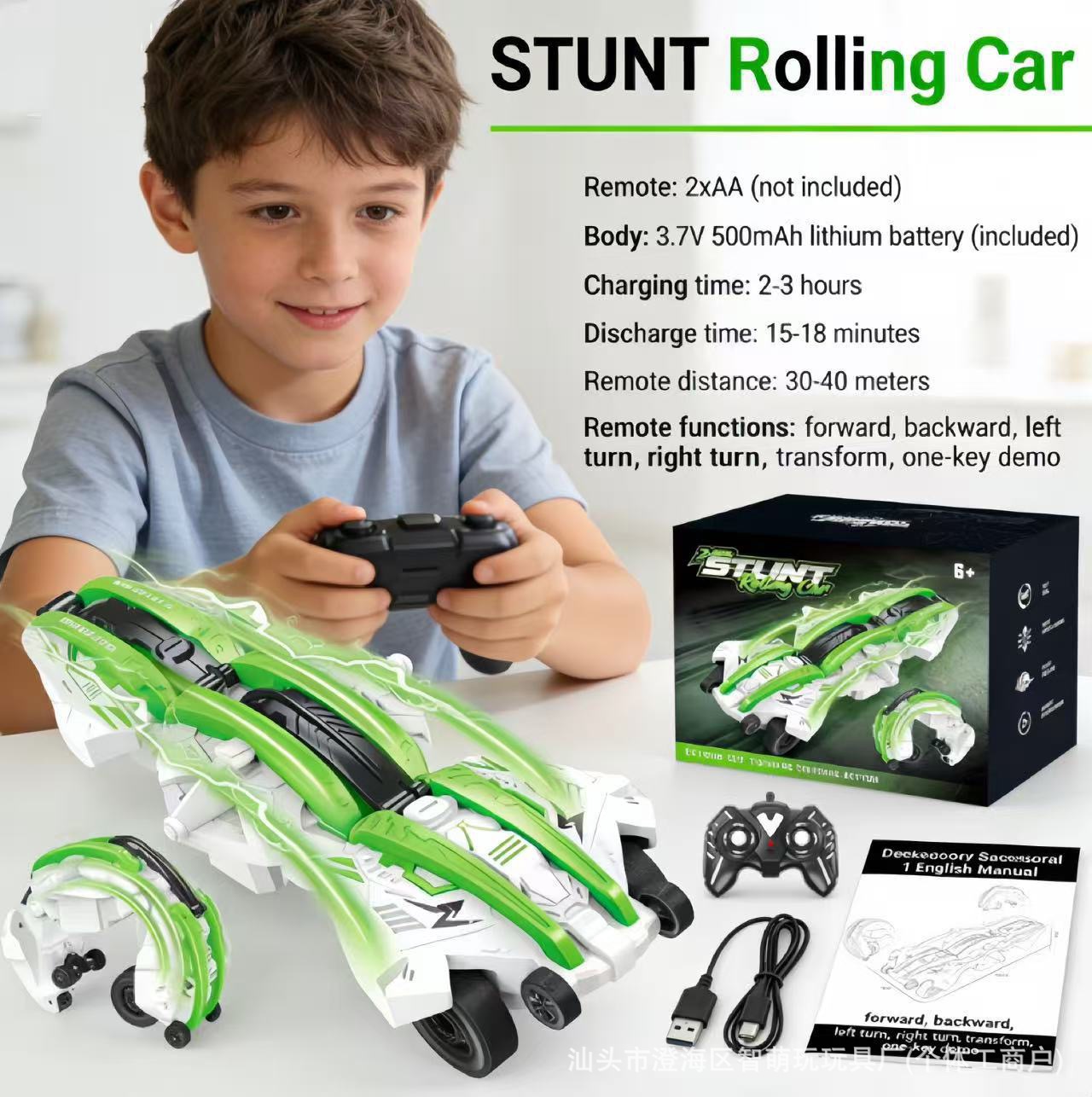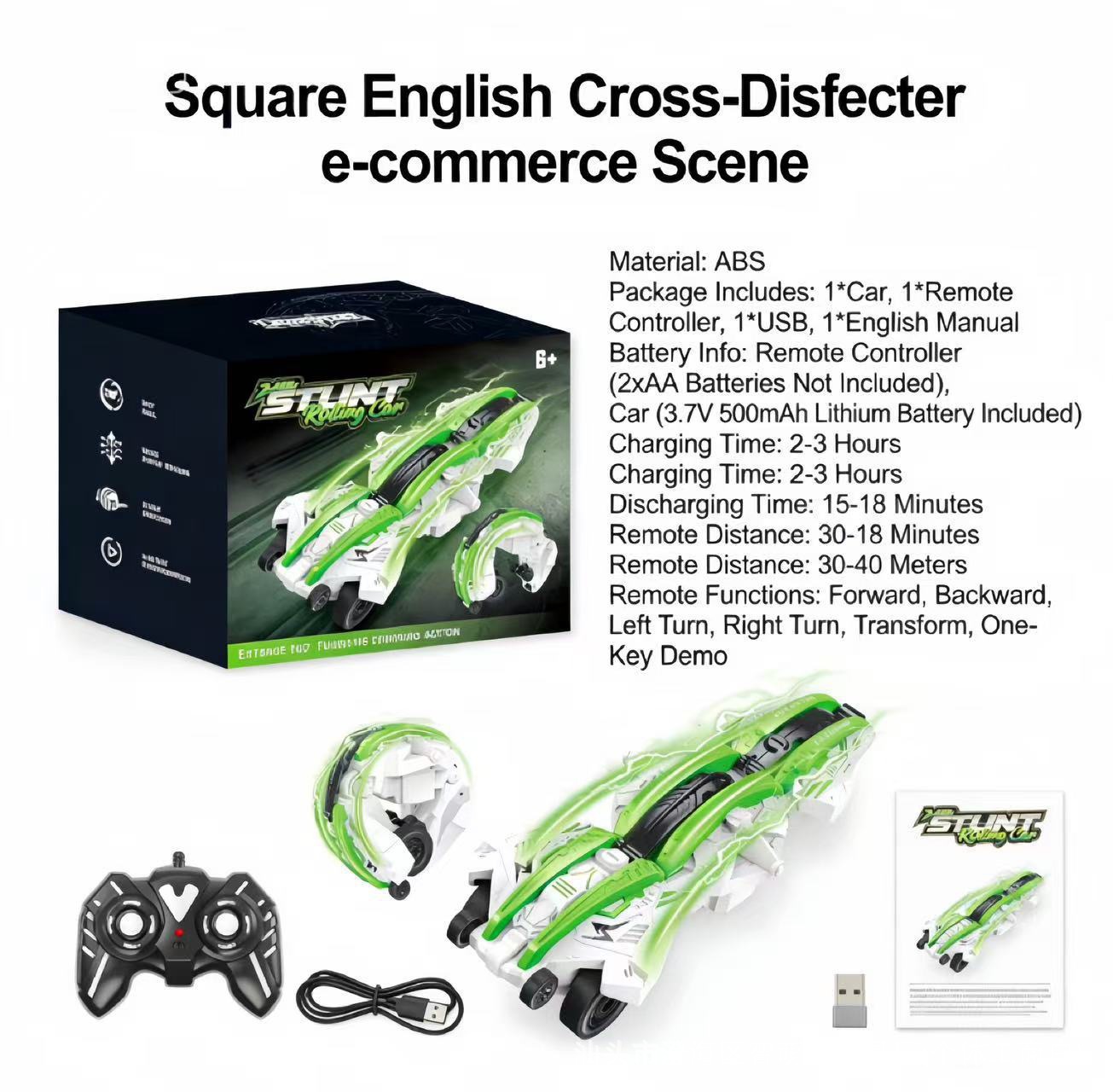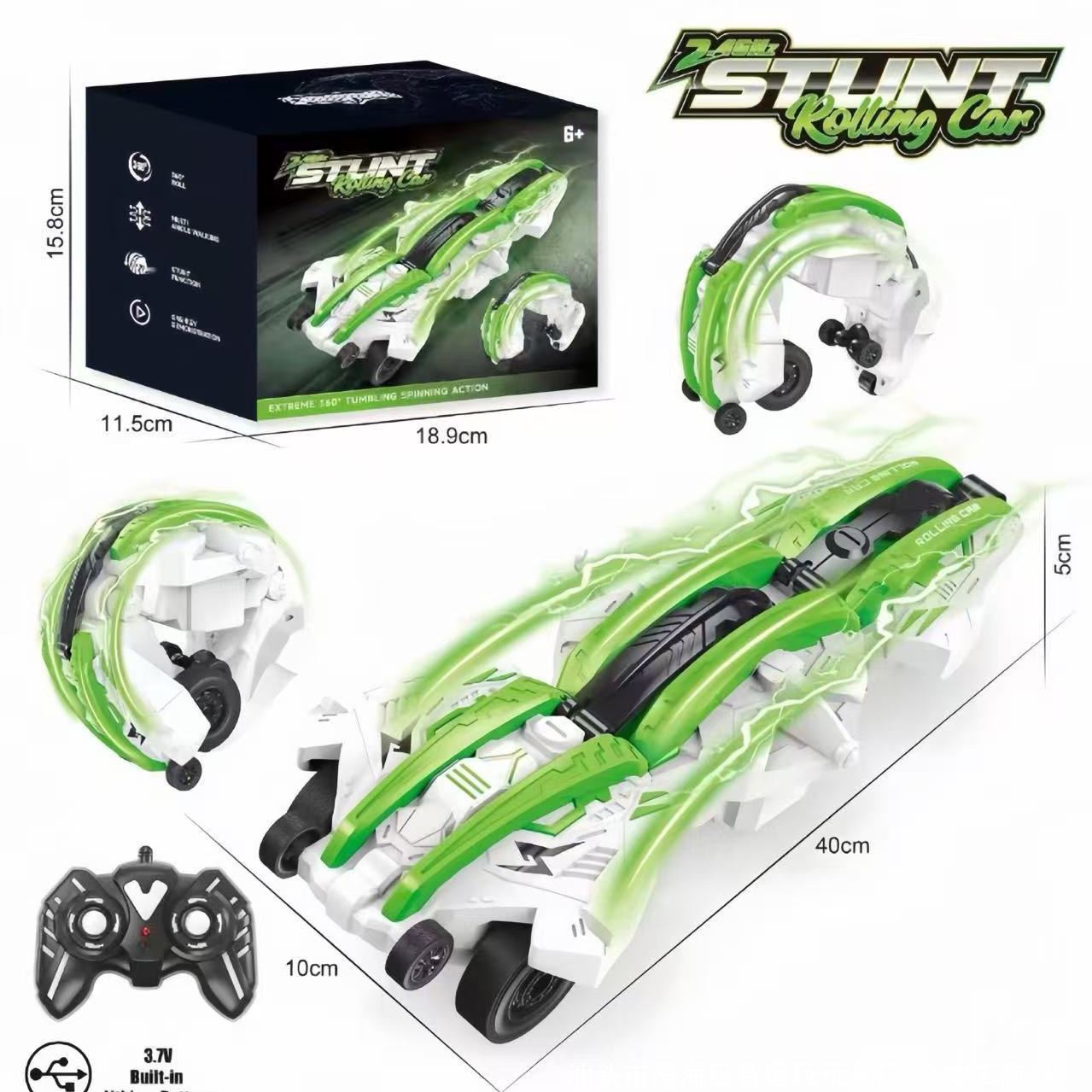 跨境新品2.4G高速变形翻滚六轮灯光遥控车翻滚特技车玩具原厂批发