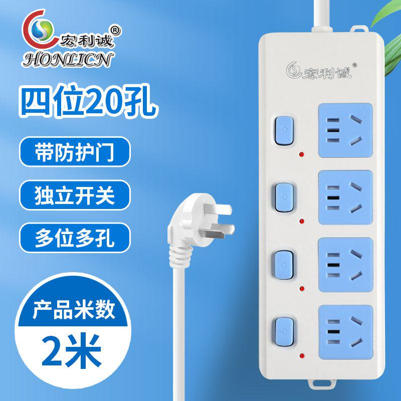 宏利诚插排开关21孔面板插线盘多孔有线插排接线板插线板防触电