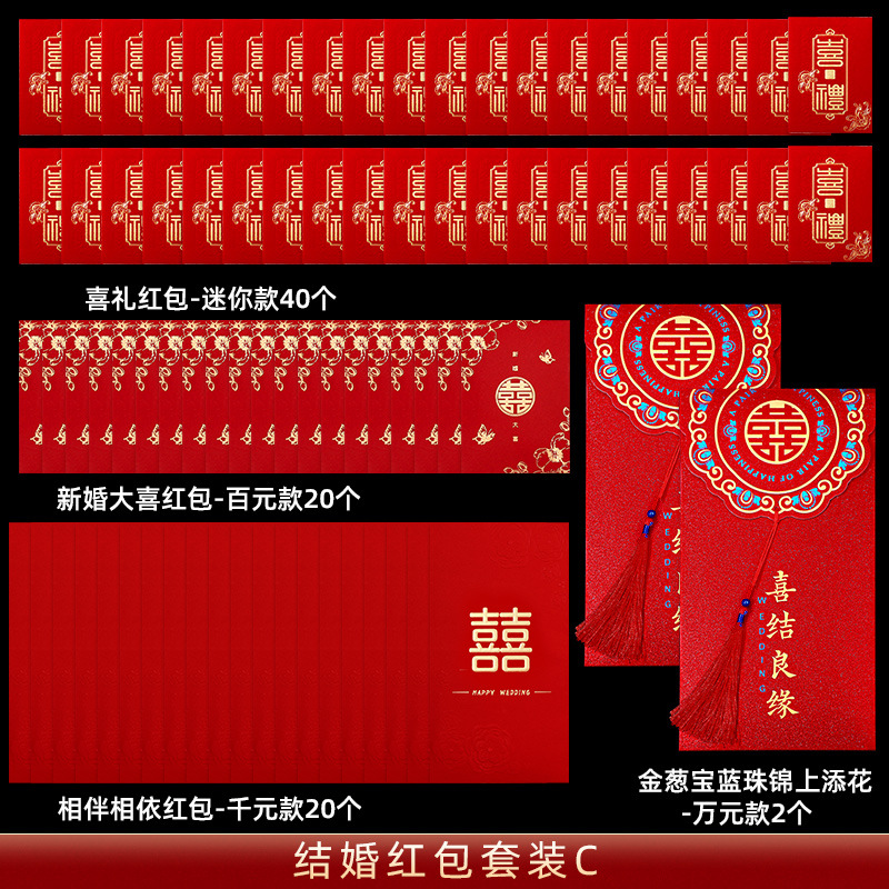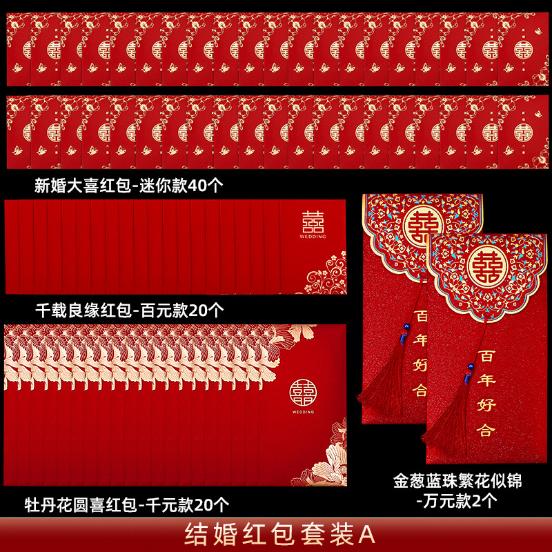 红包套装结婚专用大中小红封包婚礼万元改口堵门接亲随份子红包袋