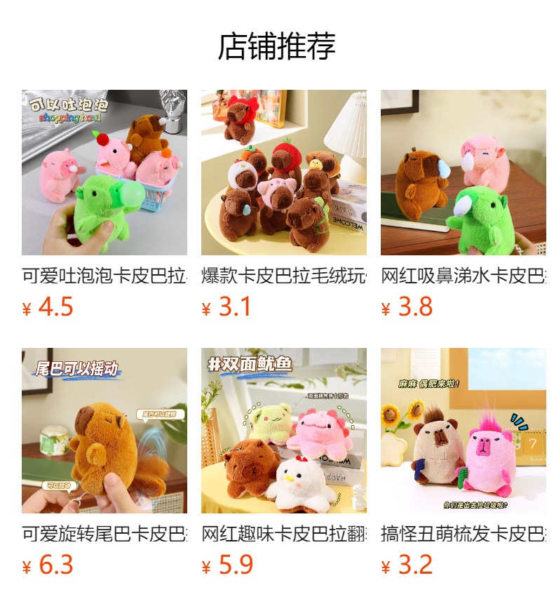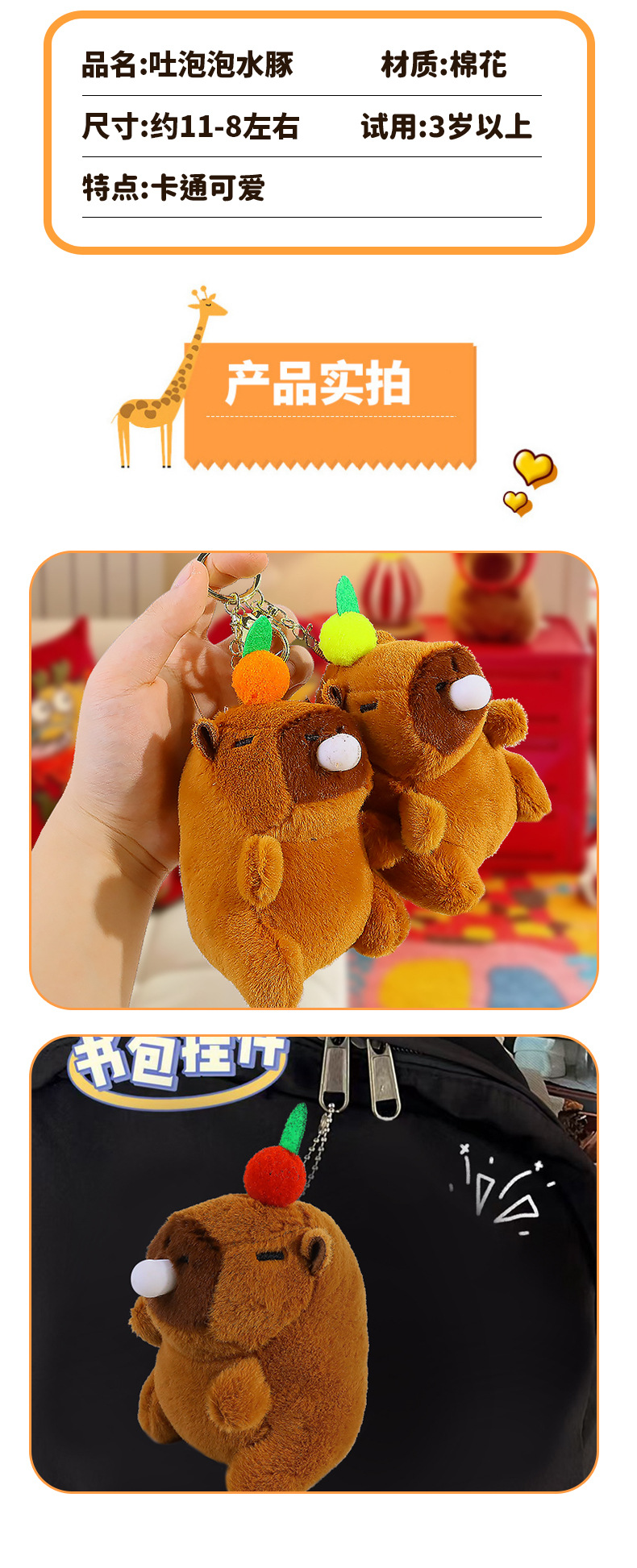 可爱吹泡泡卡皮巴拉玩偶毛绒钥匙扣网红抓娃娃机公仔挂饰挂件礼品