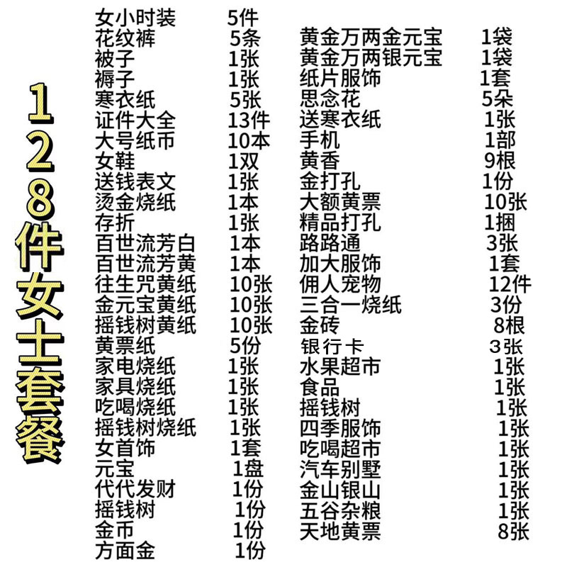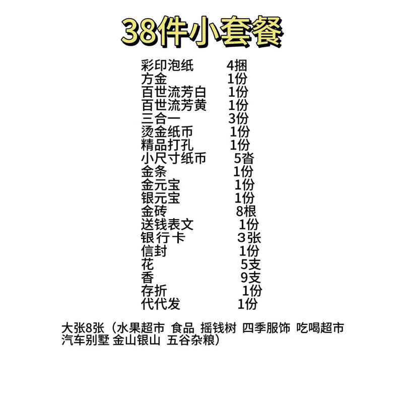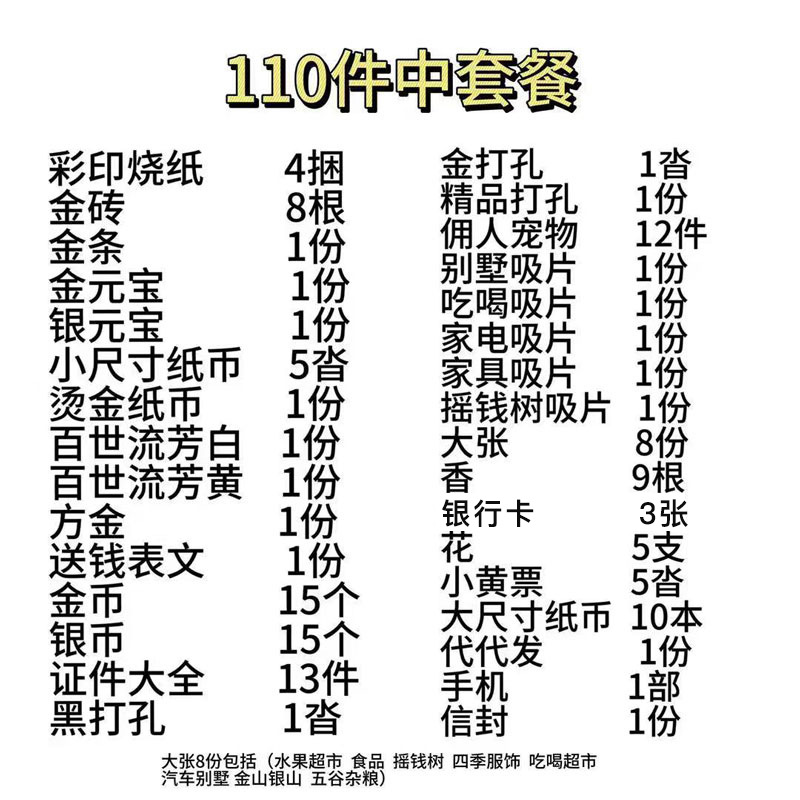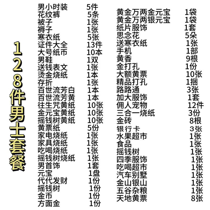 祭祀用品纸钱寒衣节金条烧纸全套128件套厂家批发清明节纸钱套装