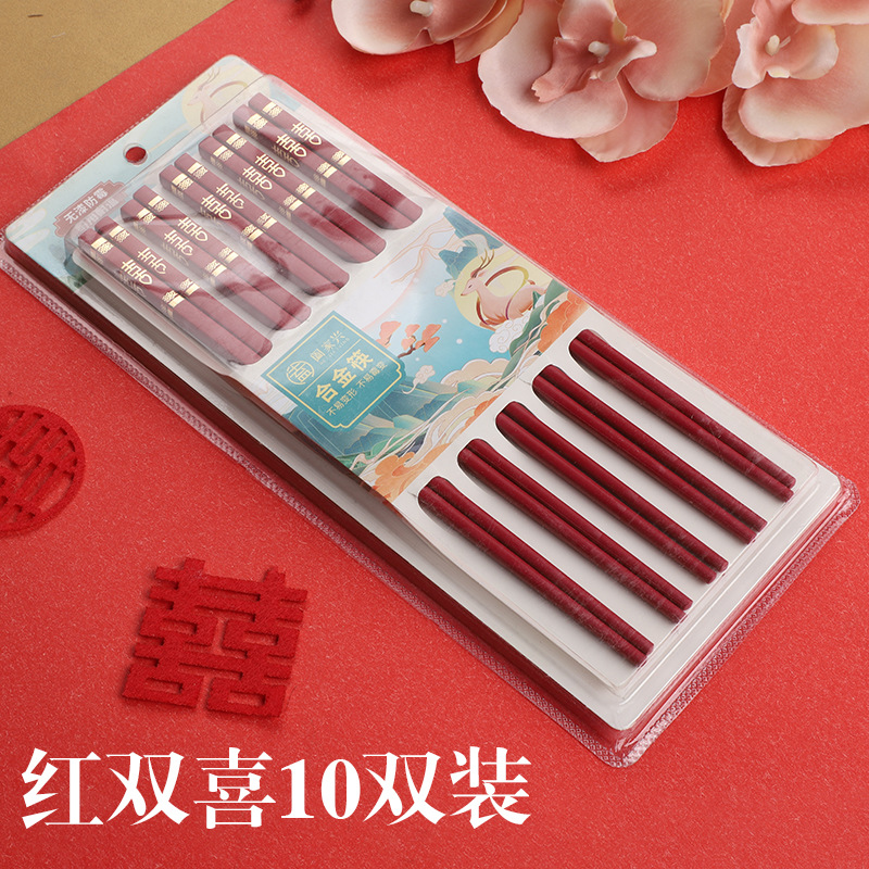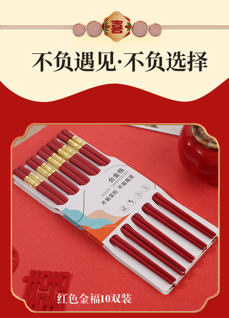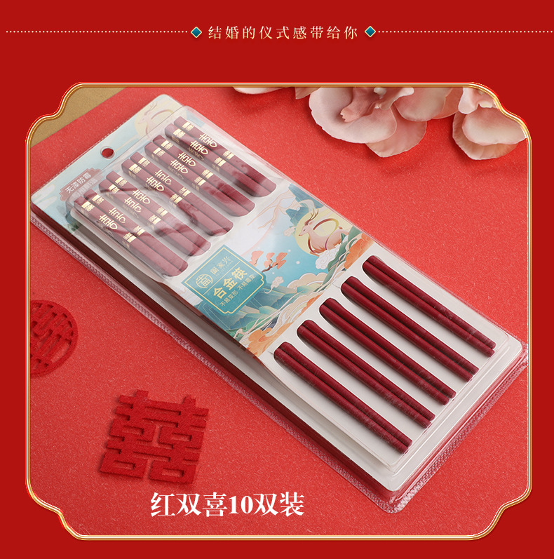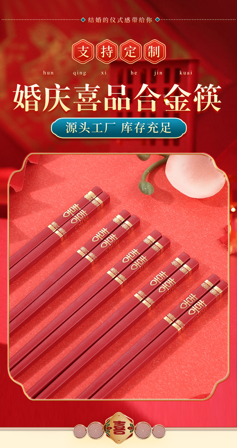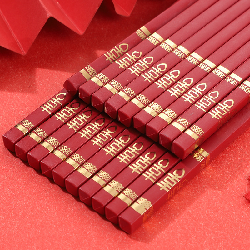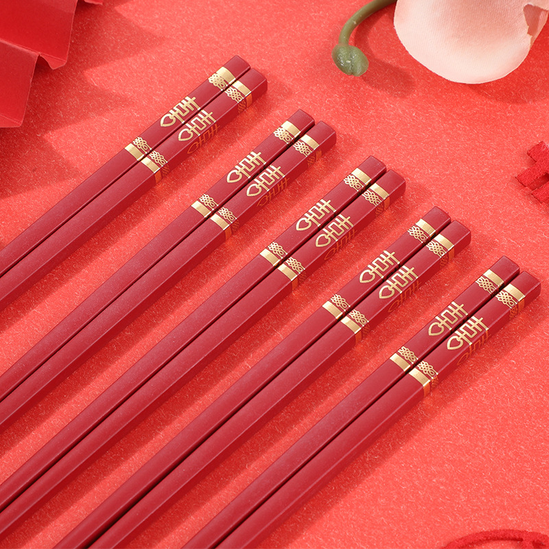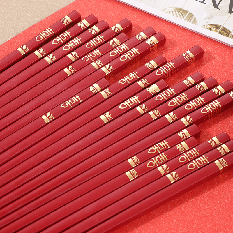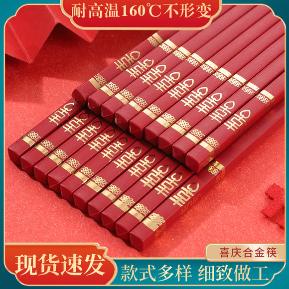 红色喜筷结婚24cm耐高温不发霉防滑筷子酒店商用厨房家用筷合金筷