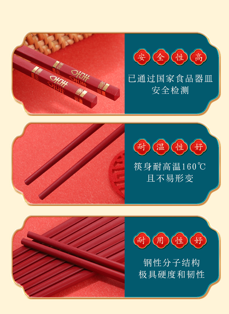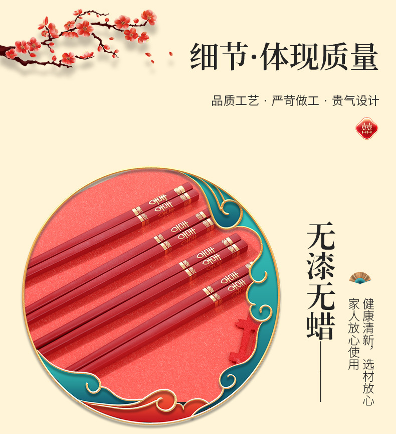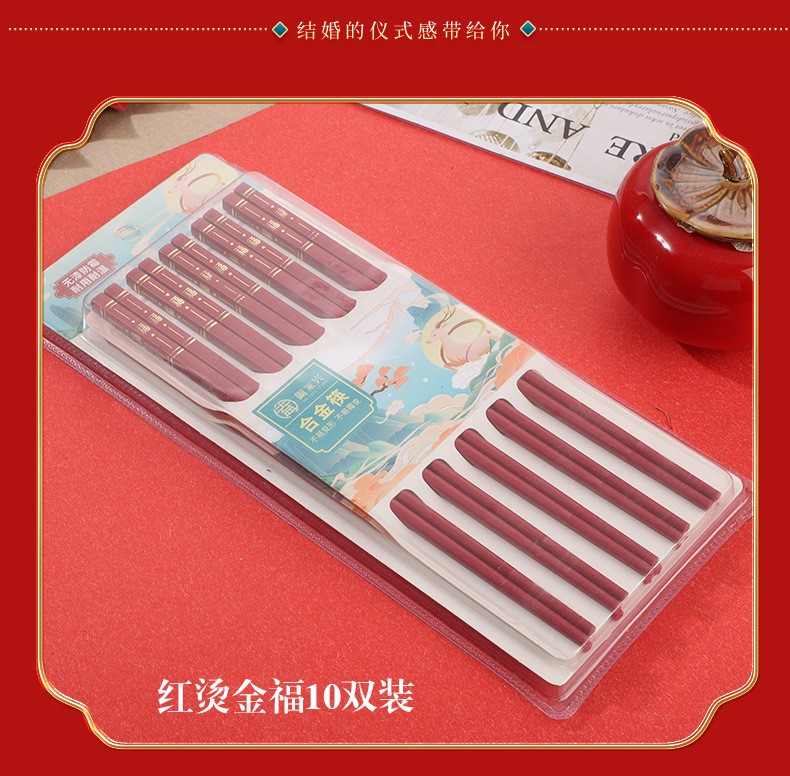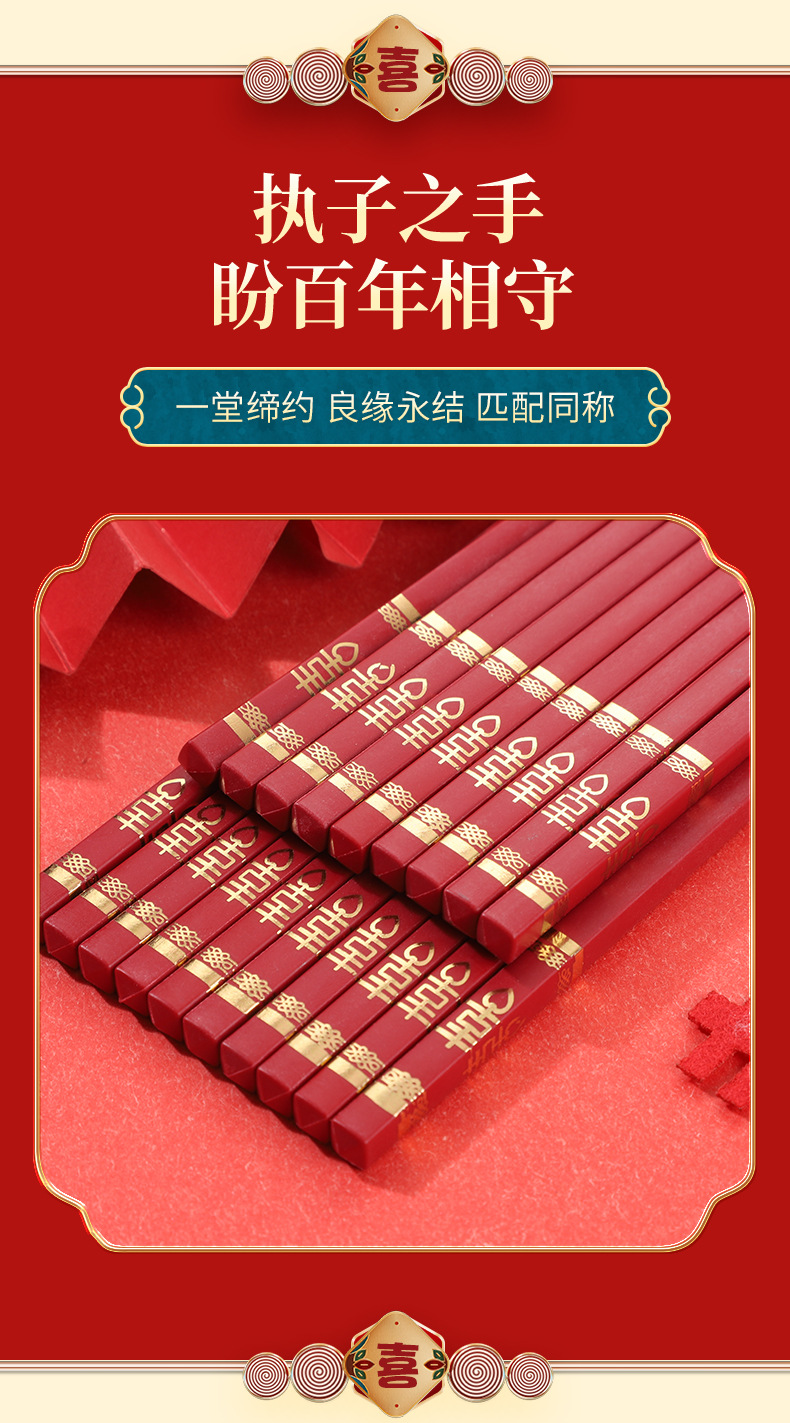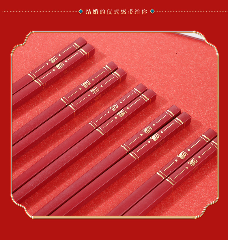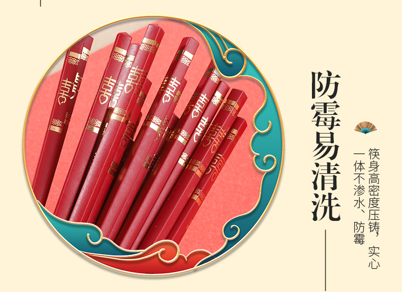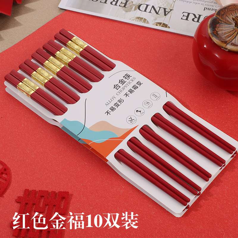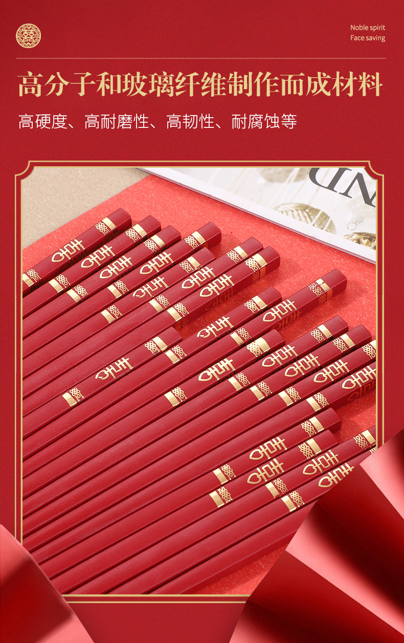 红色喜筷结婚24cm耐高温不发霉防滑筷子酒店商用厨房家用筷合金筷