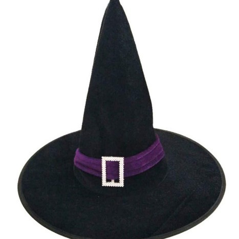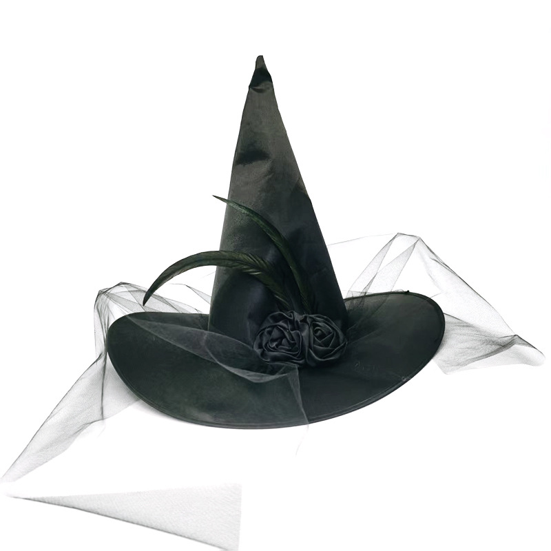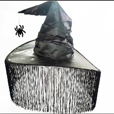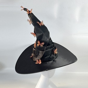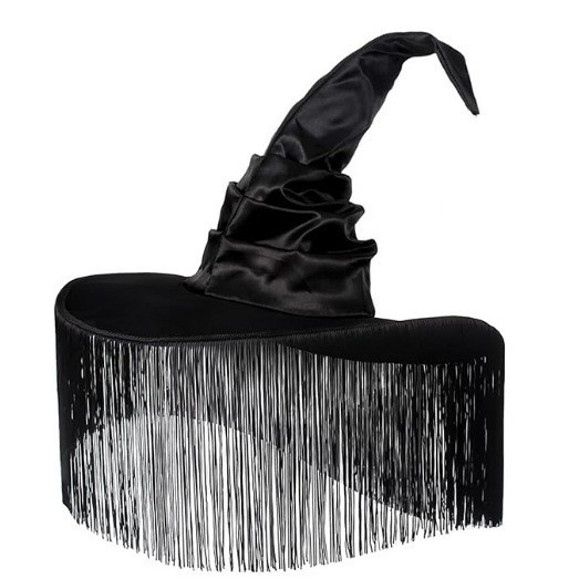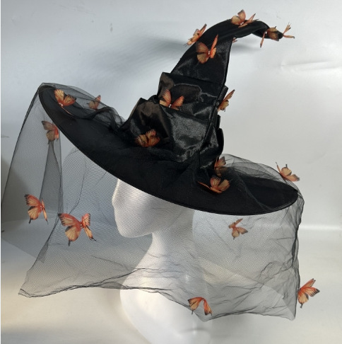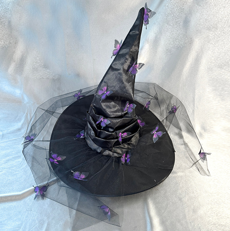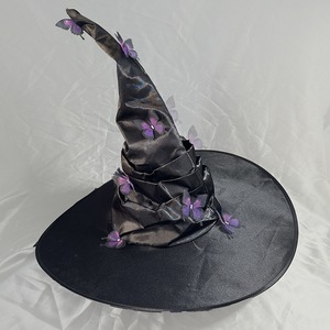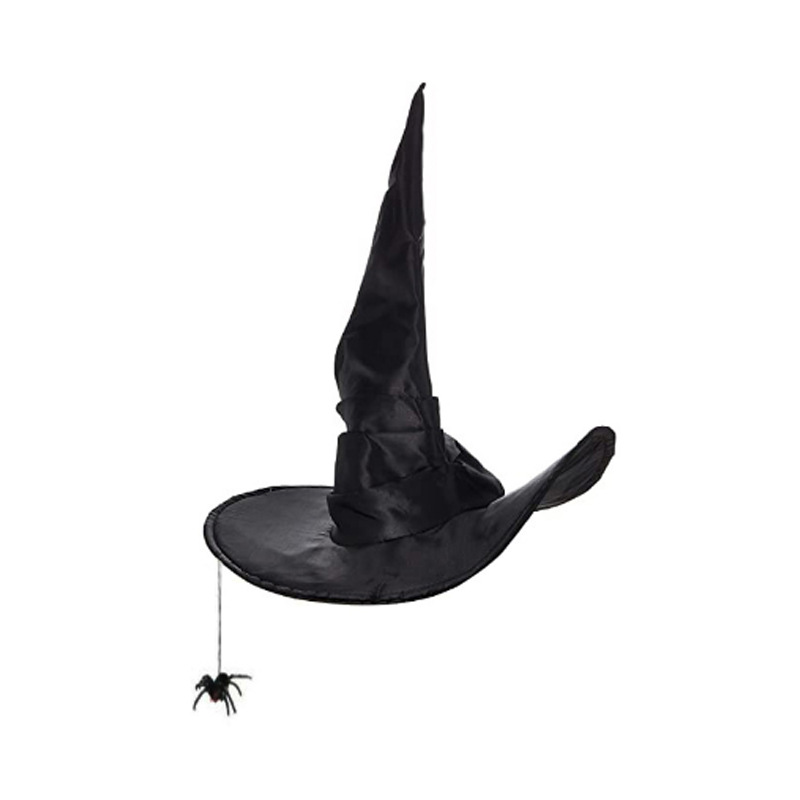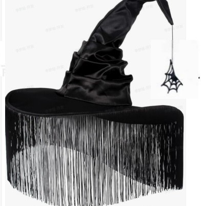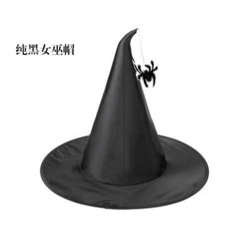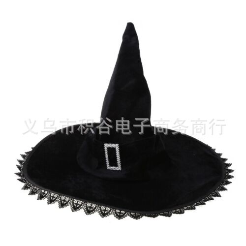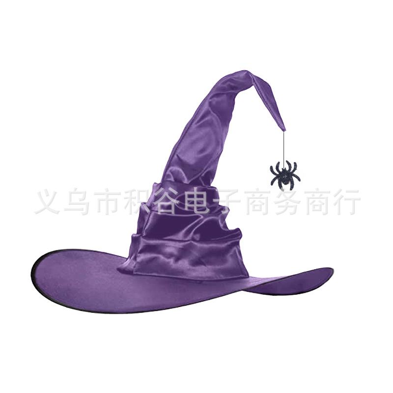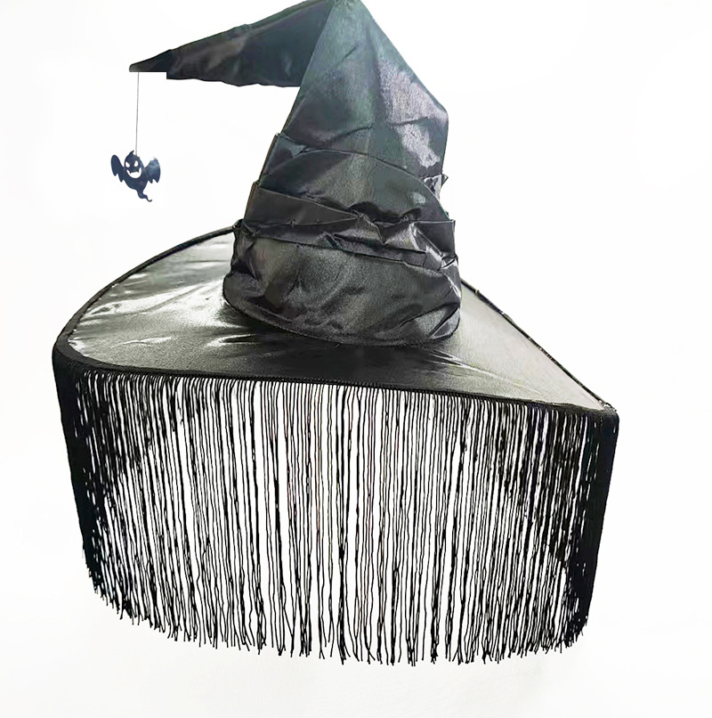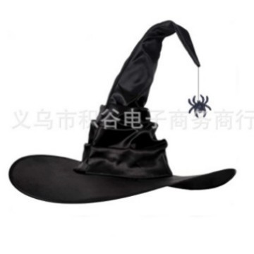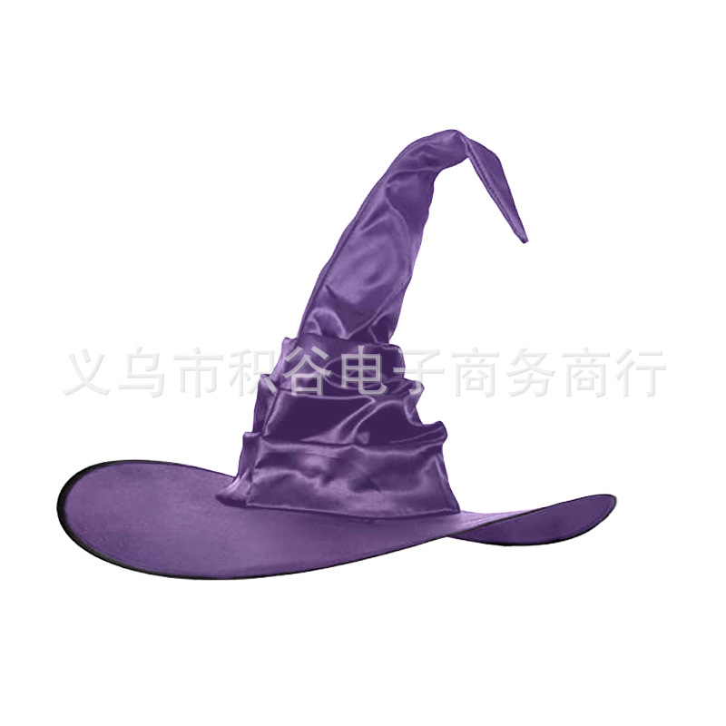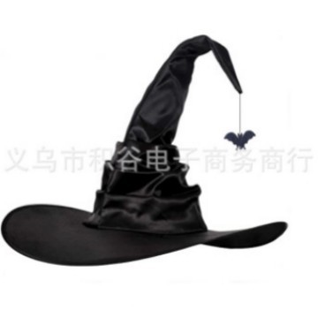 新款万圣节褶皱巫婆帽 派对巫师帽 黑色牛津布女巫帽化妆道具