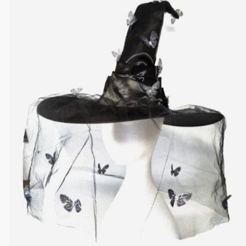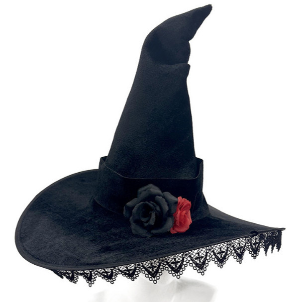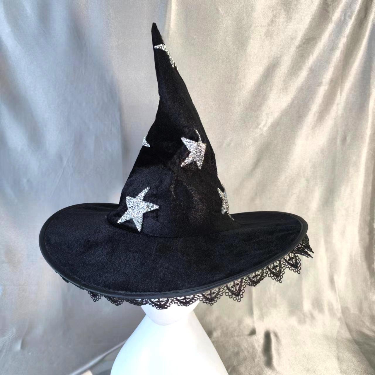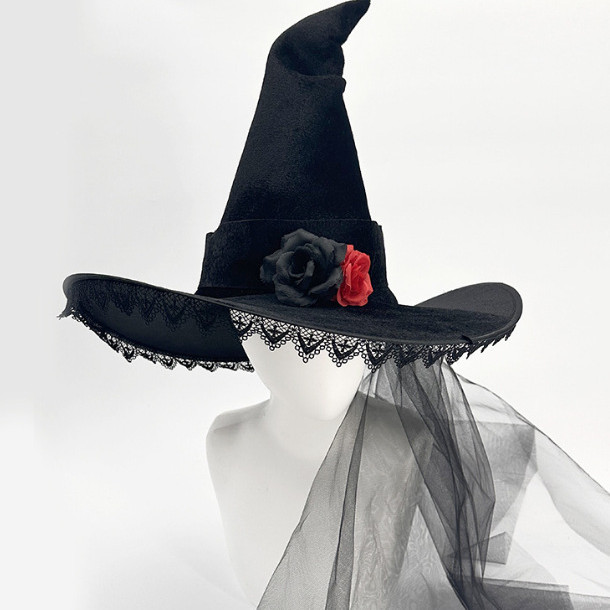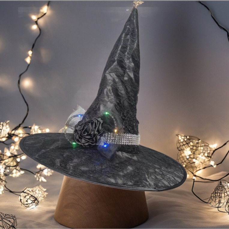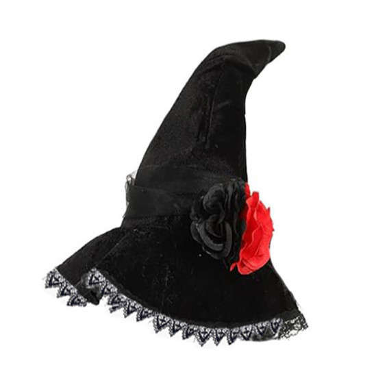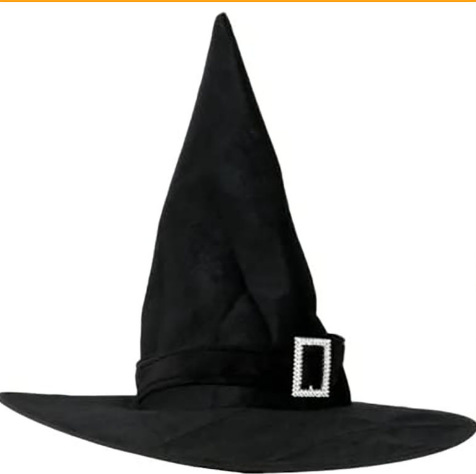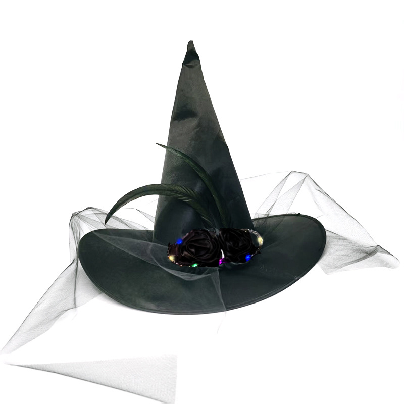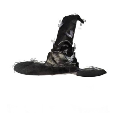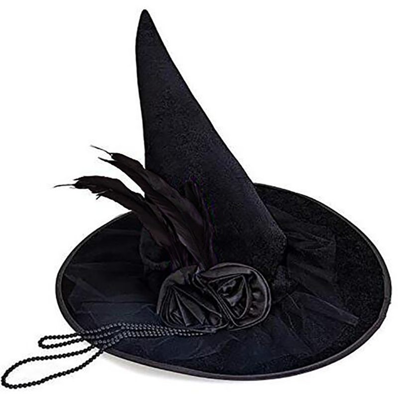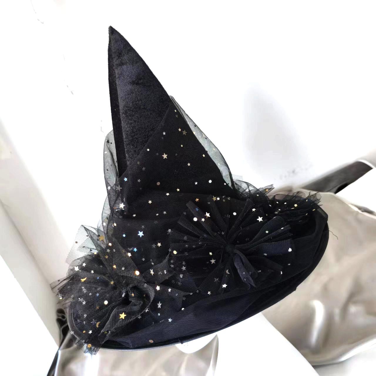 新款万圣节褶皱巫婆帽 派对巫师帽 黑色牛津布女巫帽化妆道具