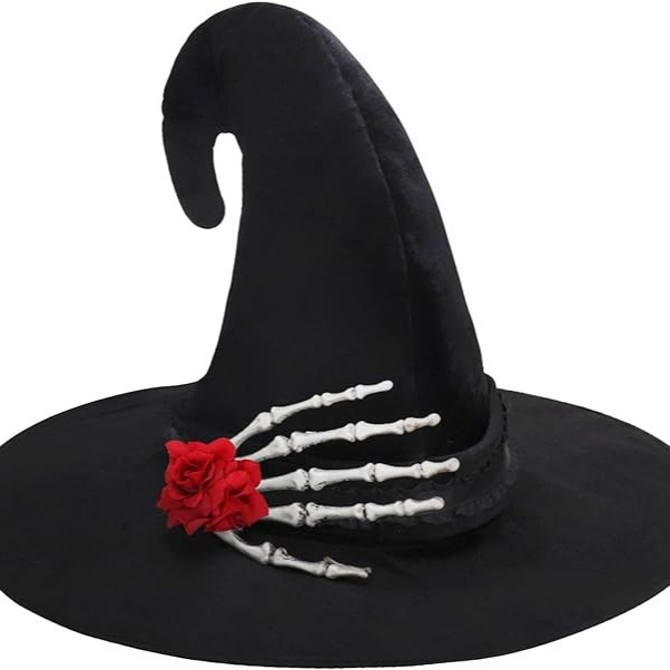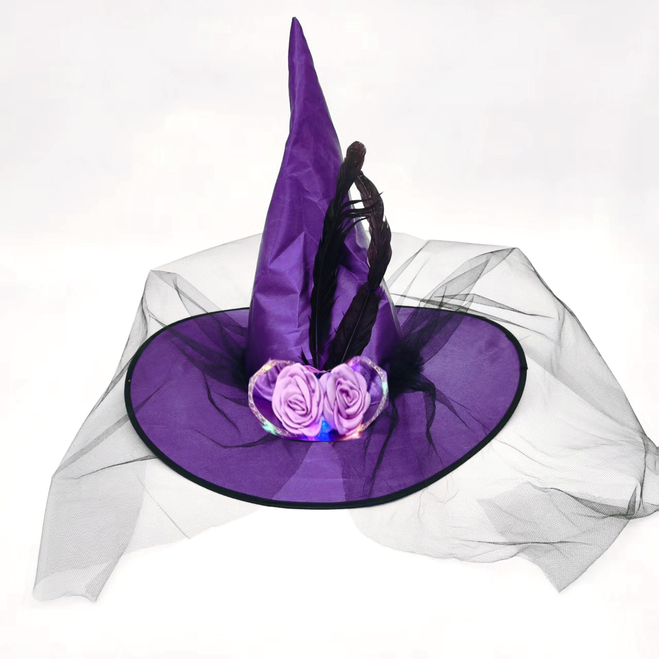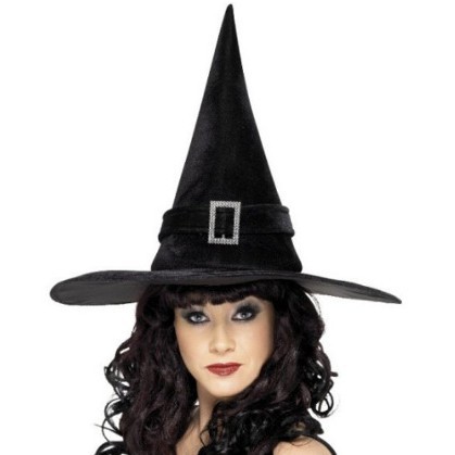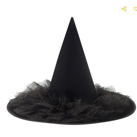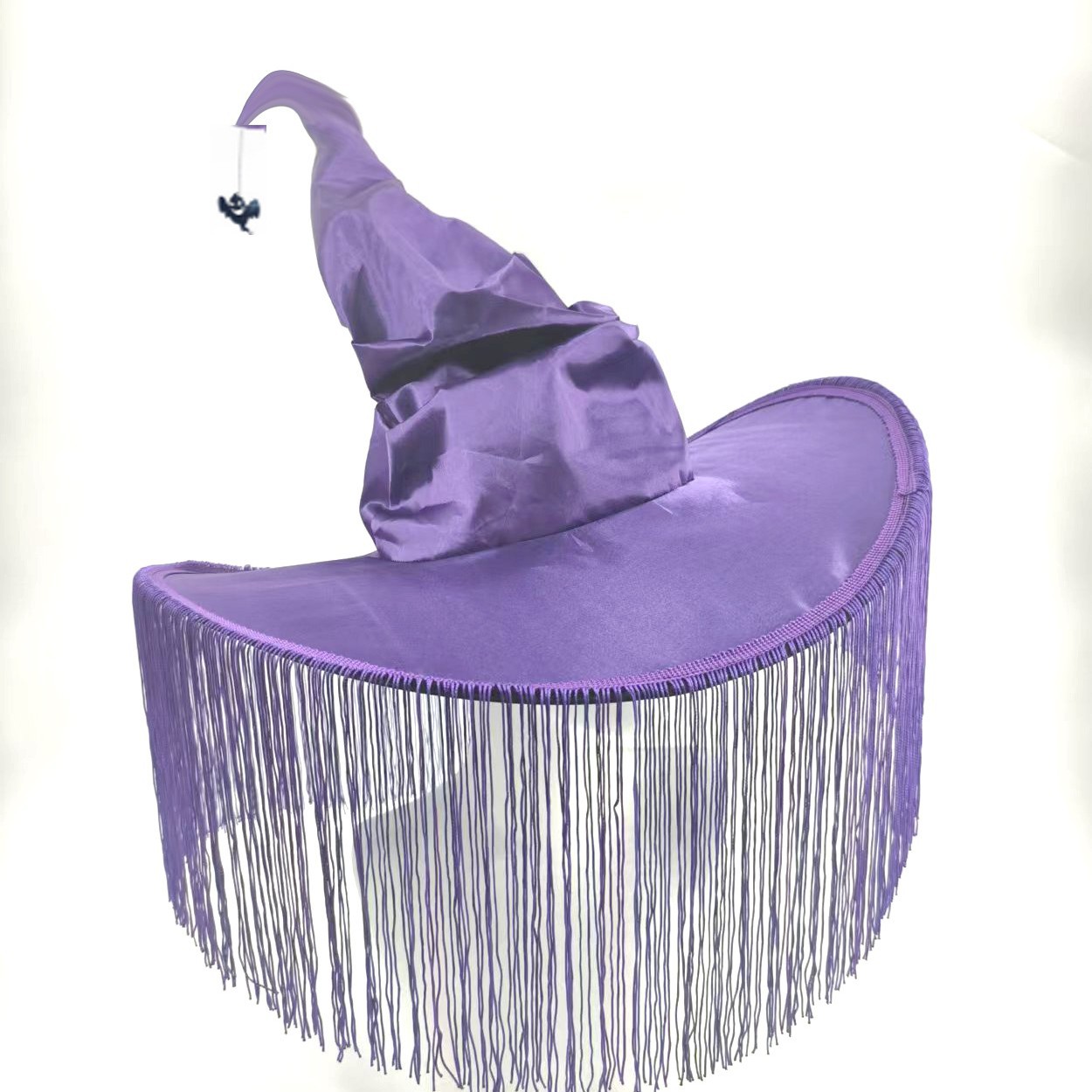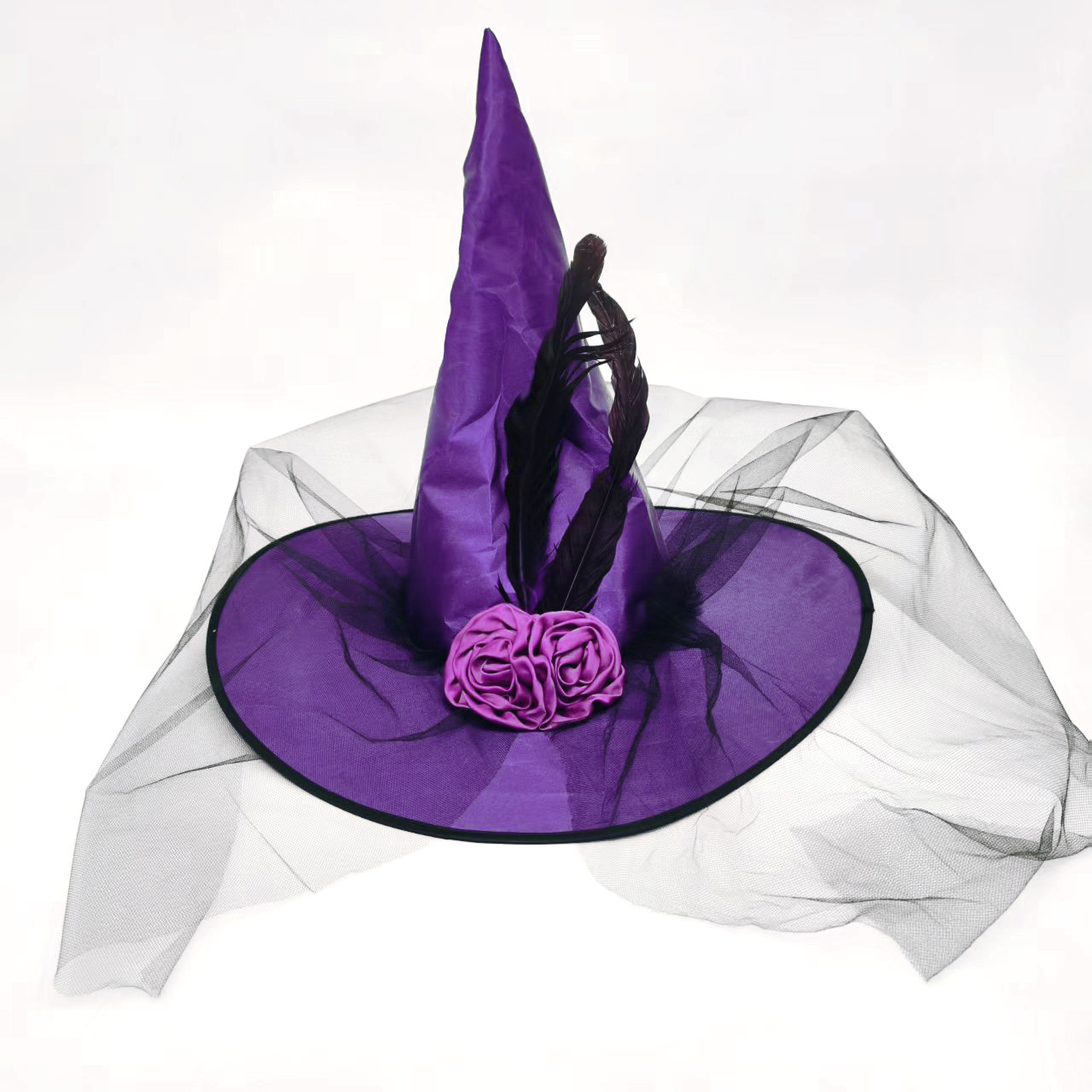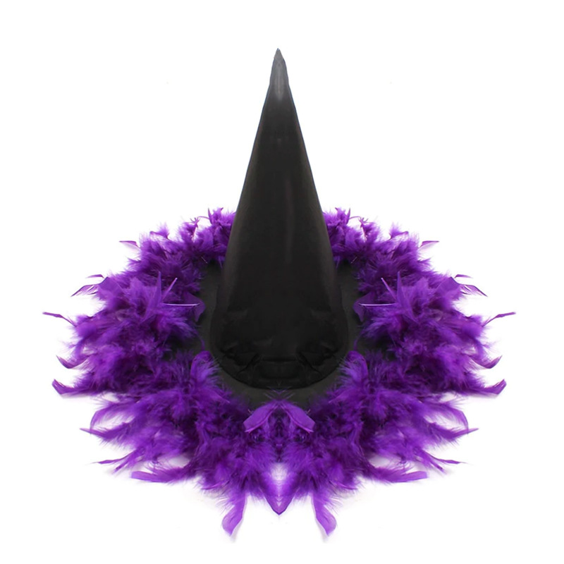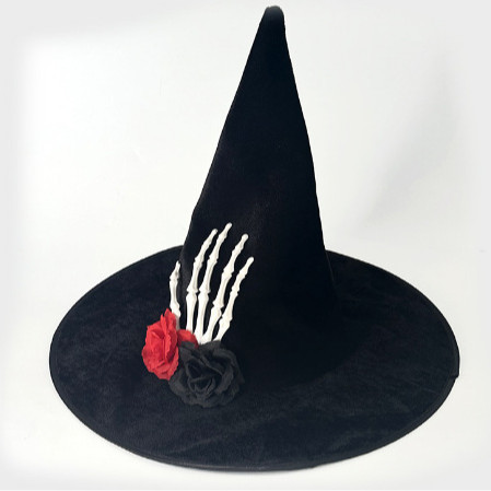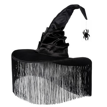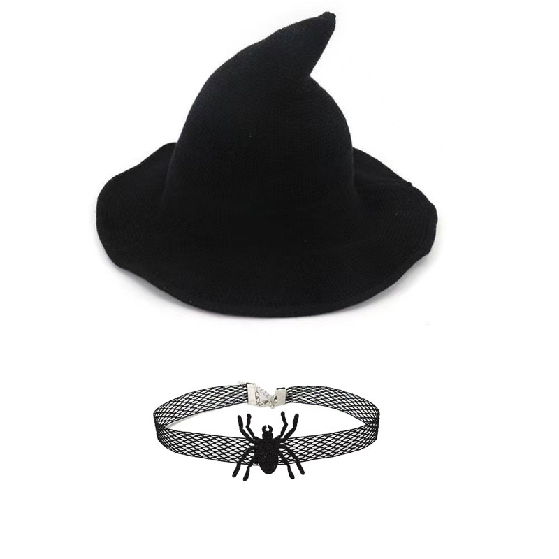 新款万圣节褶皱巫婆帽 派对巫师帽 黑色牛津布女巫帽化妆道具