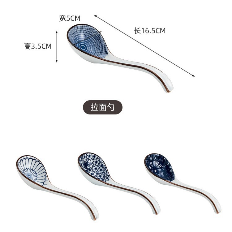 跨境供应新款创意青花陶瓷勺长柄勺 批发家用调羹汤匙日式喝汤勺