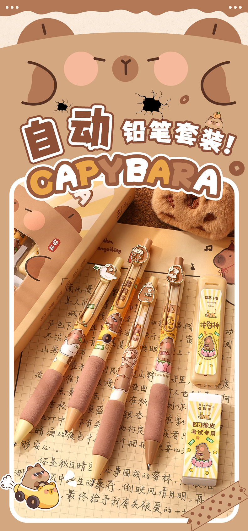 咔巴熊自动铅笔0.5mm活动铅笔学生可爱萌铅笔ins高颜值自动笔填色