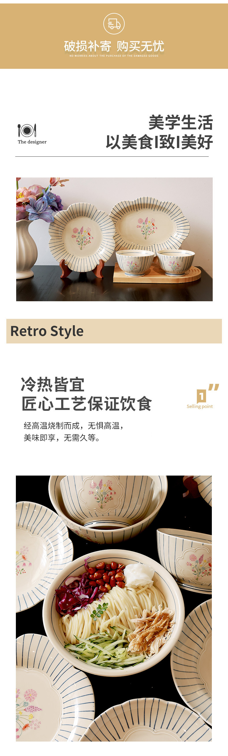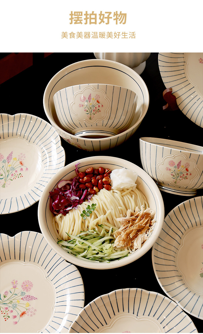 瑞和日式系列盘子家用菜盘新款陶瓷盘子好看的盘子复古米饭碗面碗