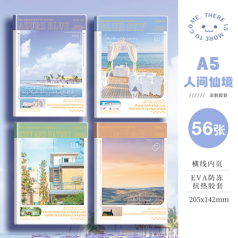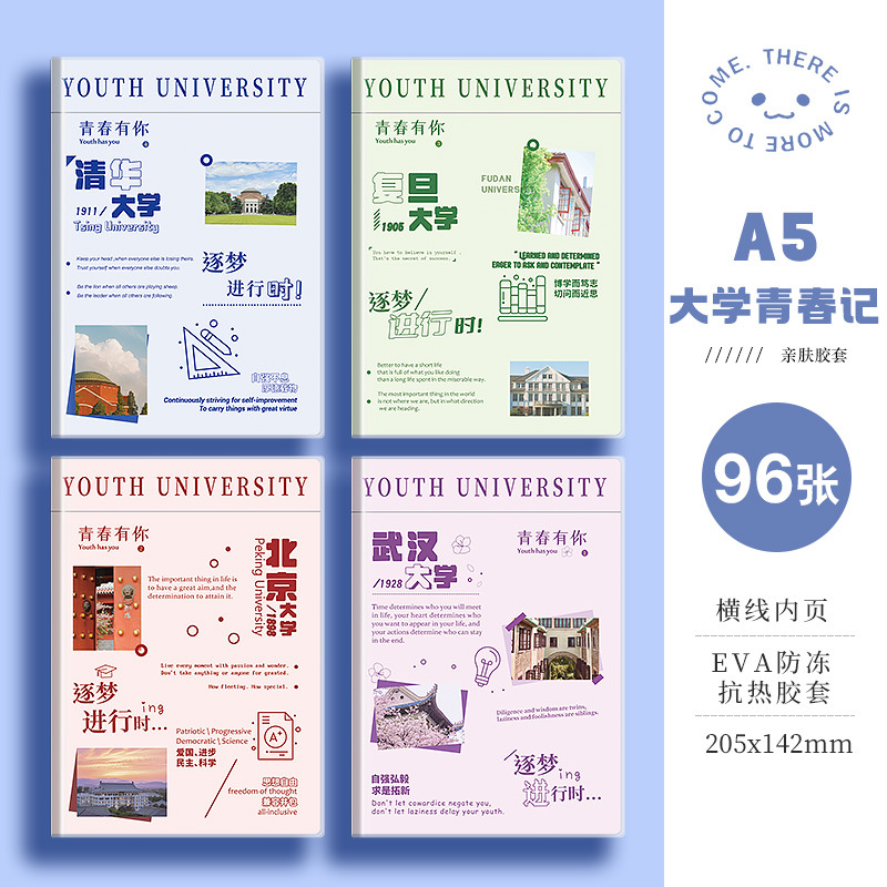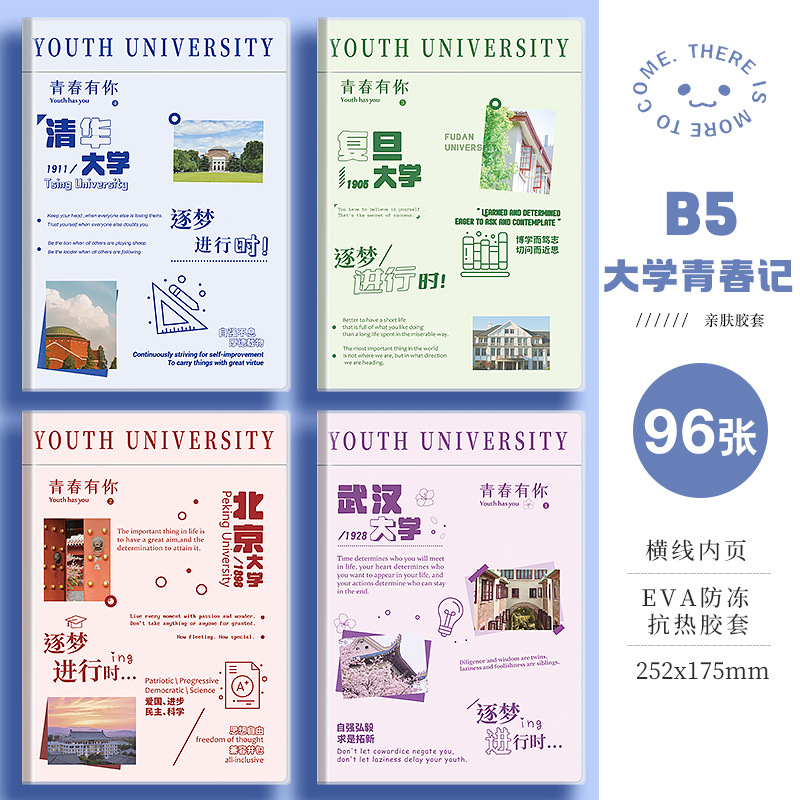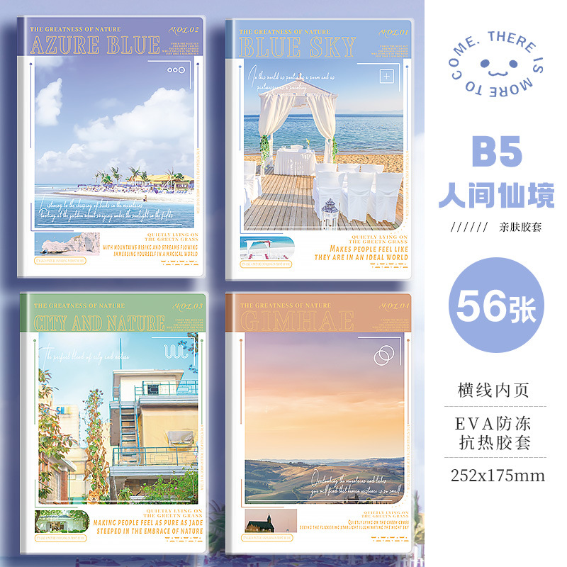 四方伙伴b5胶套笔记本A5学生办公高颜值加厚本子记笔记小清新本子