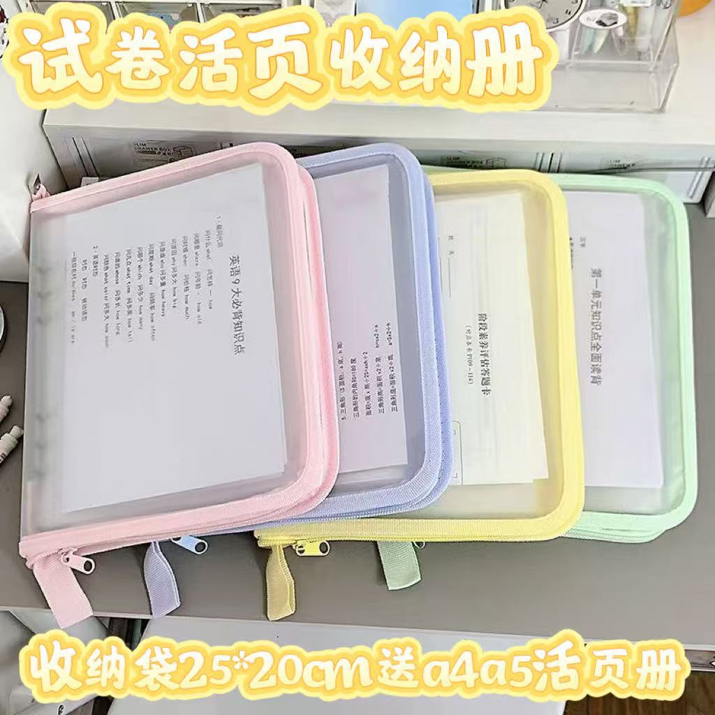 马卡龙透明A4文件袋大容量可装课本拉链式学生手提加厚防水收纳袋